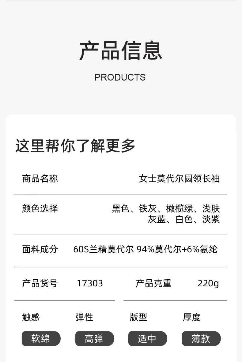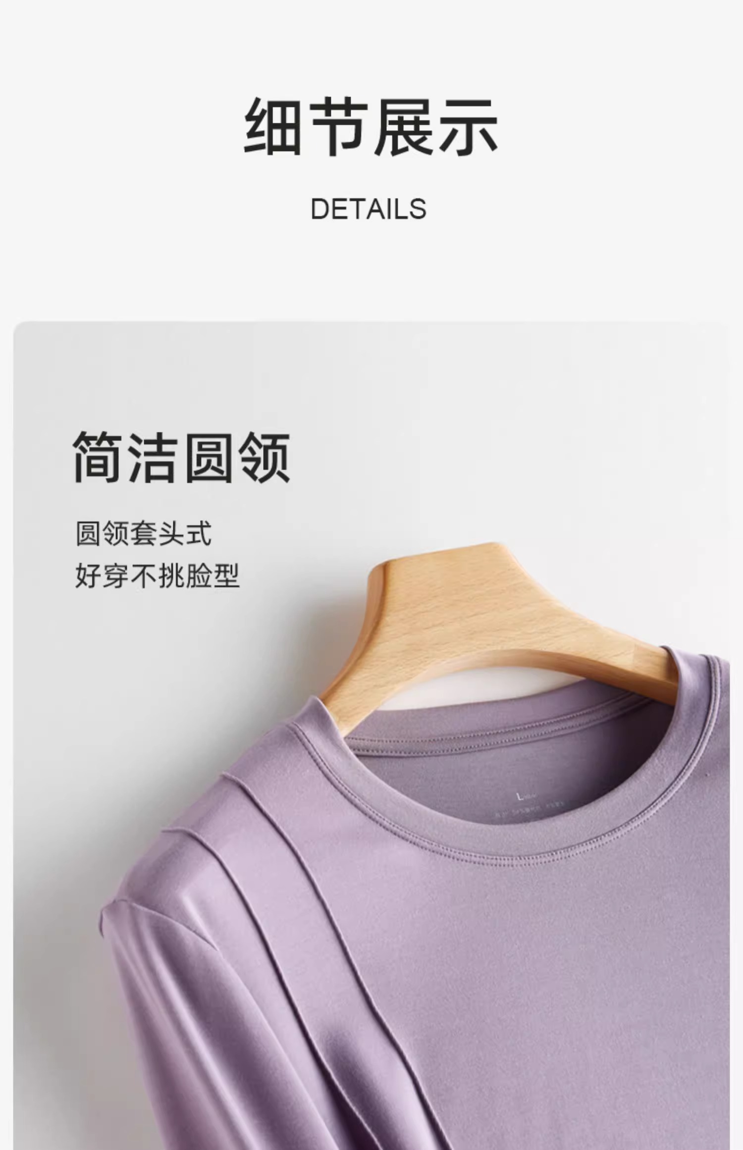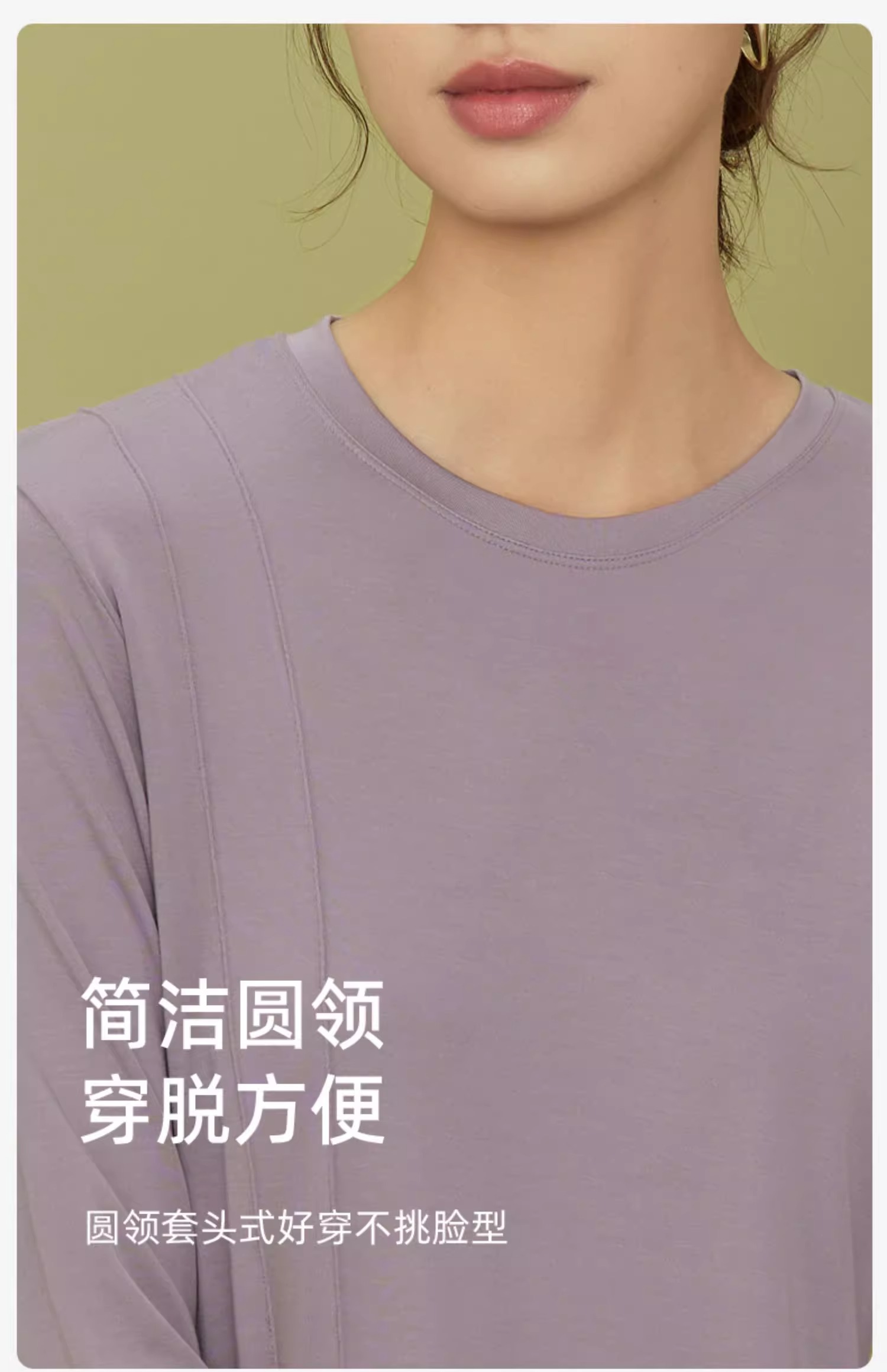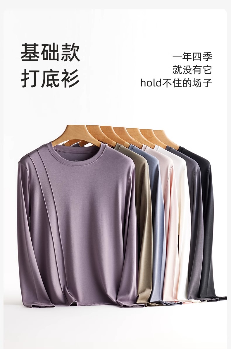weyo秋冬新款女兰精莫代尔纯色简约上衣圆领修身长袖T恤打底衫17303、17301