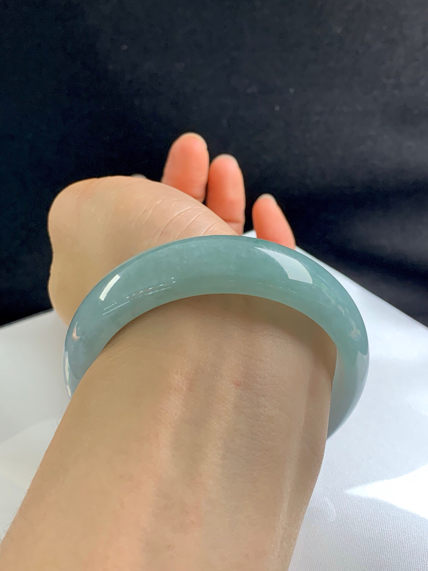 620289,60.5圈口,糯化蓝底正圈平安镯,宽版,晴蓝底色,种水好,微透手,尺寸:60.5-17.6-7.6,超值价💰12300 #优石客珠宝#香玉荟萃
