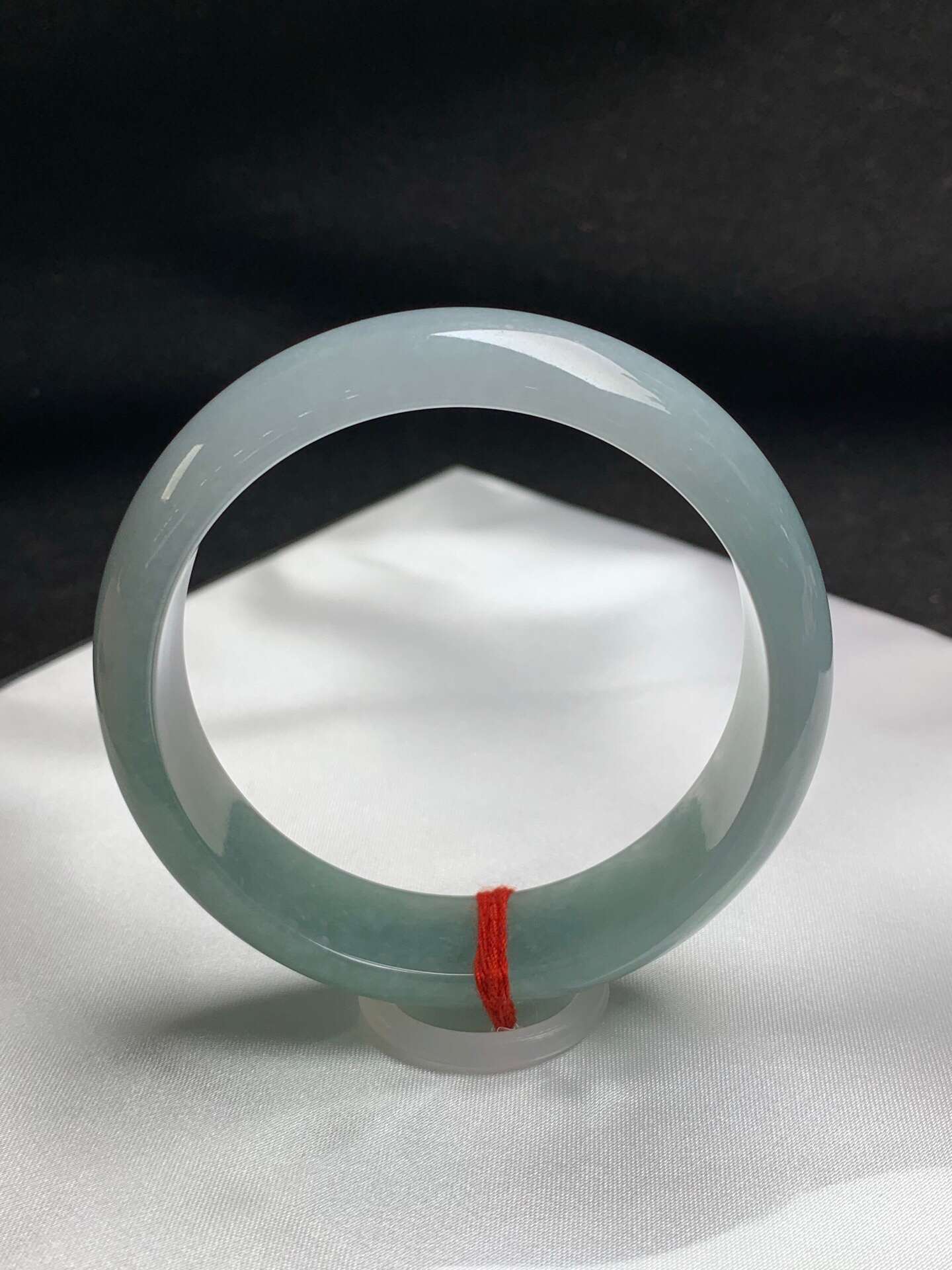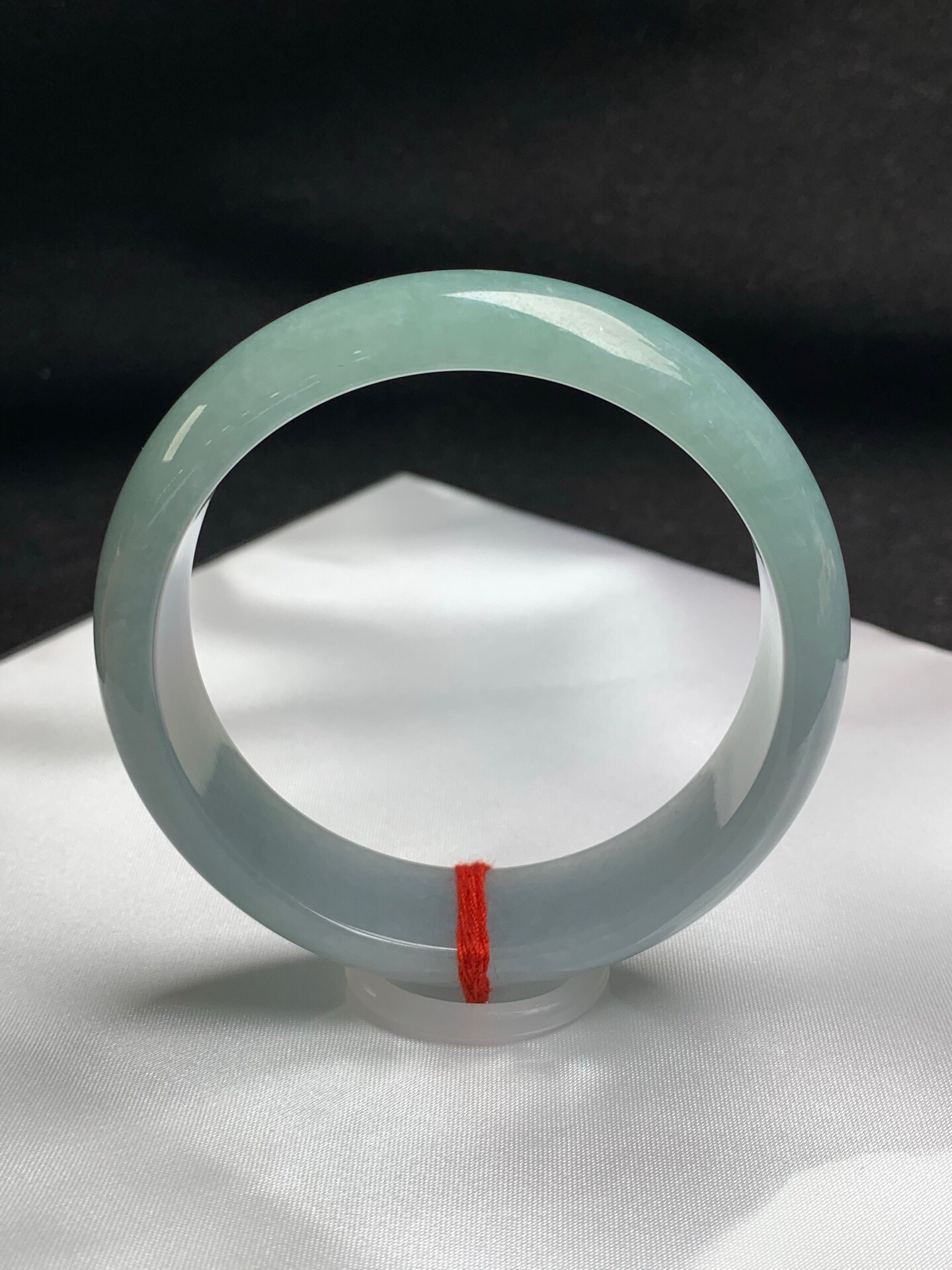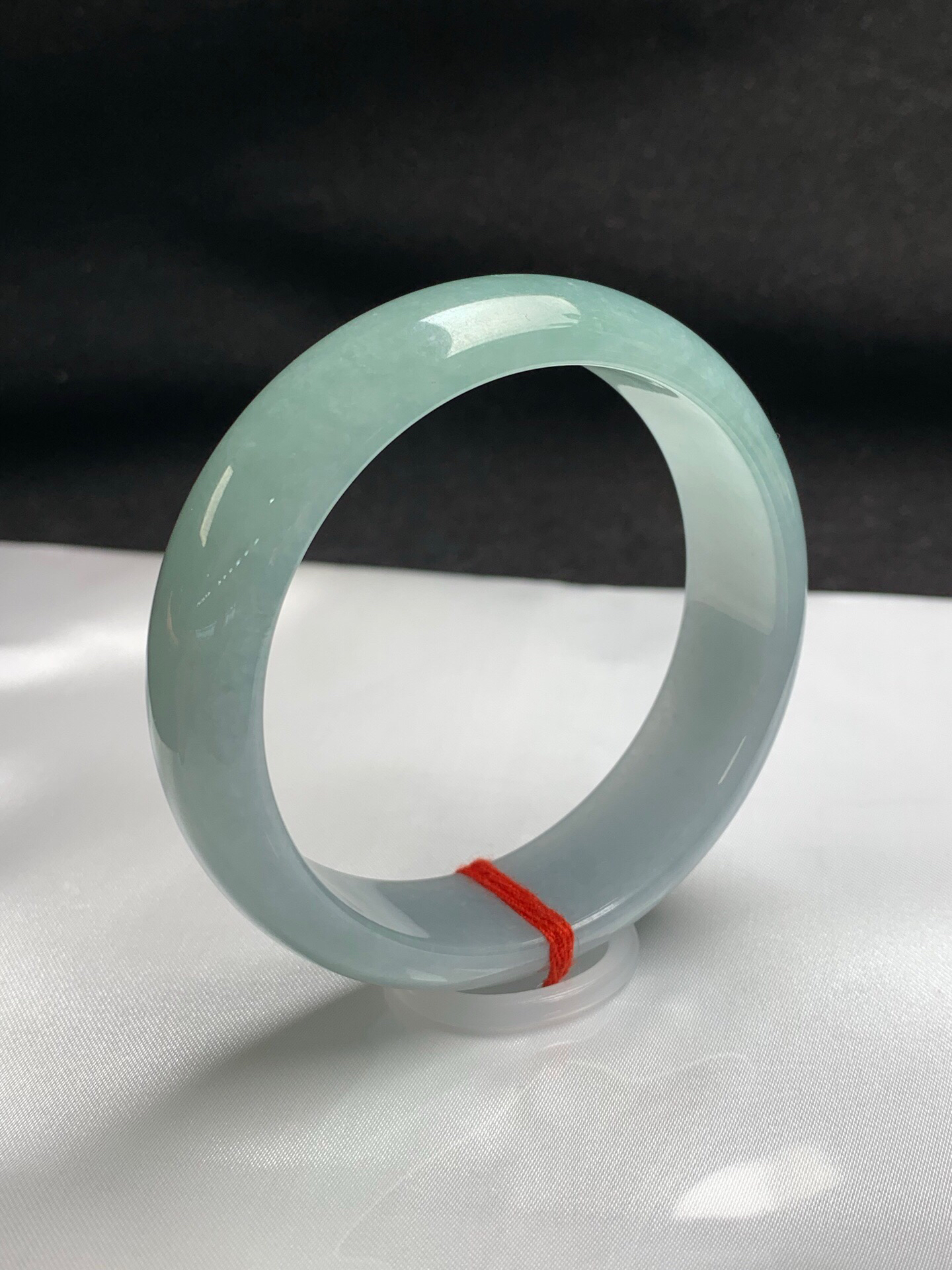 620289,60.5圈口,糯化蓝底正圈平安镯,宽版,晴蓝底色,种水好,微透手