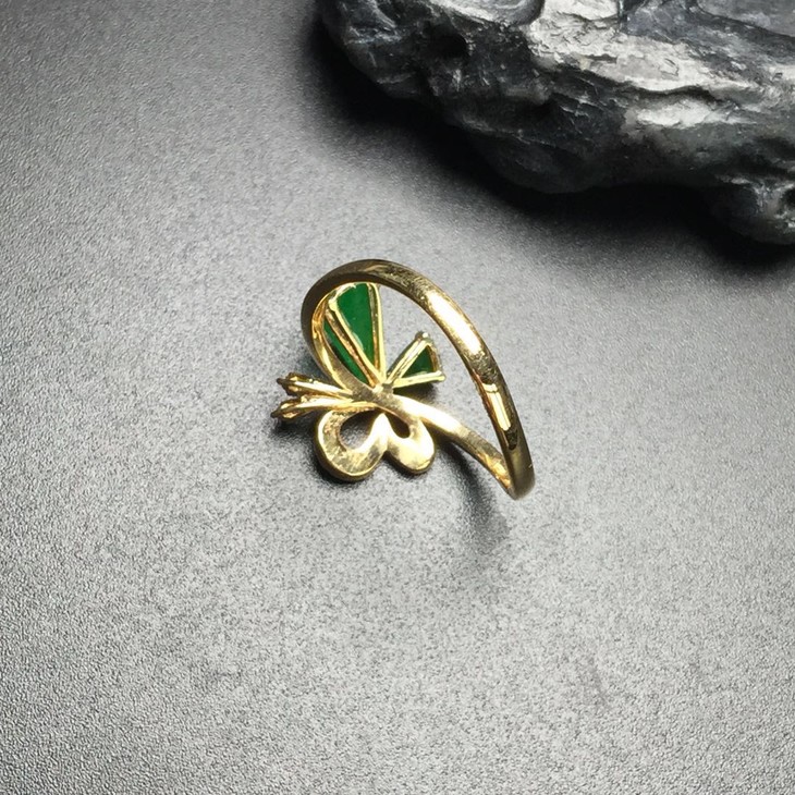 【D81221】翡翠冰种阳绿蝴蝶戒指,有种有色,水润光泽,款式别致,蝴蝶翩翩,你若盛开,蝴蝶自来,18K精美镶嵌,佩戴精致美观。整体尺寸:6.0*11.2*2.9mm,特价2380
