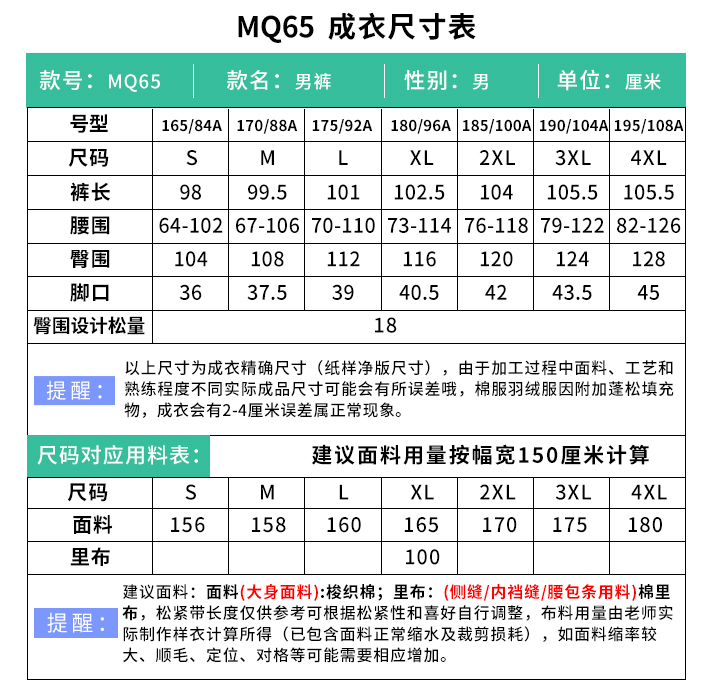 裁缝学苑MQ65休闲直筒工装裤纸样男装裤子服装打板样板