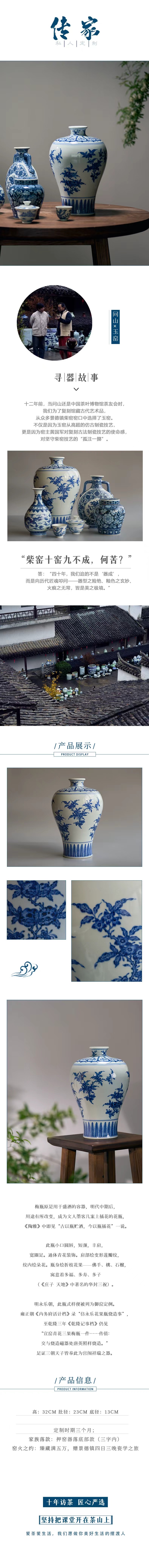 守艺 · 青花三花三果纹梅瓶 柴窑 高32cm 肚径23cm 底径13cm