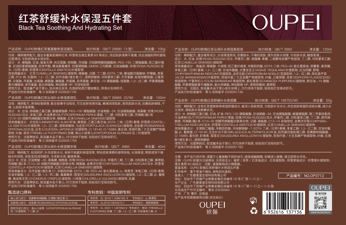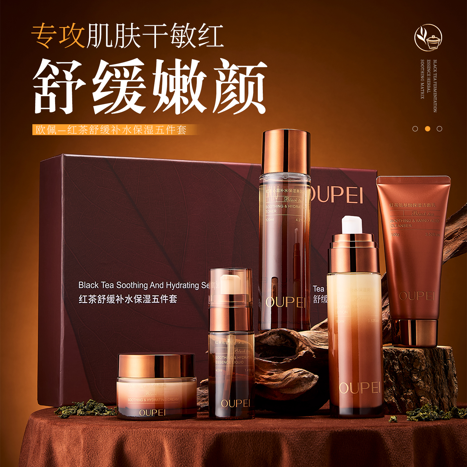 欧佩-红茶舒缓补水保湿五件套 面部套 家居套