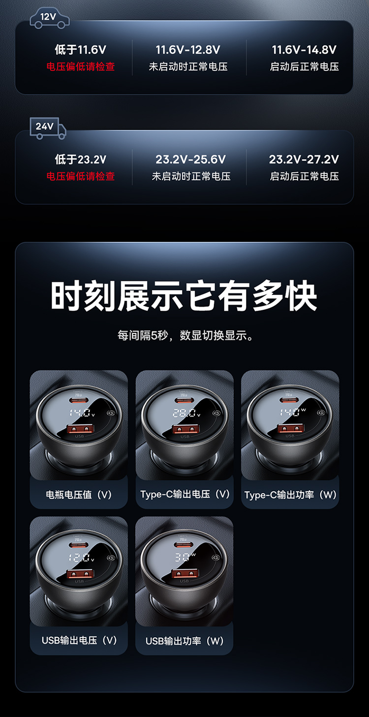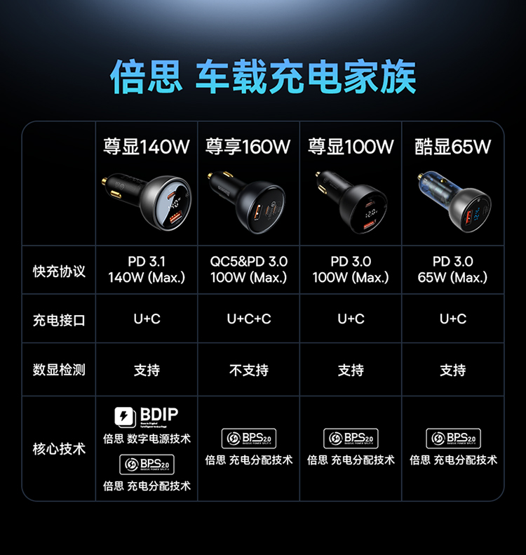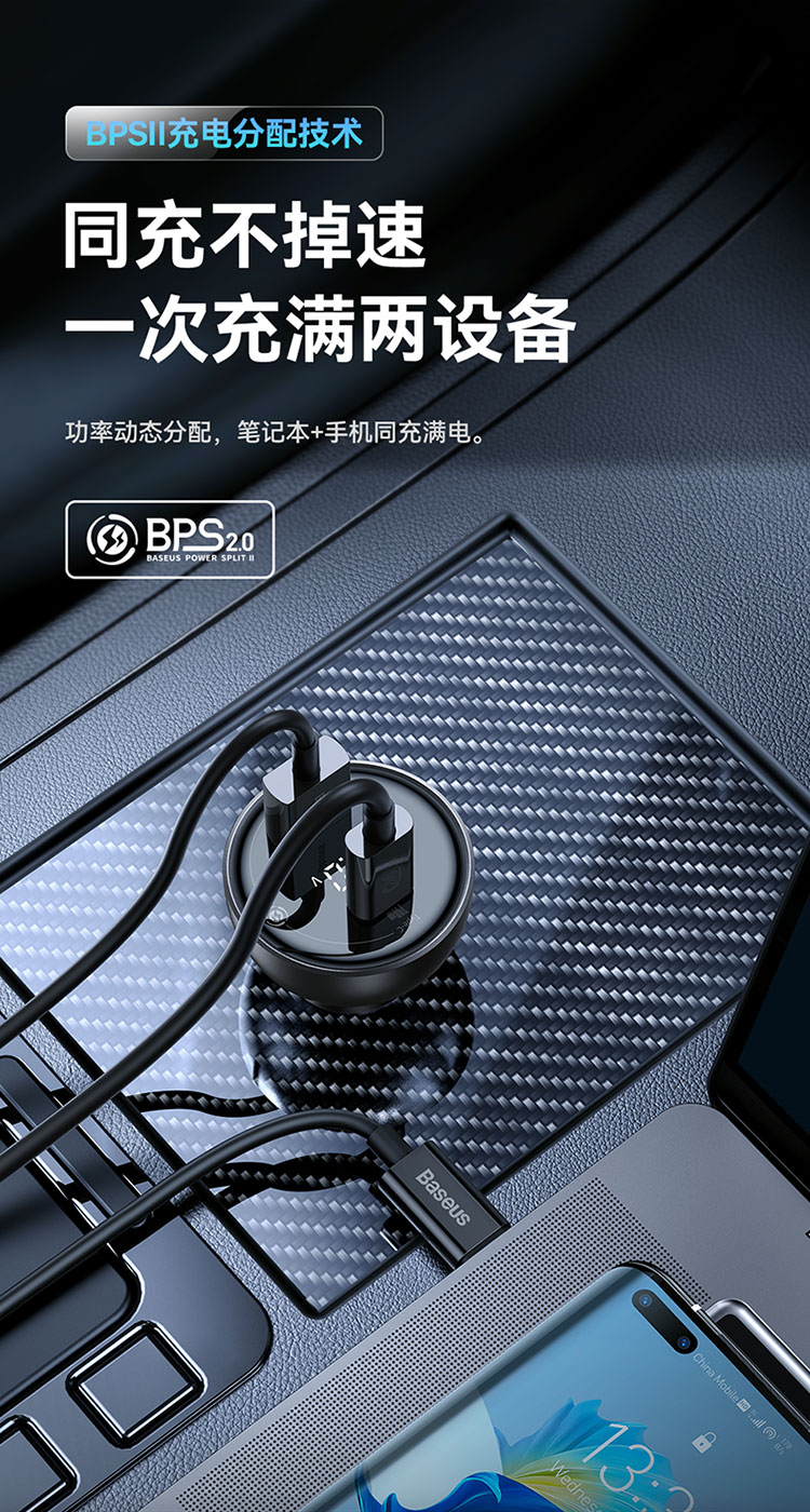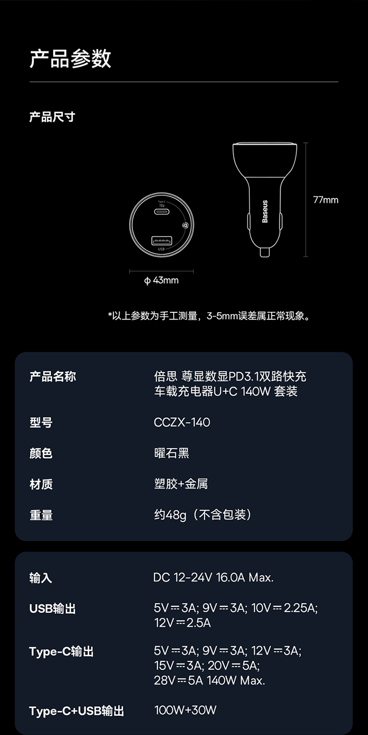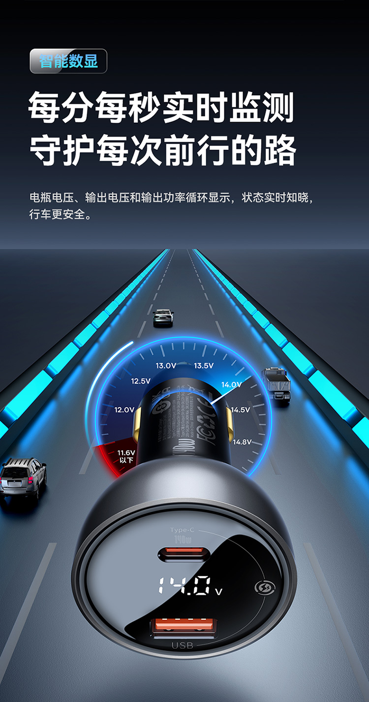 倍思 尊显数显PD3.1双路快充车载充电器U+C 140W 套装