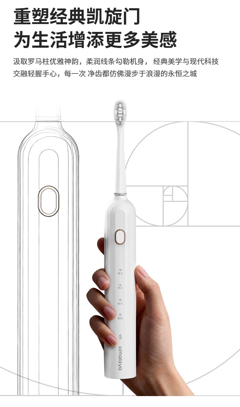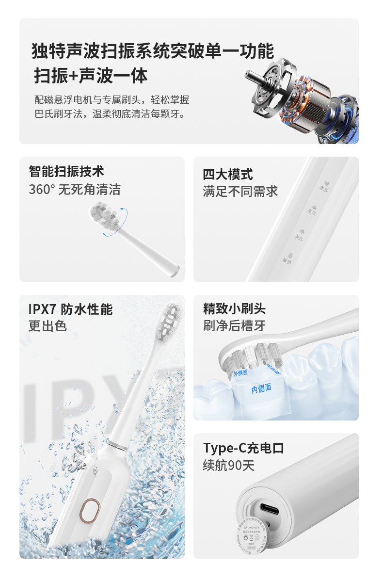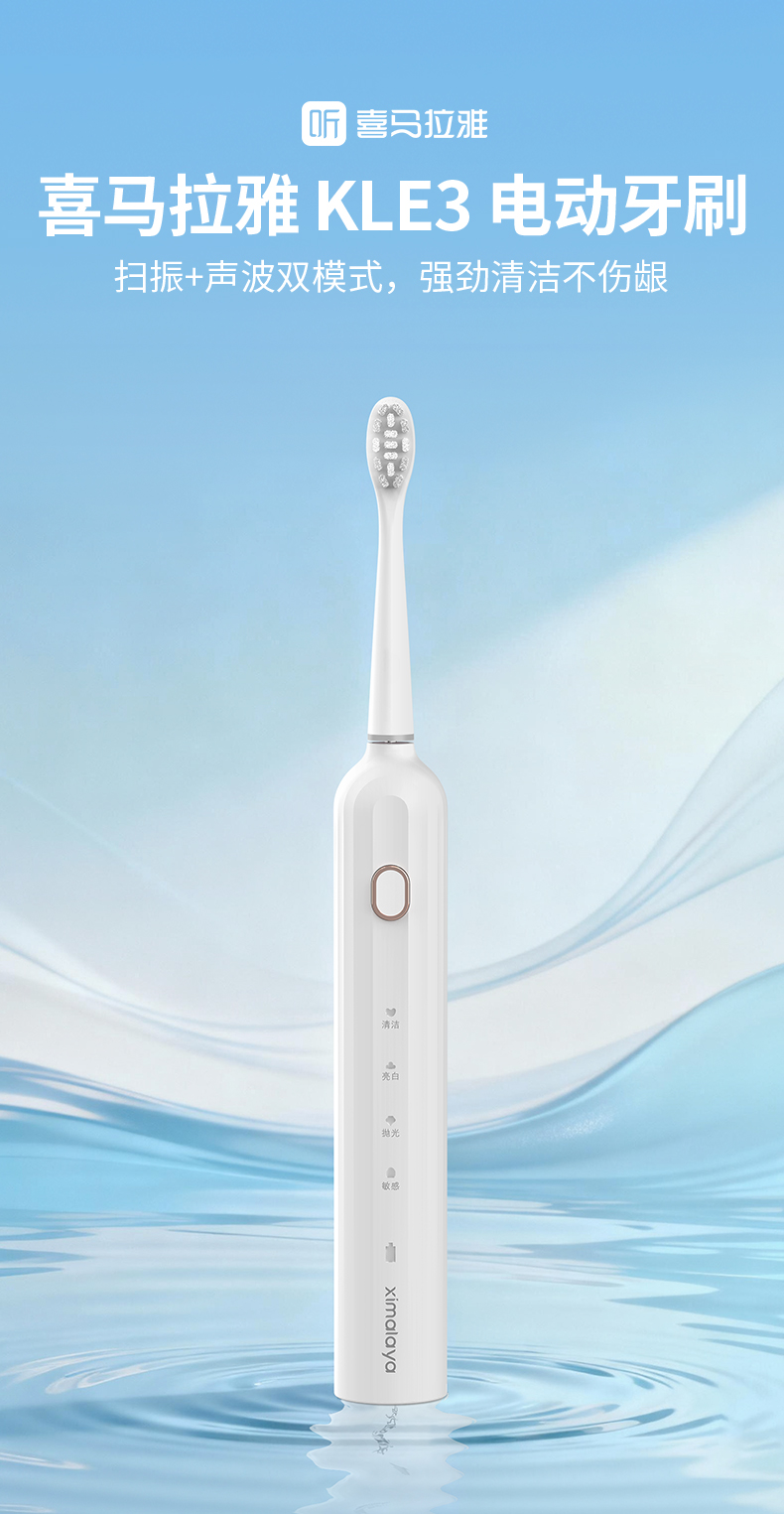 【内购送礼优惠】电动牙刷KLE3智能扫振声波技术4大模式IPX7级防水Type-C快充