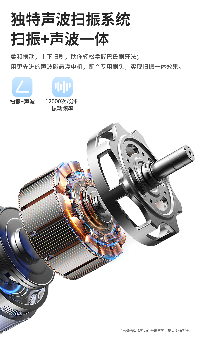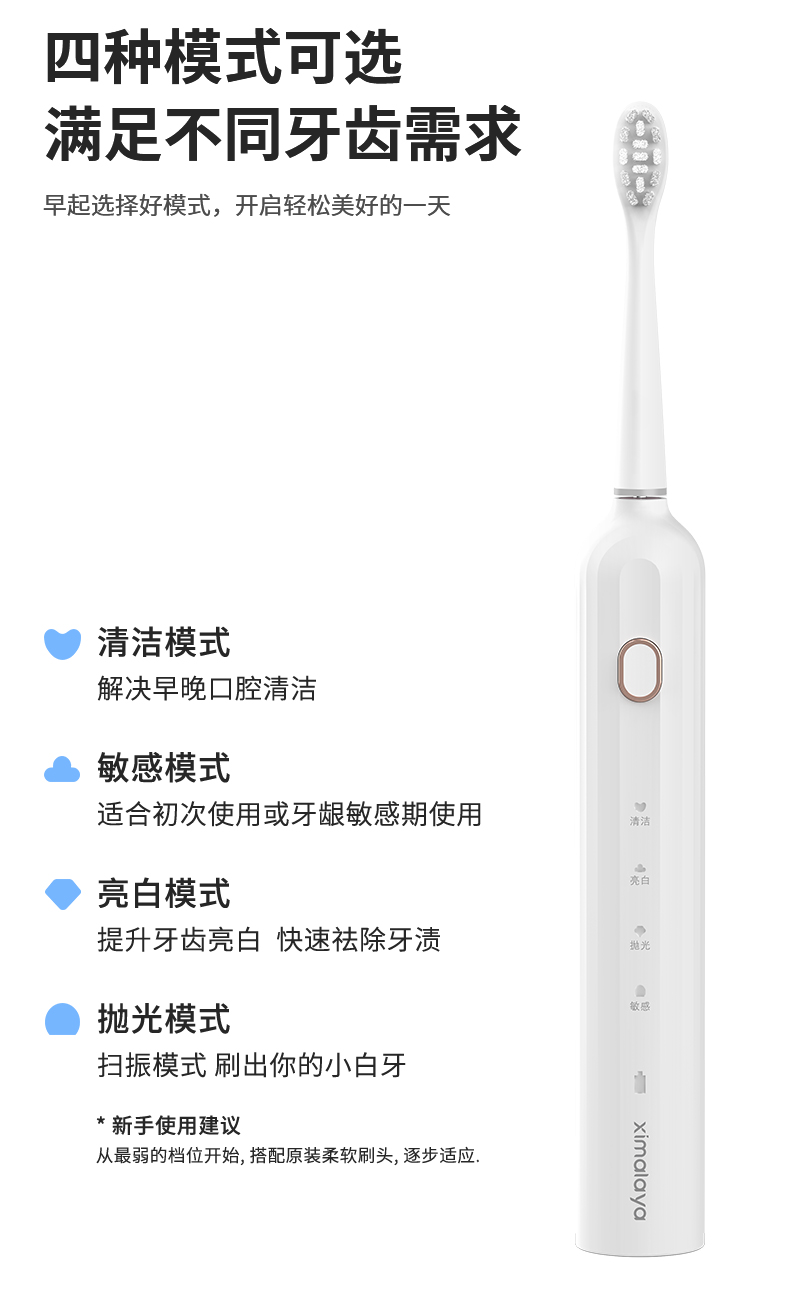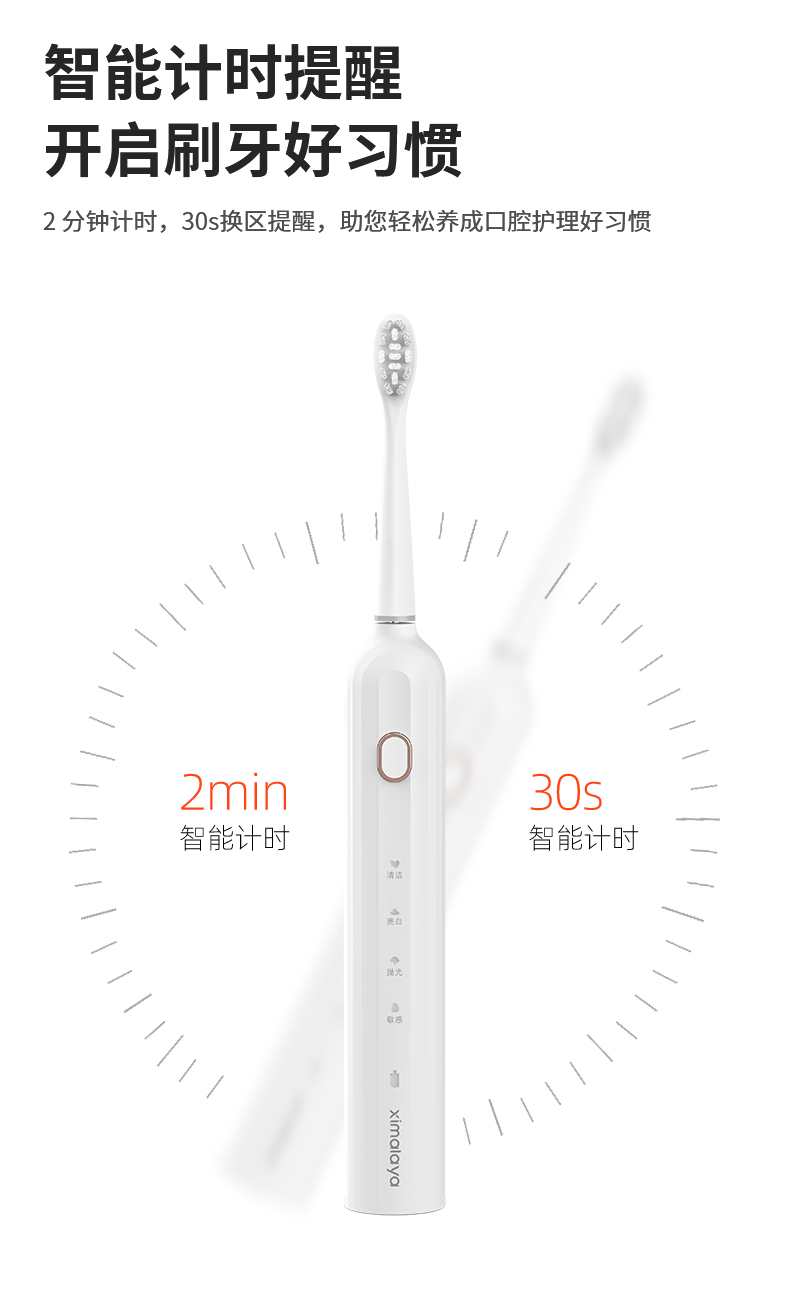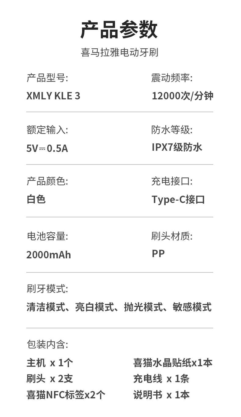 【内购送礼优惠】电动牙刷KLE3智能扫振声波技术4大模式IPX7级防水Type-C快充
