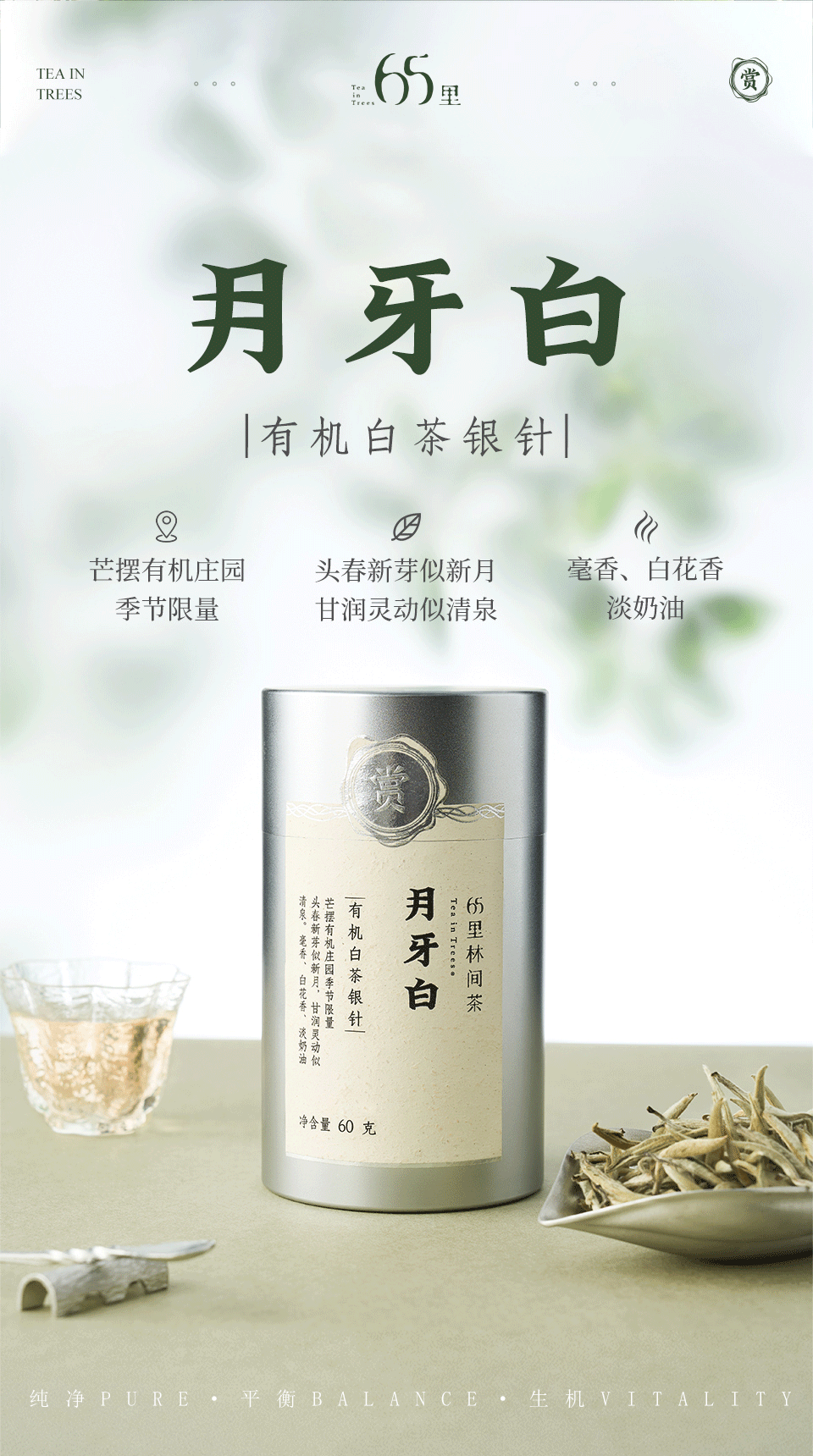 赏丨2024年月牙白 有机白茶 特级 60g(银色罐装/补充装)