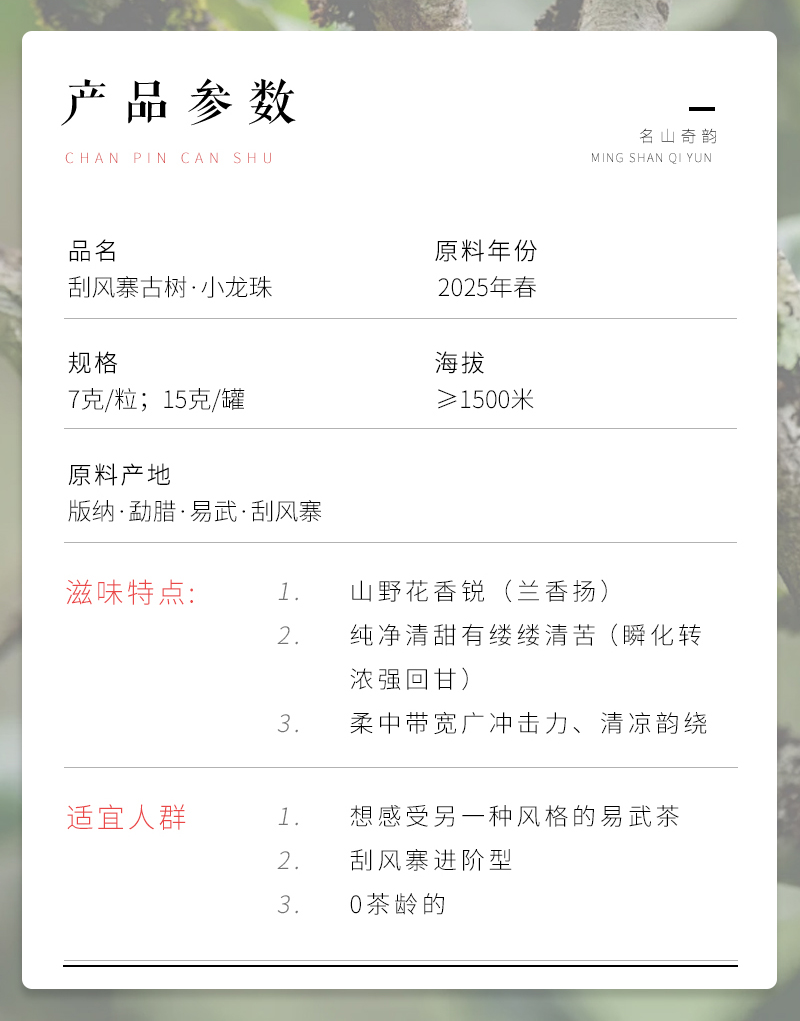 2025《刮风寨》古树春茶小龙珠 7克*15颗 生茶