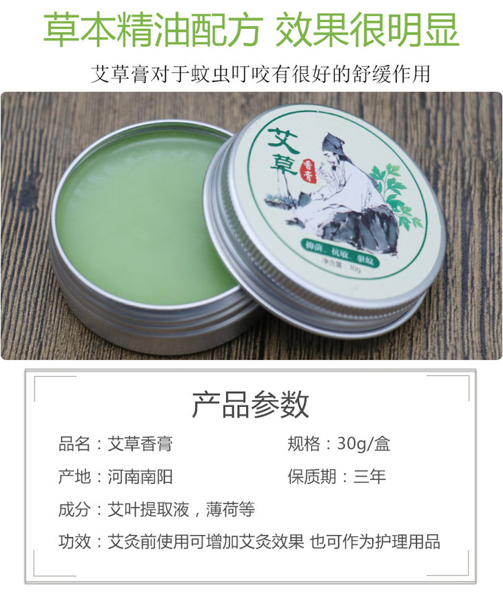 【2送1,3送2】天然驱蚊艾草香膏,植物萃取,温和不刺激,清凉止痒,防晕车,薄荷脑提神,艾灸伴侣,老少皆宜