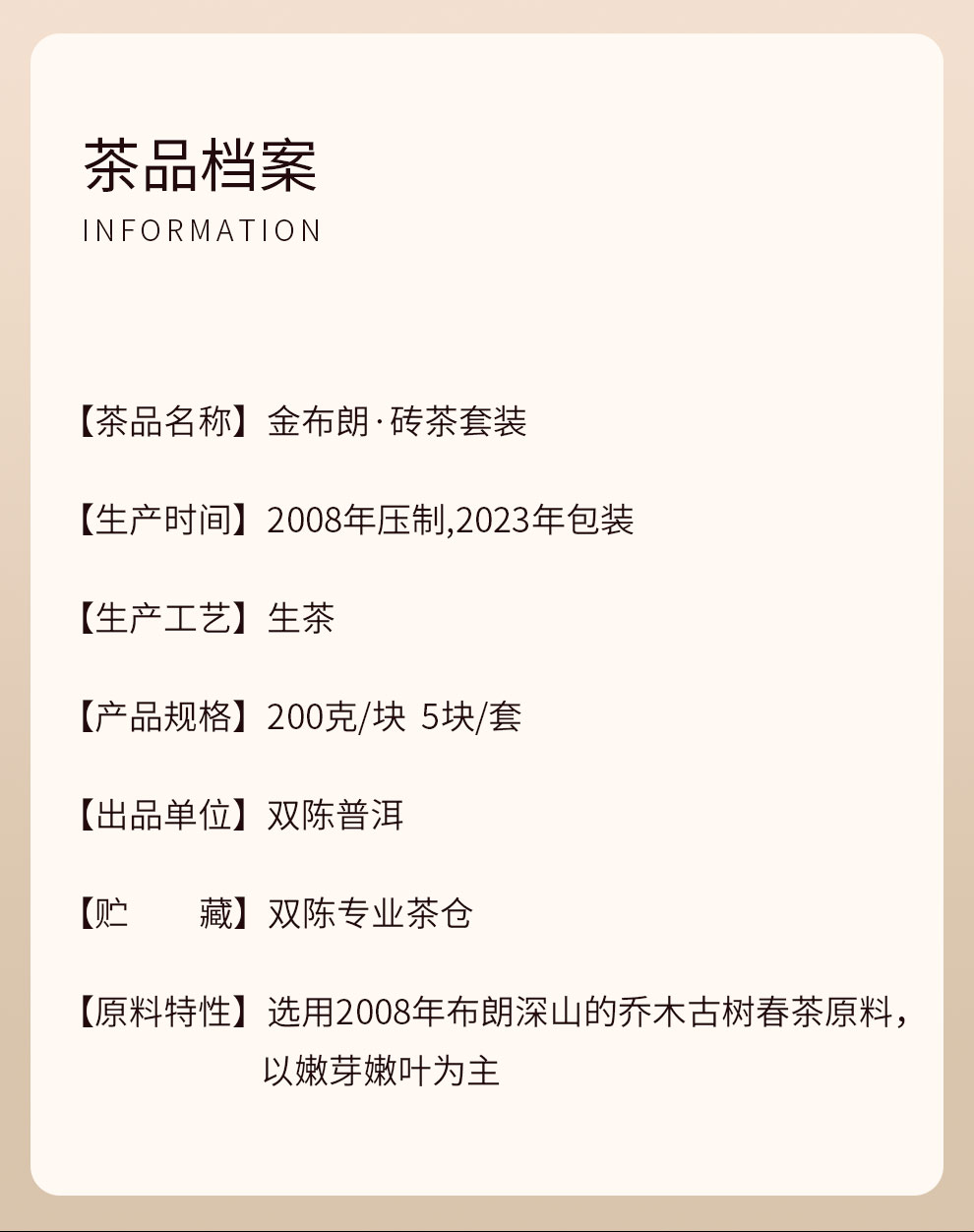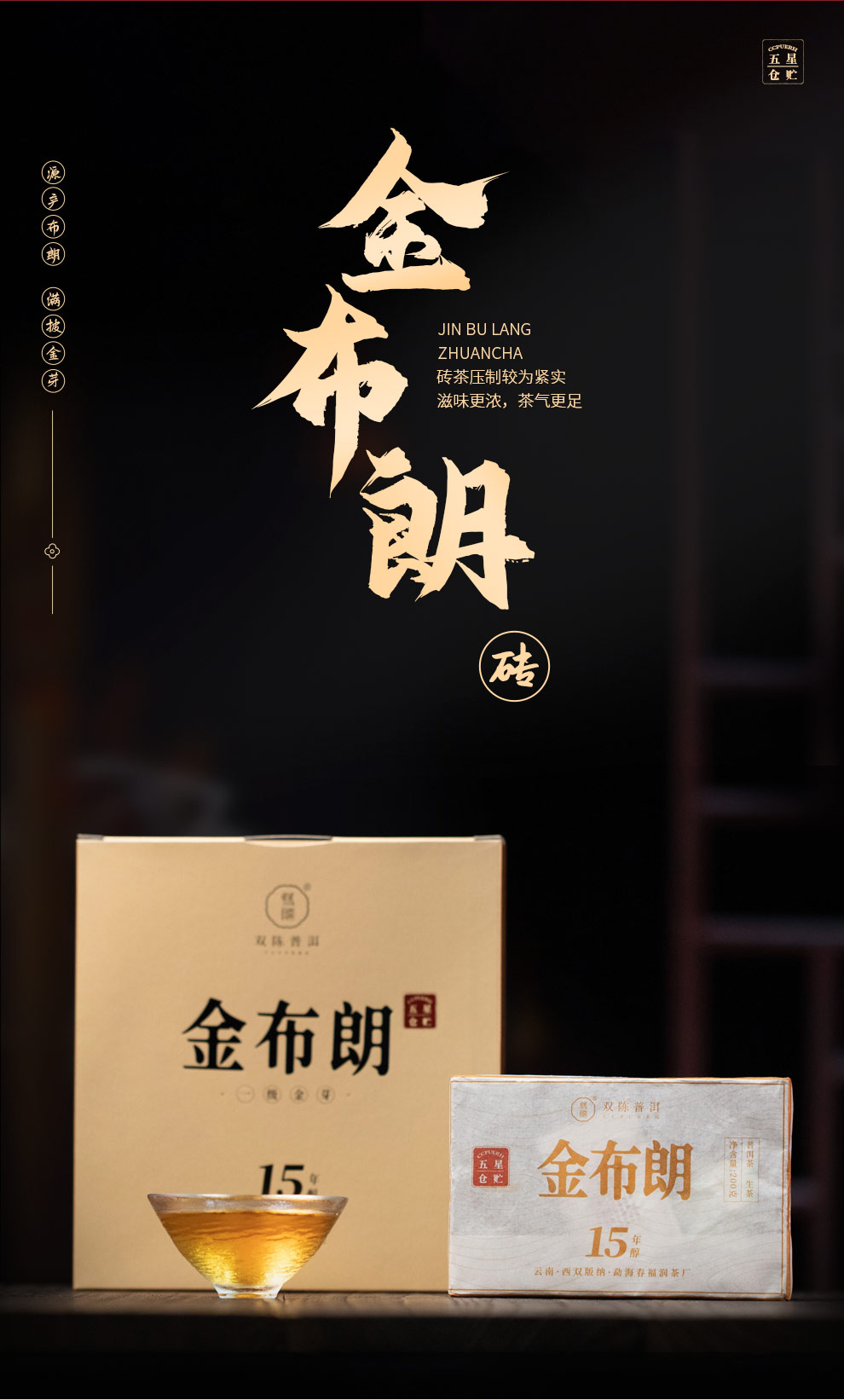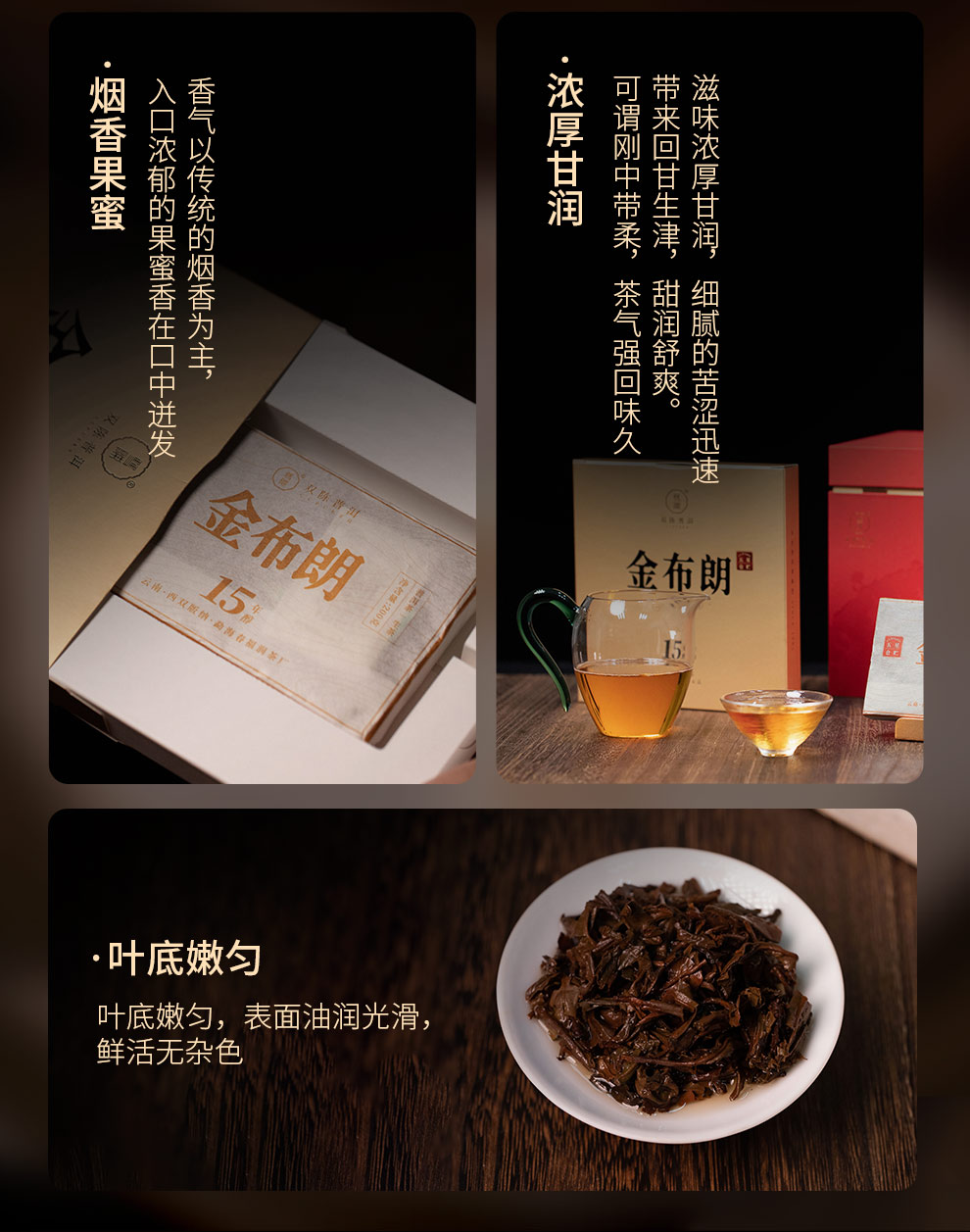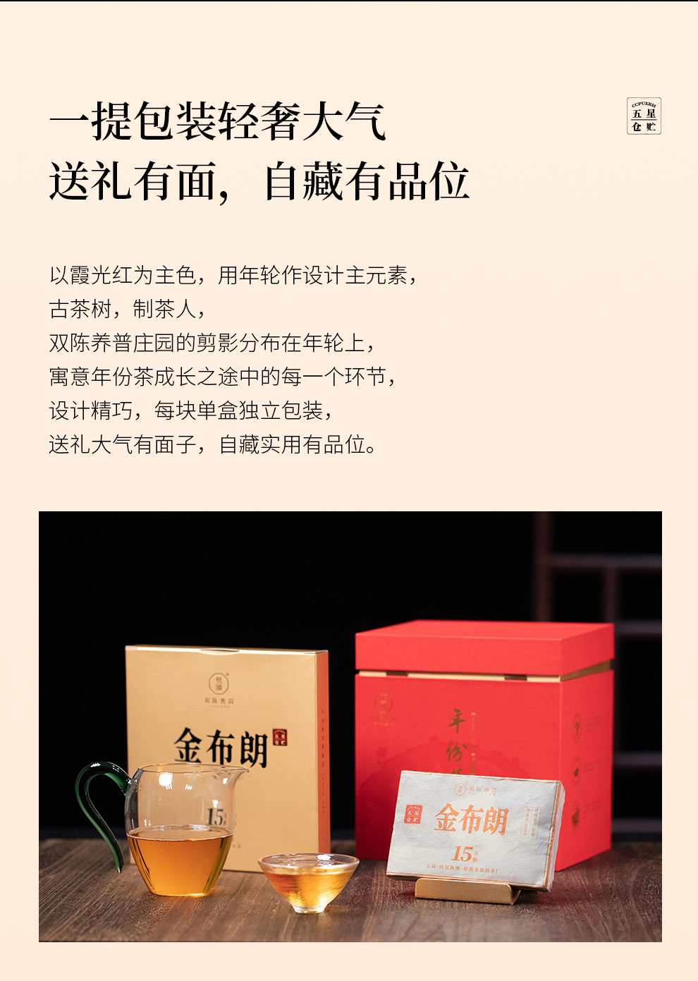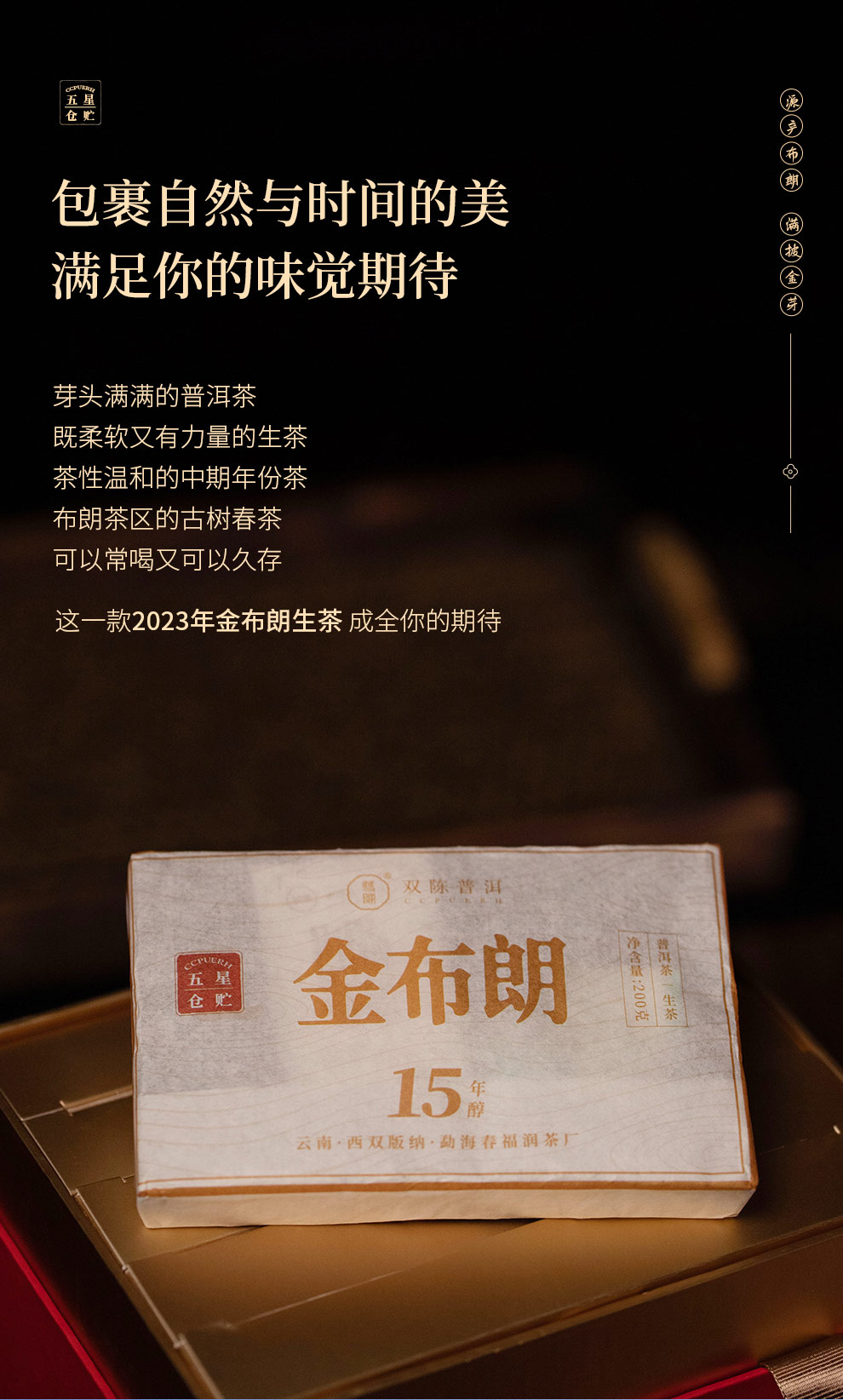 双陈2023年金布朗15年醇砖茶200g烟香密韵浓厚甘润云南勐海古树春茶