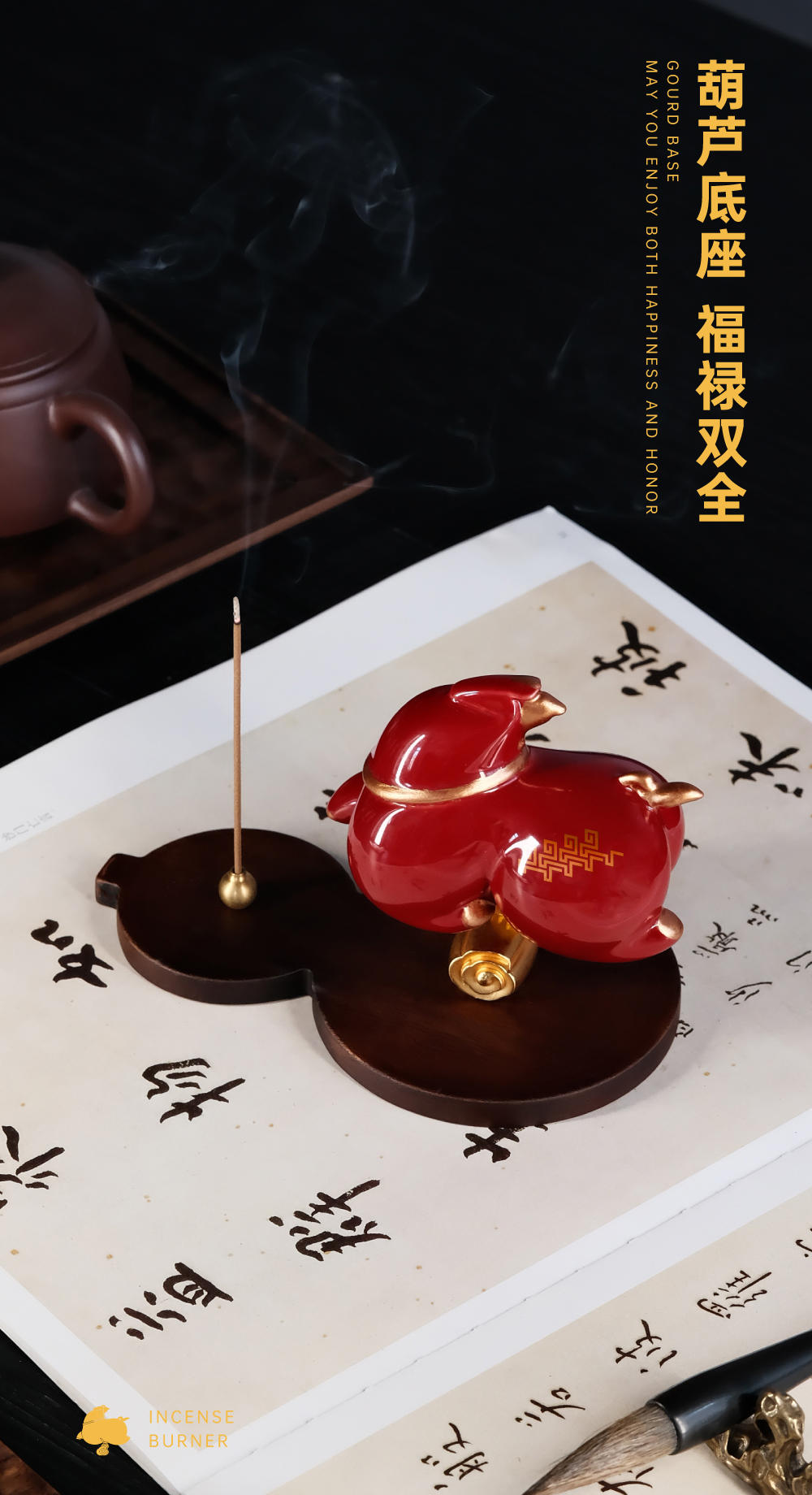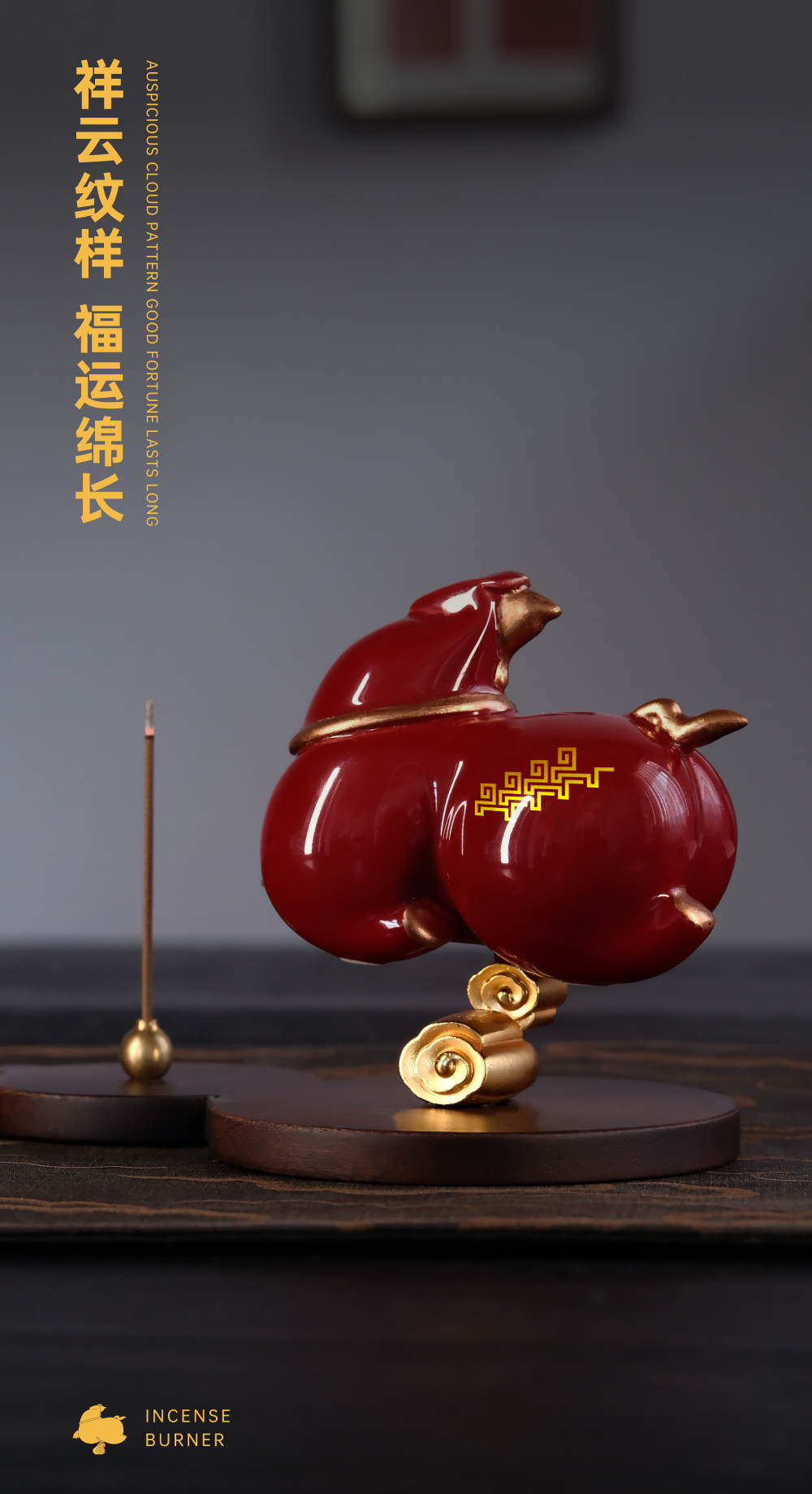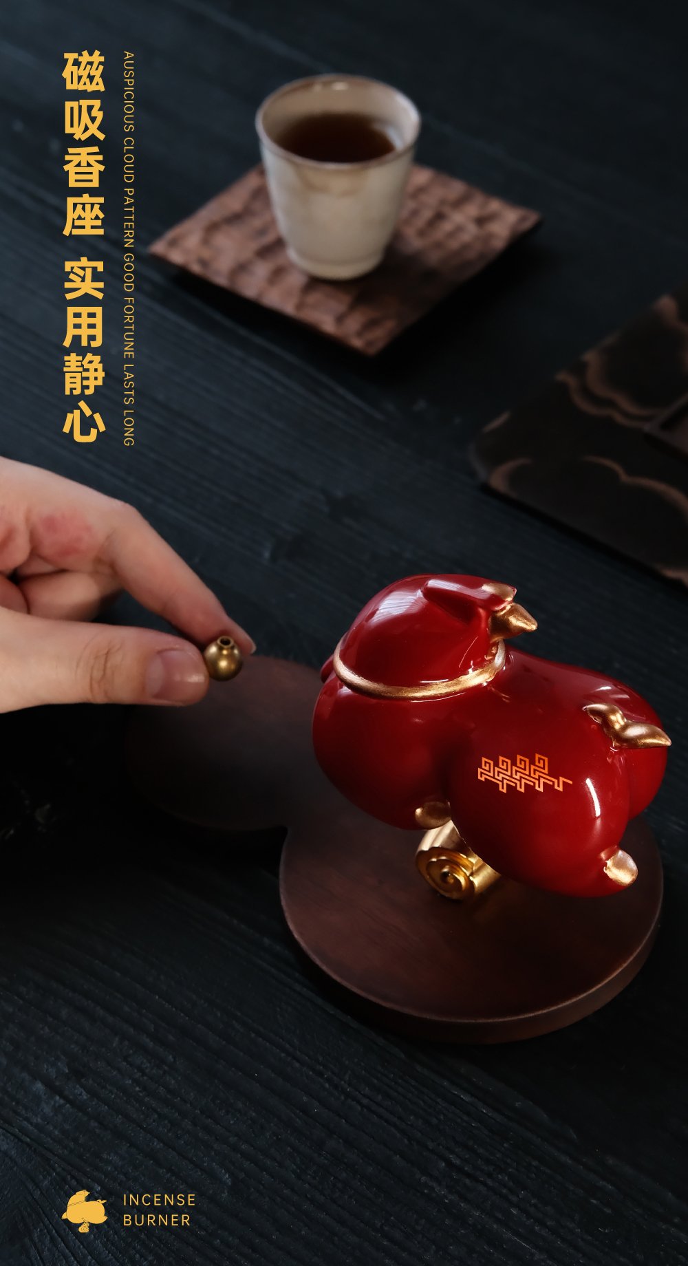 深棕底座则衬出质感,红金棕三色交织🎭,用它焚香🌿,是清雅氛围感,红红火火,日子都裹着喜气!
