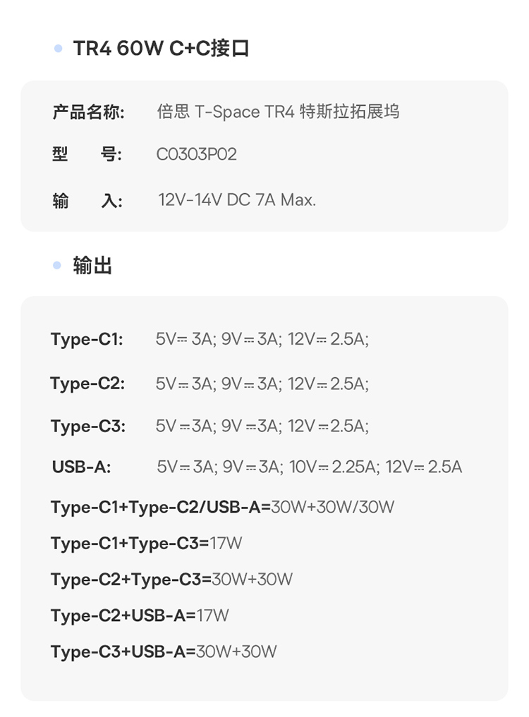 C0303P02 CN-倍思 T-Space TR4 特斯拉拓展坞 4代 (焕新model Y)C+C双线