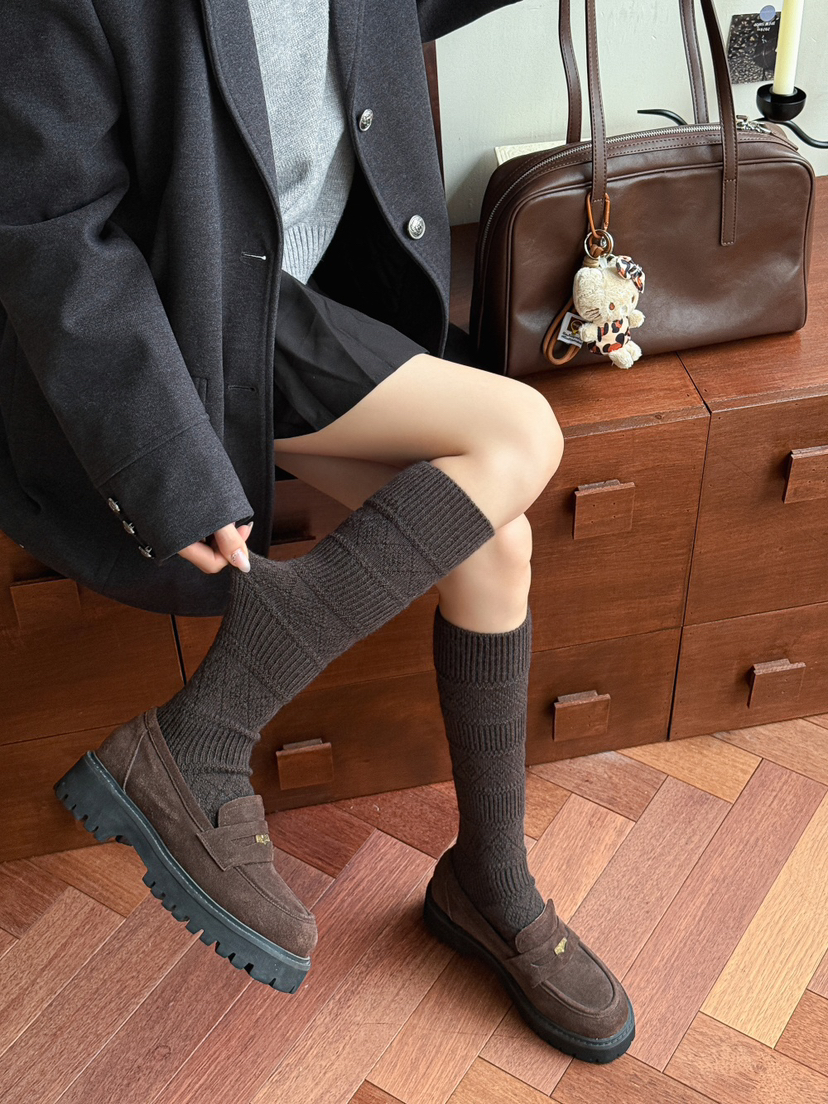 2双装!微压驼绒小腿袜 美腿塑性加厚柔软保暖亲肤 菱格暗纹设计 时尚潮流大牌风