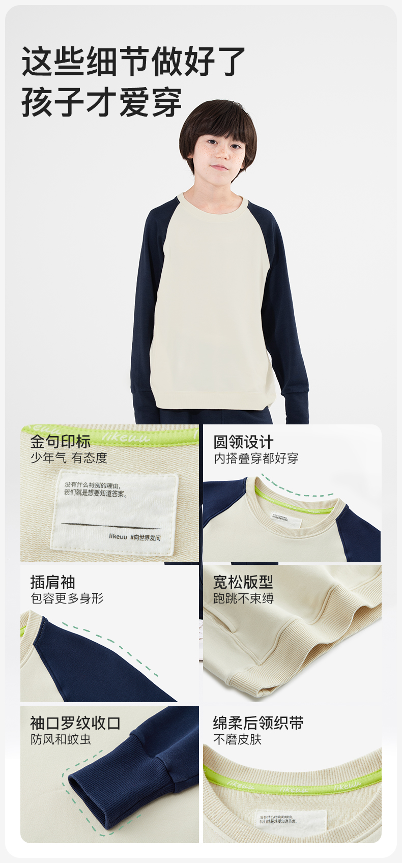 (11.11)ubras旗下likeuu儿童卫衣卫裤男女中大童休闲T恤裤子秋冬