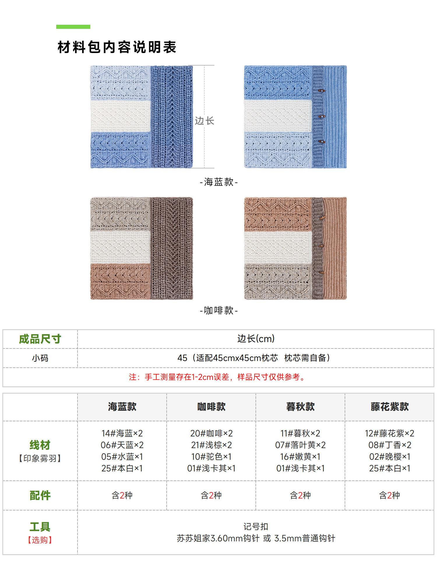 苏苏姐家雨雾拼花抱枕套手工DIY编织钩针抱枕套毛线团自制材料包