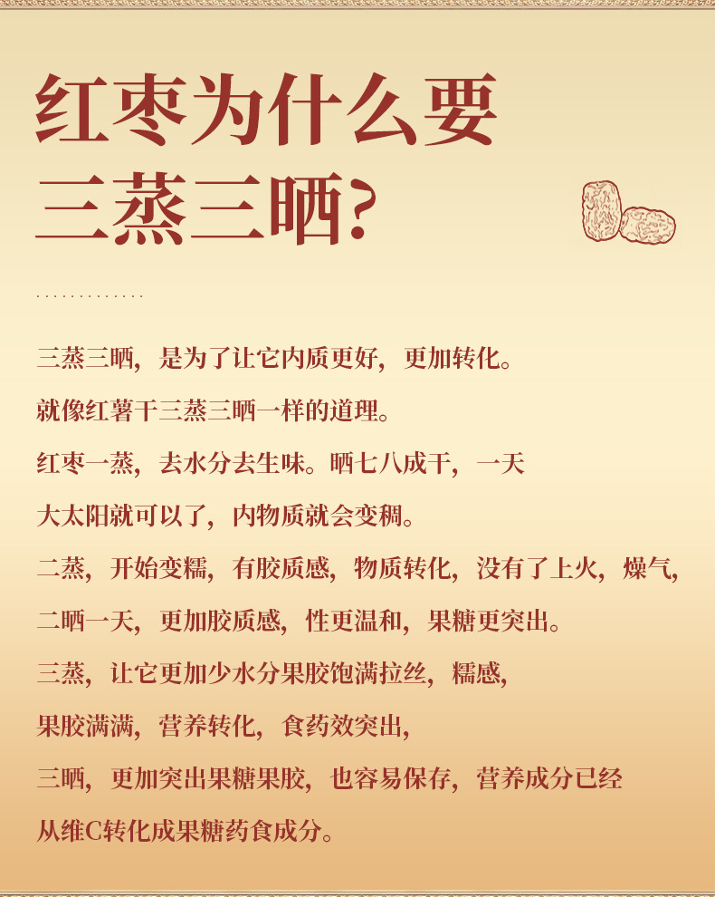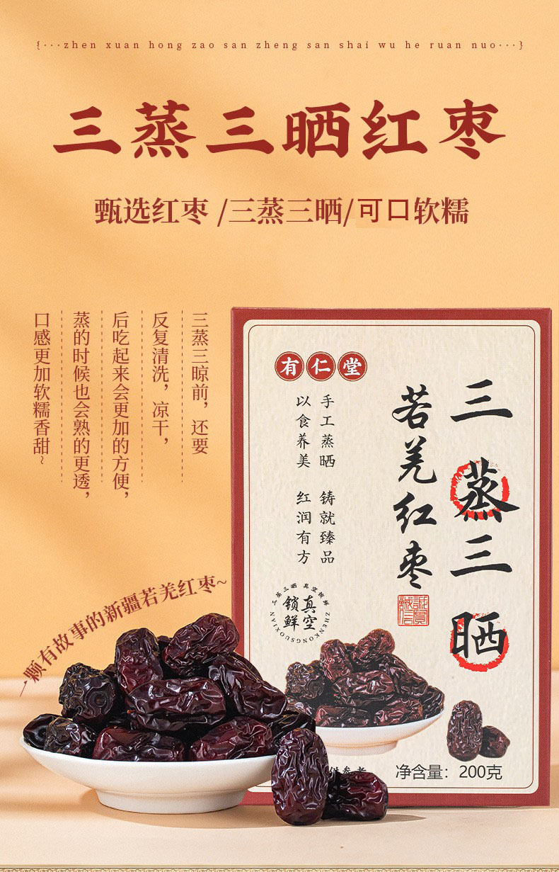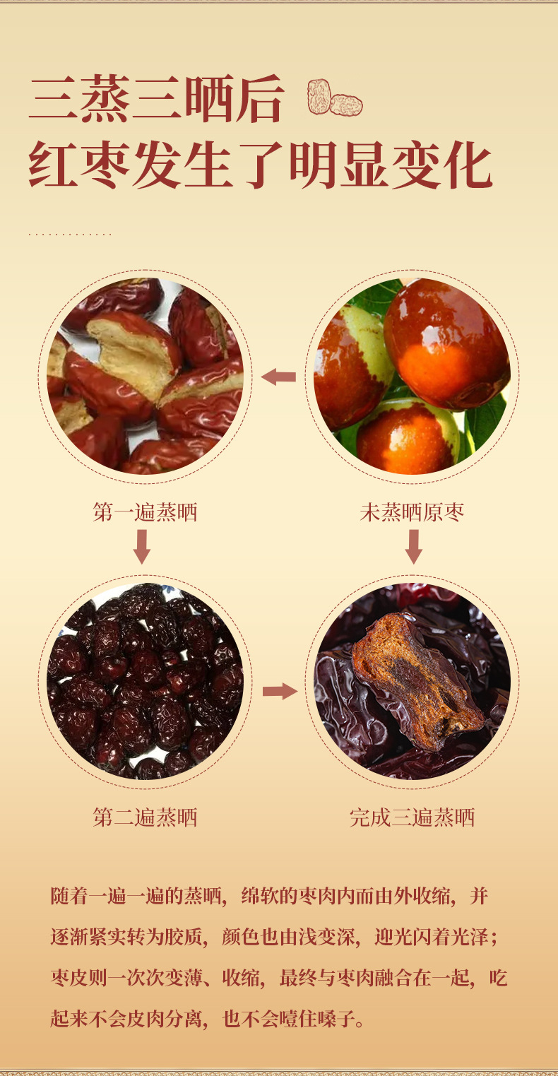 【三蒸三晒!新疆若羌红枣】甄选红枣 柴火木蒸 古法炮制,果肉瓷实 口感香甜 软糯细腻!真空包装 干净卫生,三蒸三晒枣女性月月舒养生零食Y