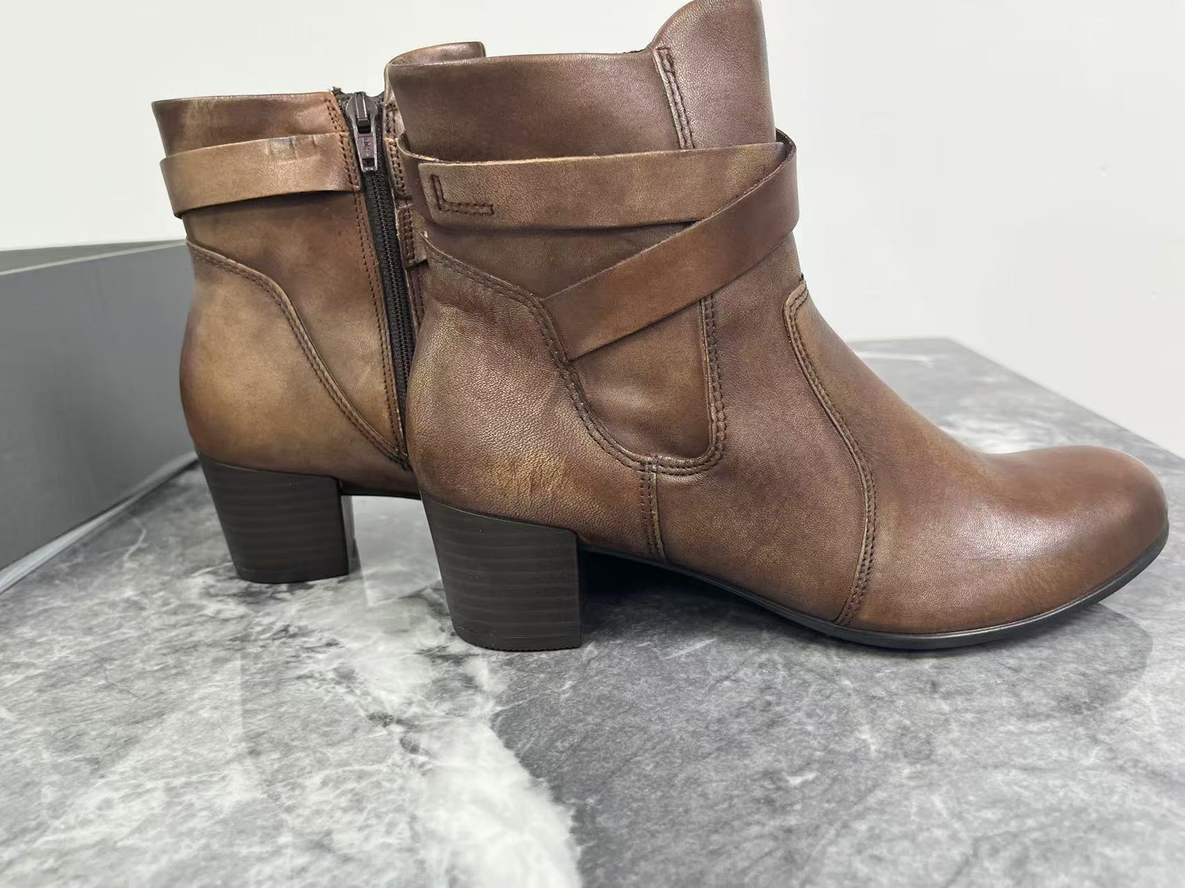 瑕疵ECCO/爱步 女士时装靴复古侧拉链粗跟尖头短靴 型塑273173