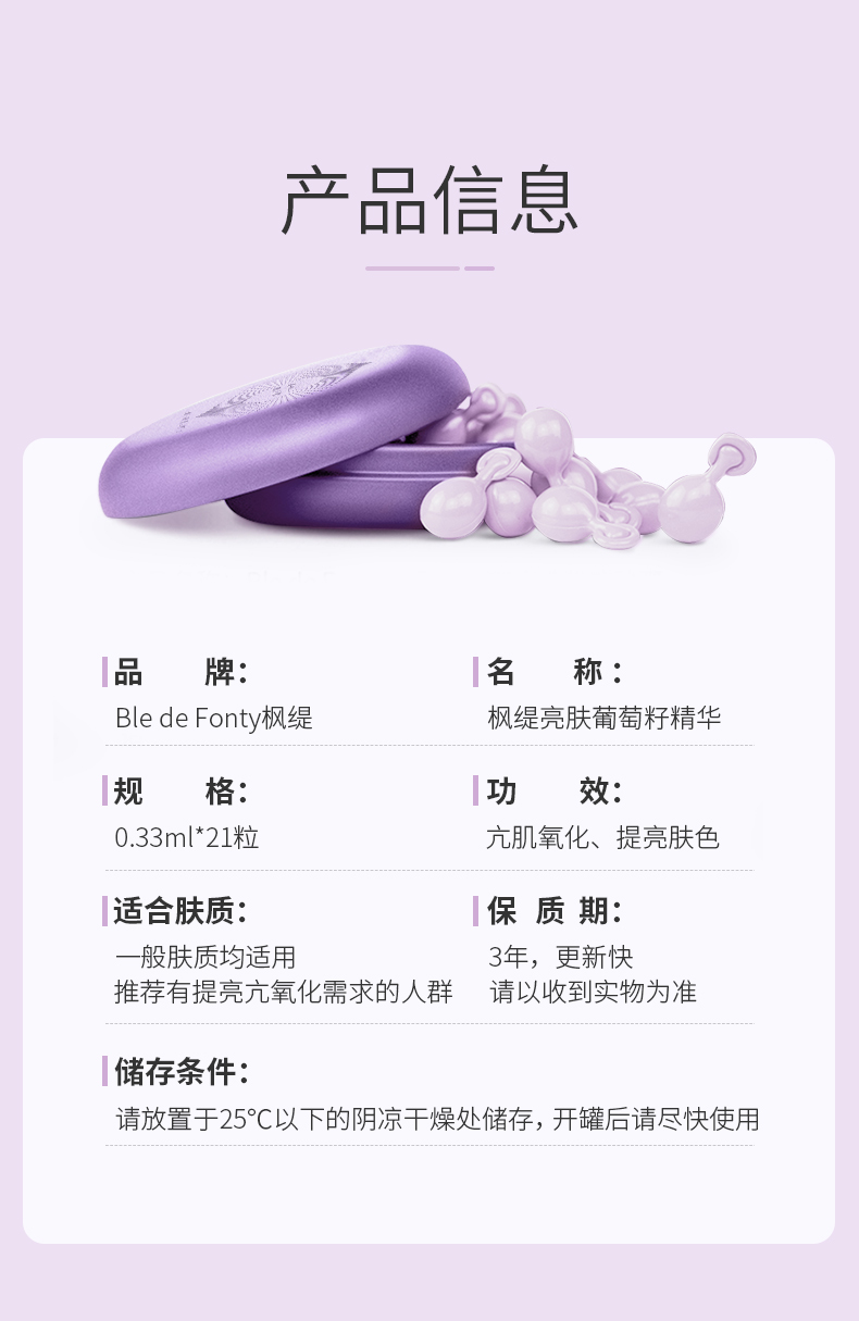 新加坡BLE DE FORTY · 枫缇布蕾日间淡纹补水胶囊精华(二代葡萄)0.33ml*21粒|品牌直发