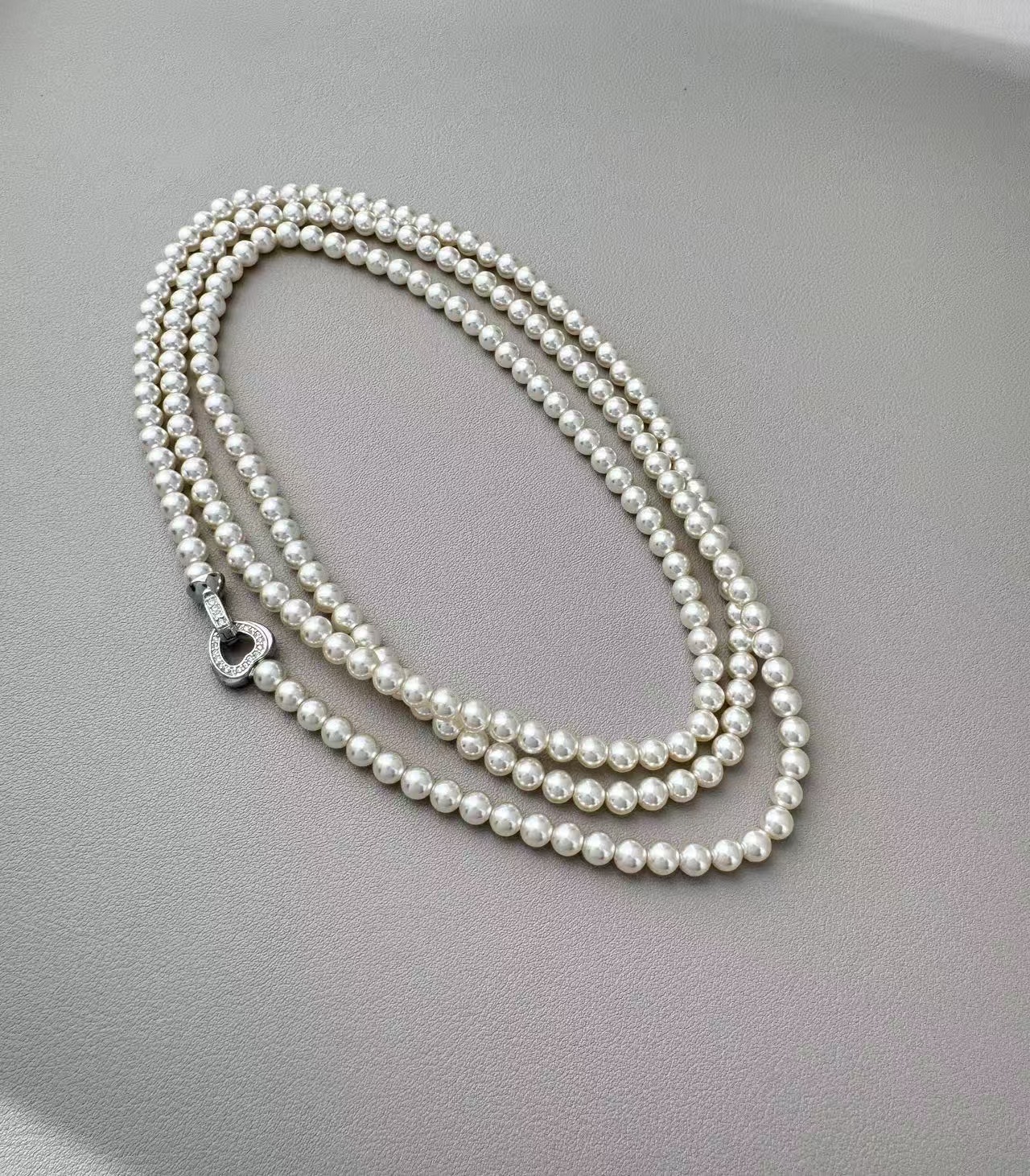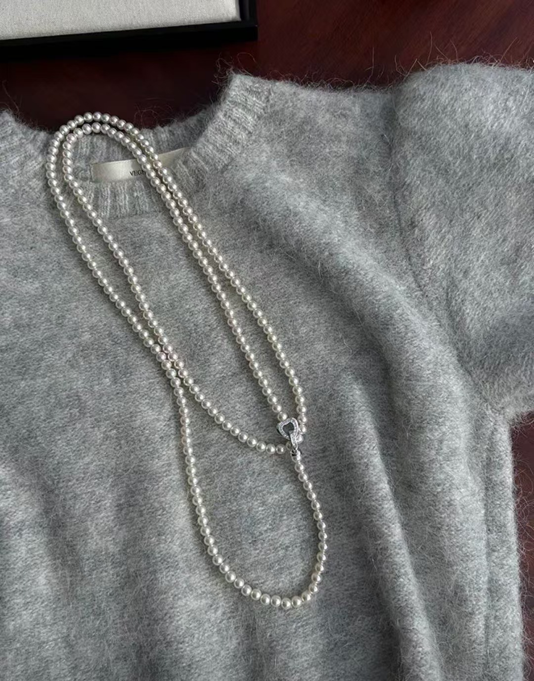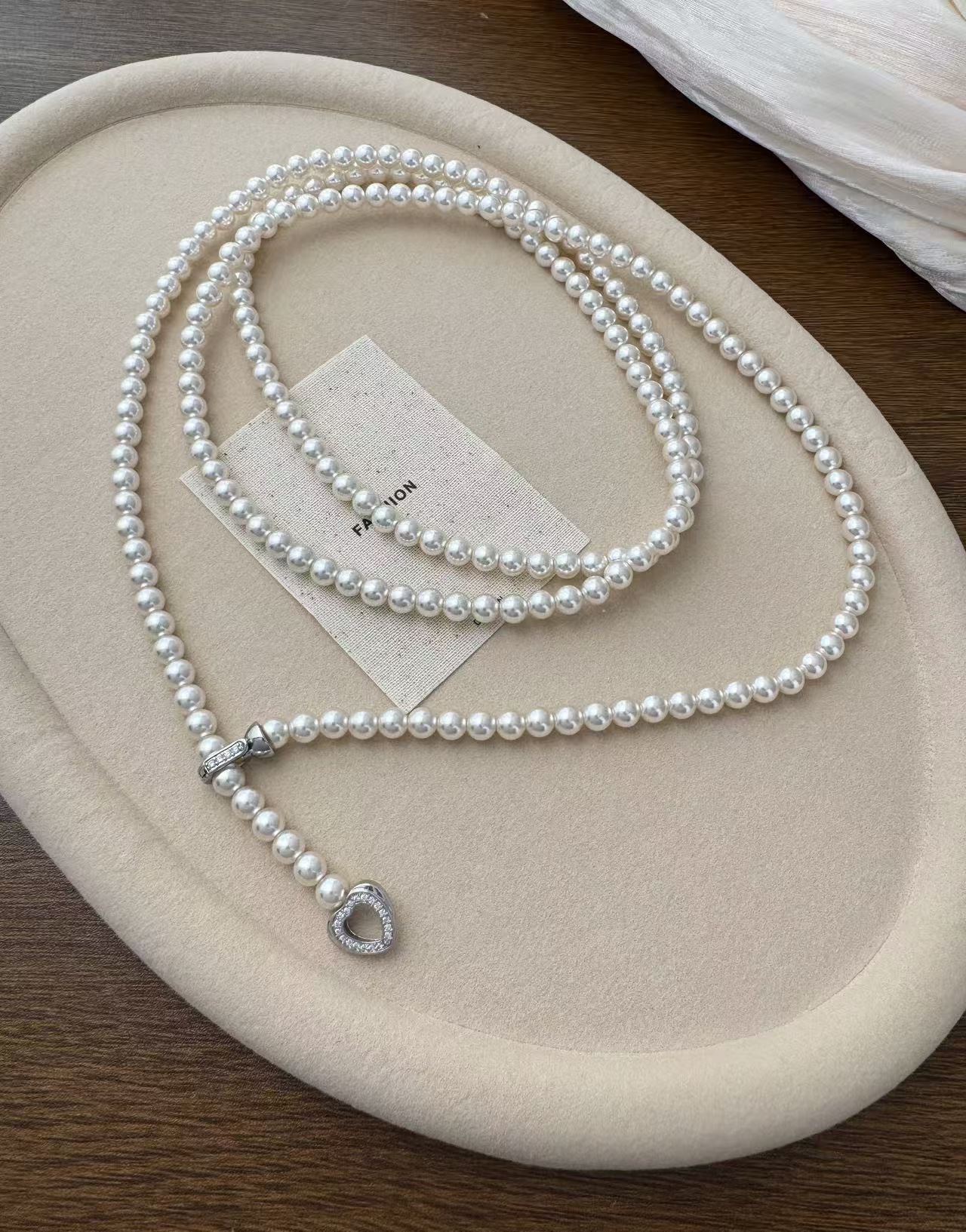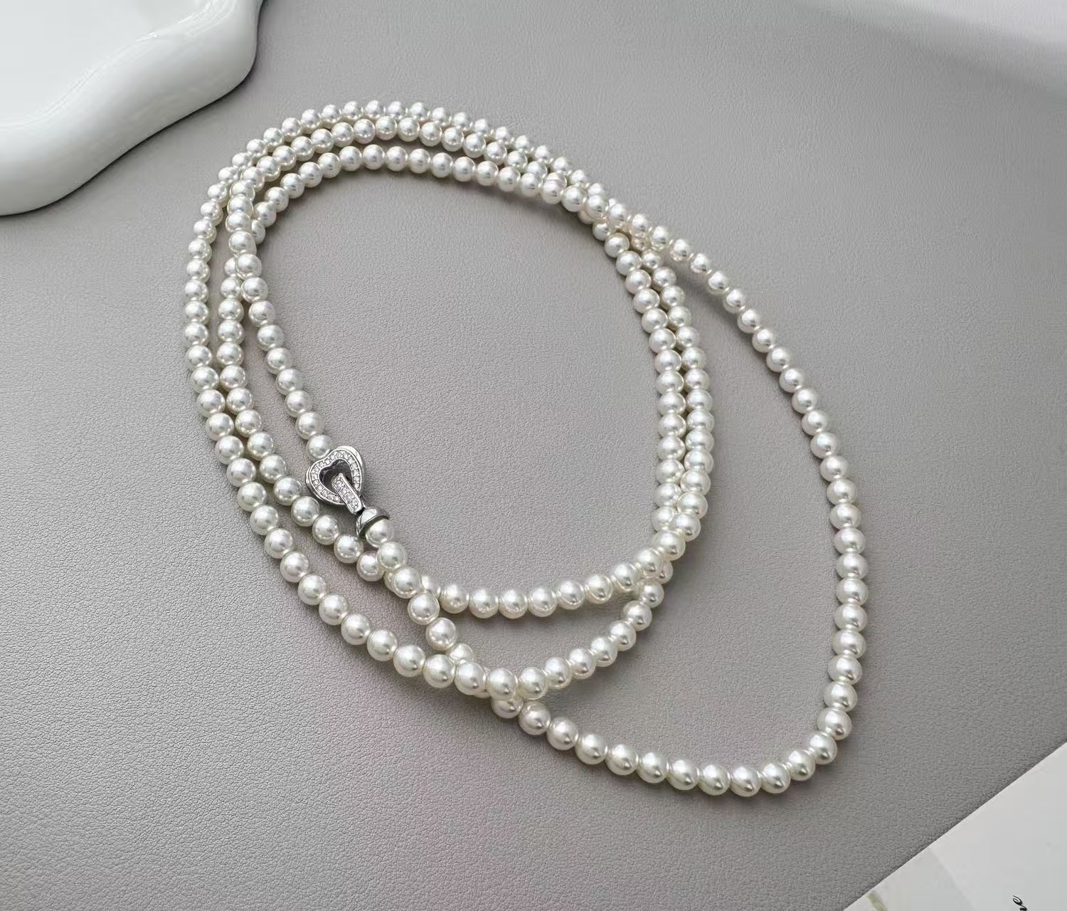 一年可以戴365天的百搭珍珠毛衣链,万能扣头更实用,经典的120cm长度,可以变换各种造型,Y字链、长短链、绕2-3圈做短链都可以,非常百搭,爱心部分也很精致,正反两面都好看。