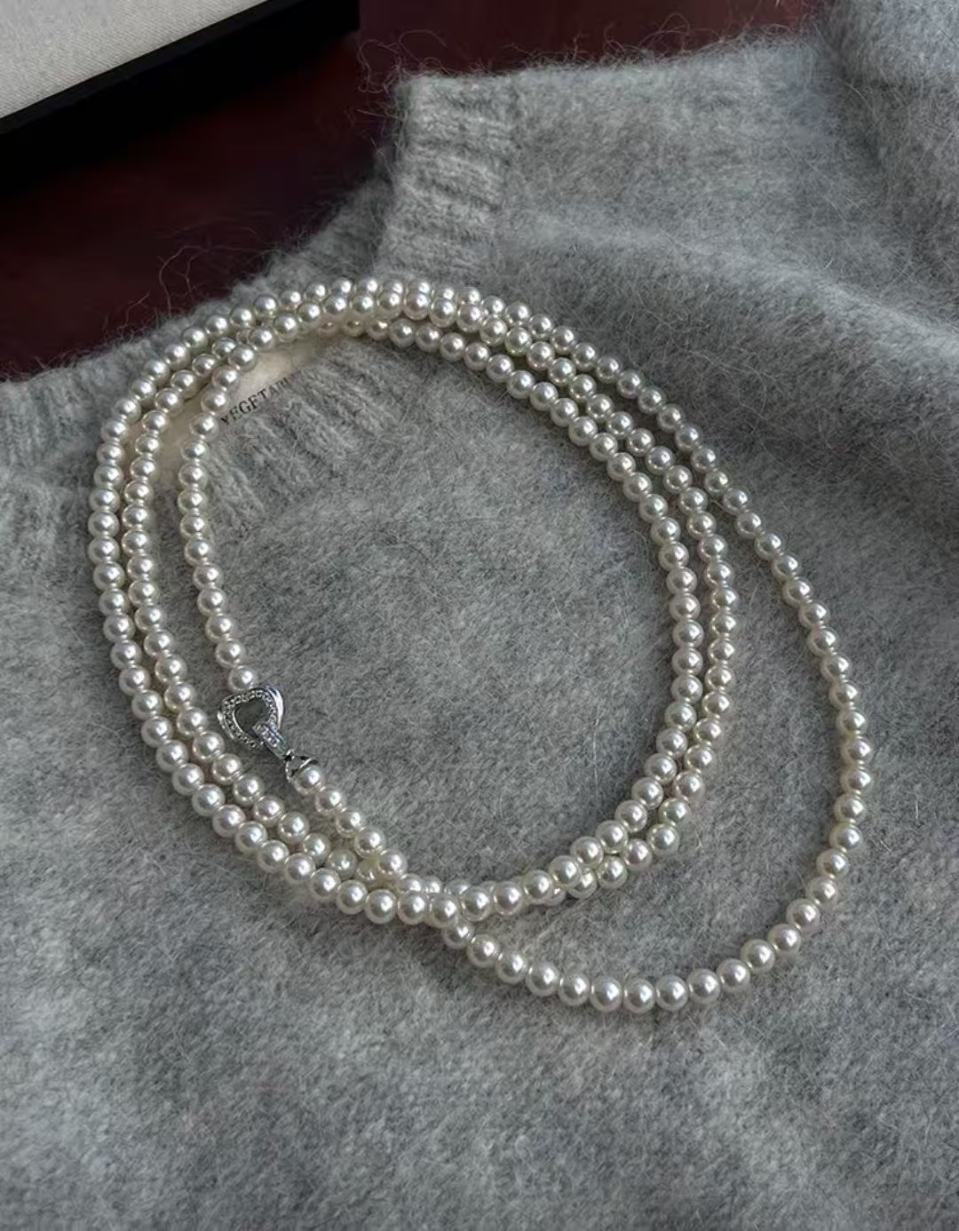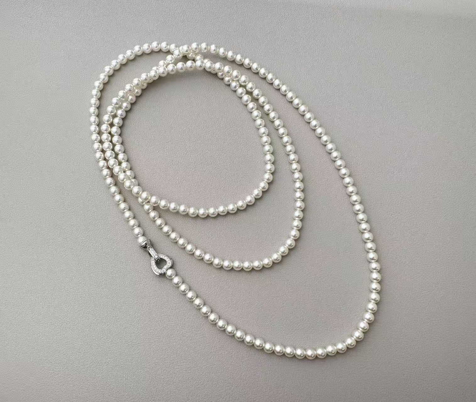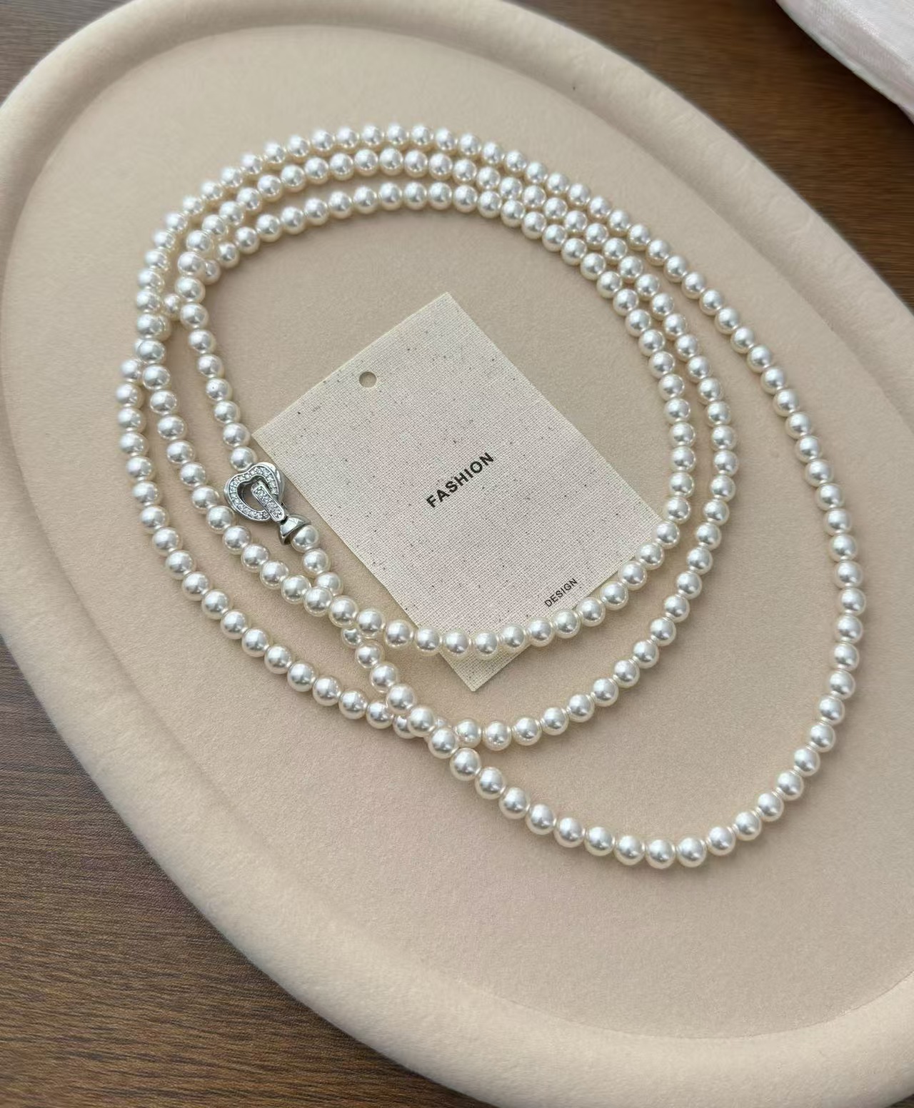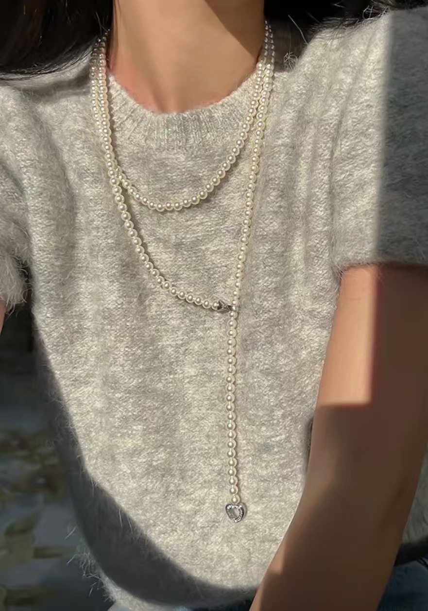 一年可以戴365天的百搭珍珠毛衣链,万能扣头更实用,经典的120cm长度,可以变换各种造型,Y字链、长短链、绕2-3圈做短链都可以,非常百搭,爱心部分也很精致,正反两面都好看。