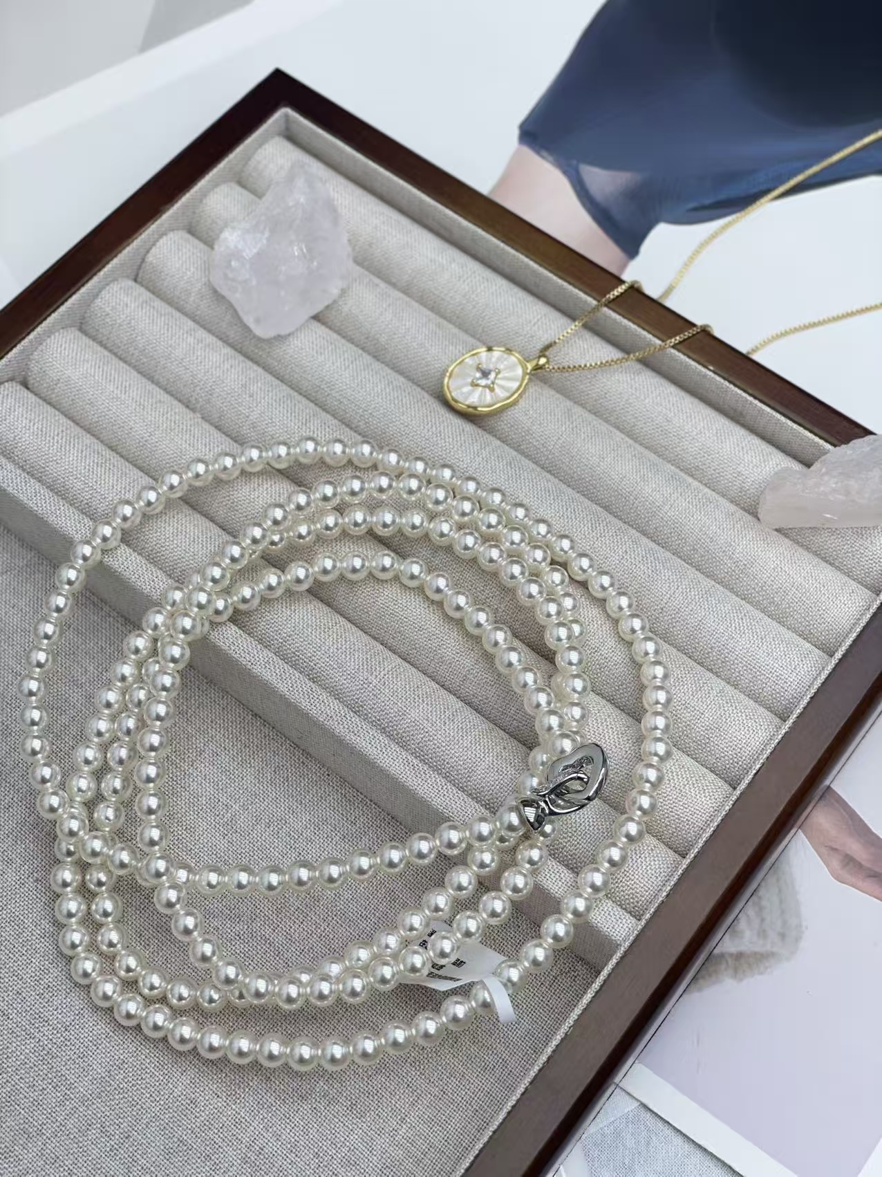 人工精选施华洛珍珠 × 厚镀金工艺,从日常通勤到穿搭优雅担当。一条解锁多种穿搭可能的珍珠魔法~