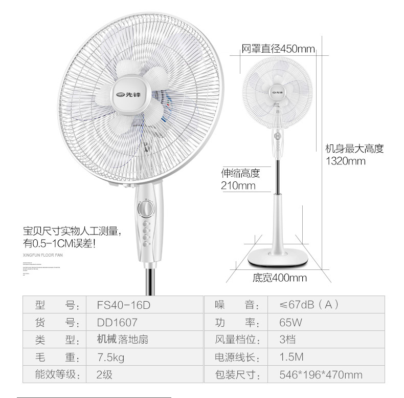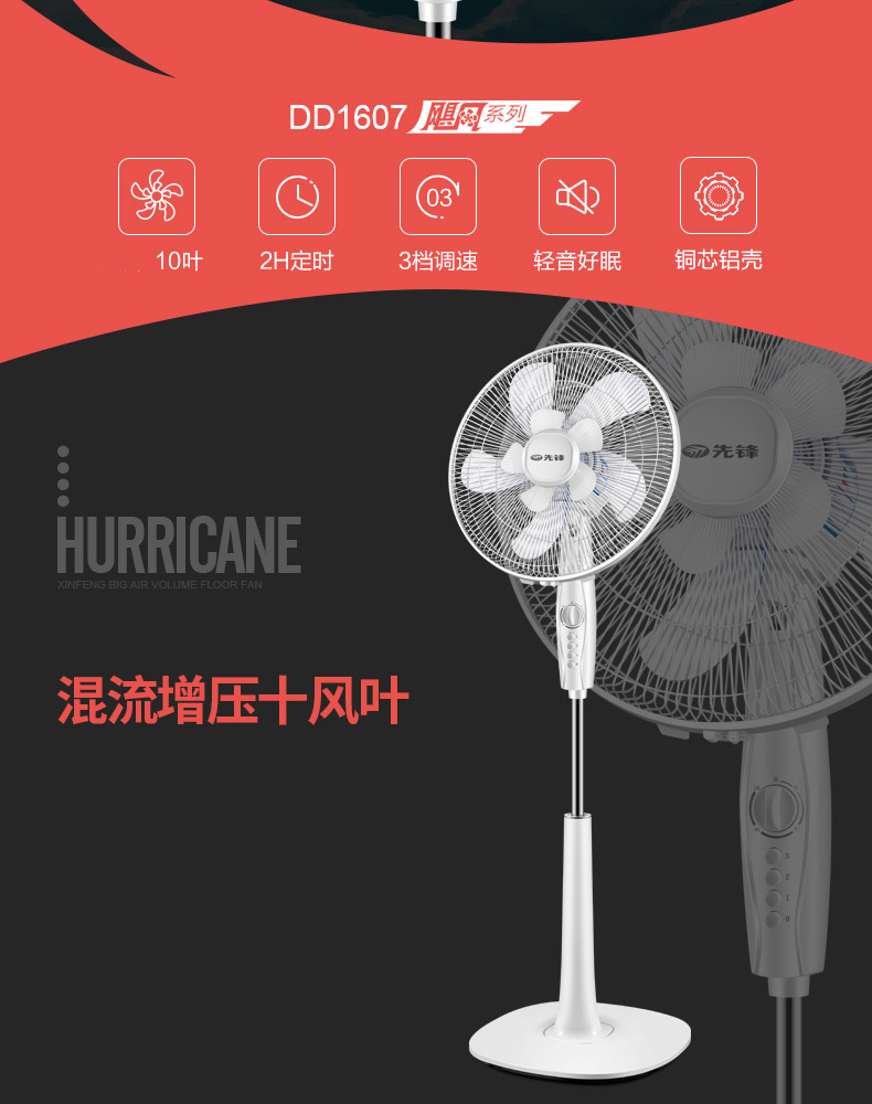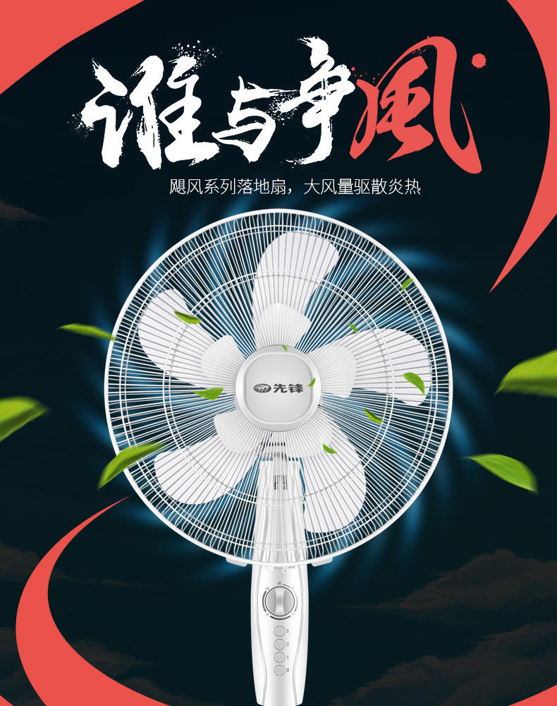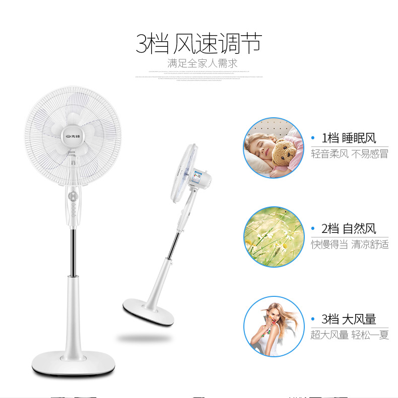 先锋电风扇FS40-16D家用定时落地扇升降10叶扇大风力电扇办公室