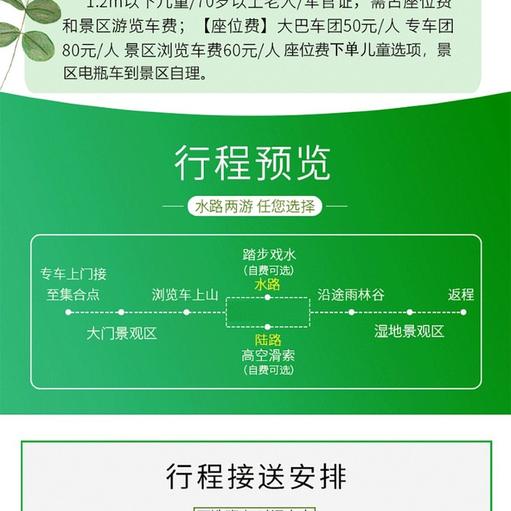 行程概要游玩约5小时30分钟、交通约3小时30分钟、用餐约1小时;午餐自理;支持接送