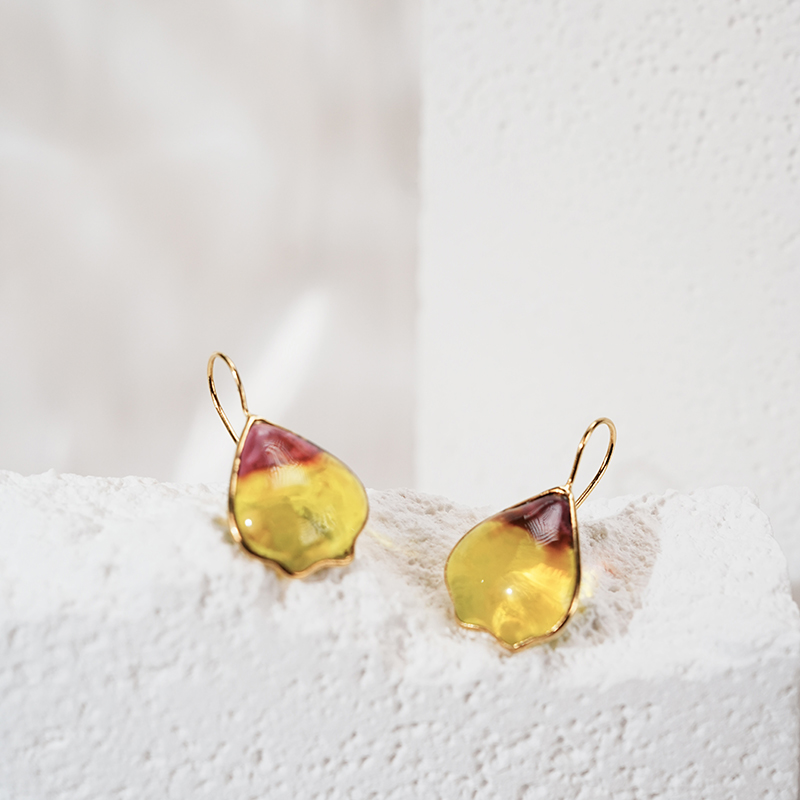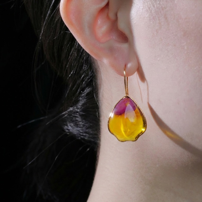 北京仓|Gripoix Paris-Pop Glamour-蜜色 花瓣 琉璃 耳环[法国设计师]