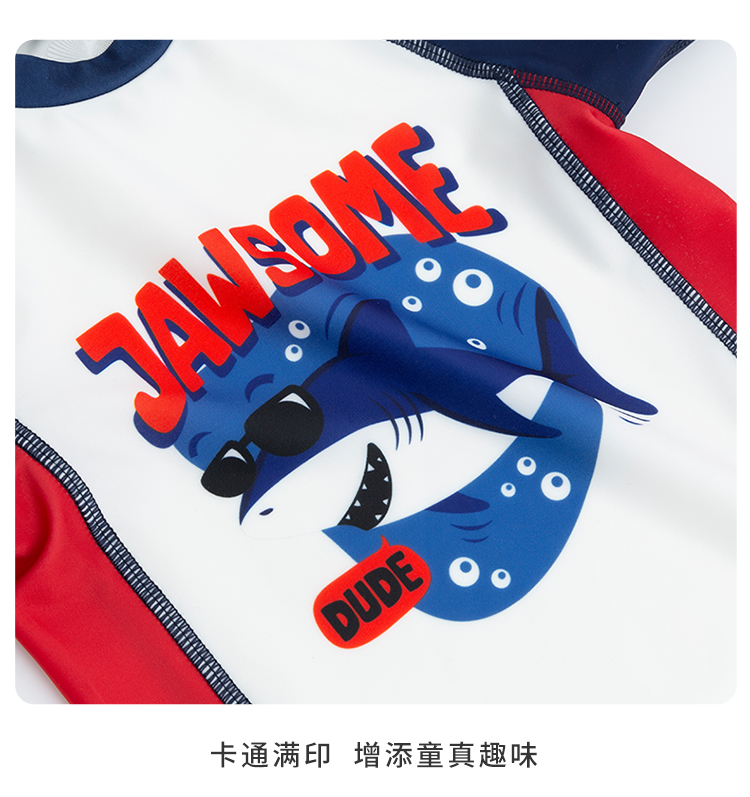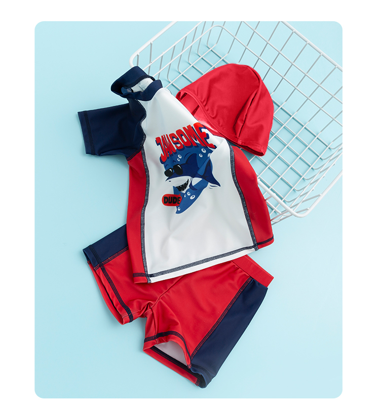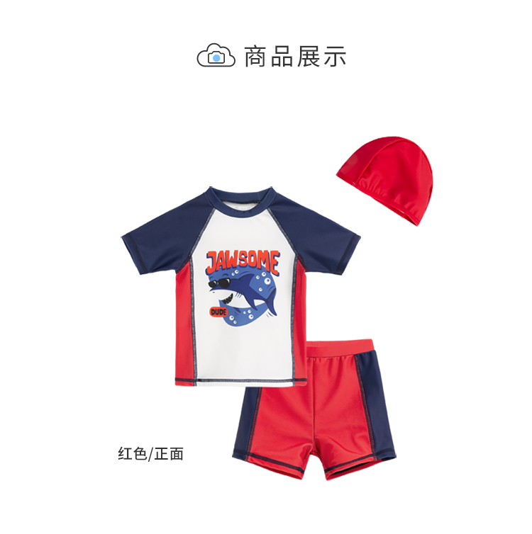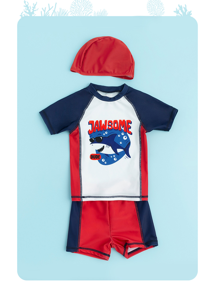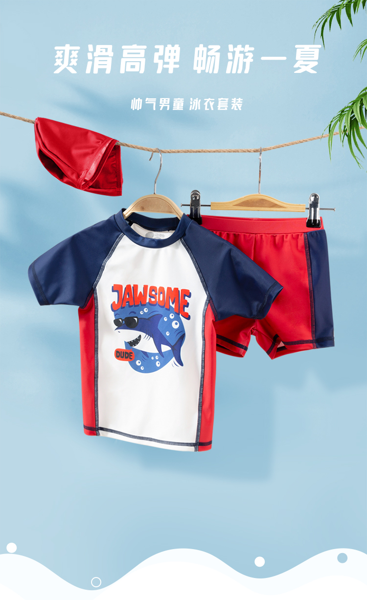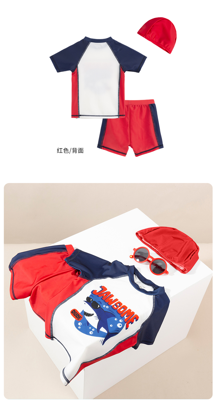 贝贝怡夏儿童泳衣套装男童速干泳衣短裤泳帽3件套222P2449