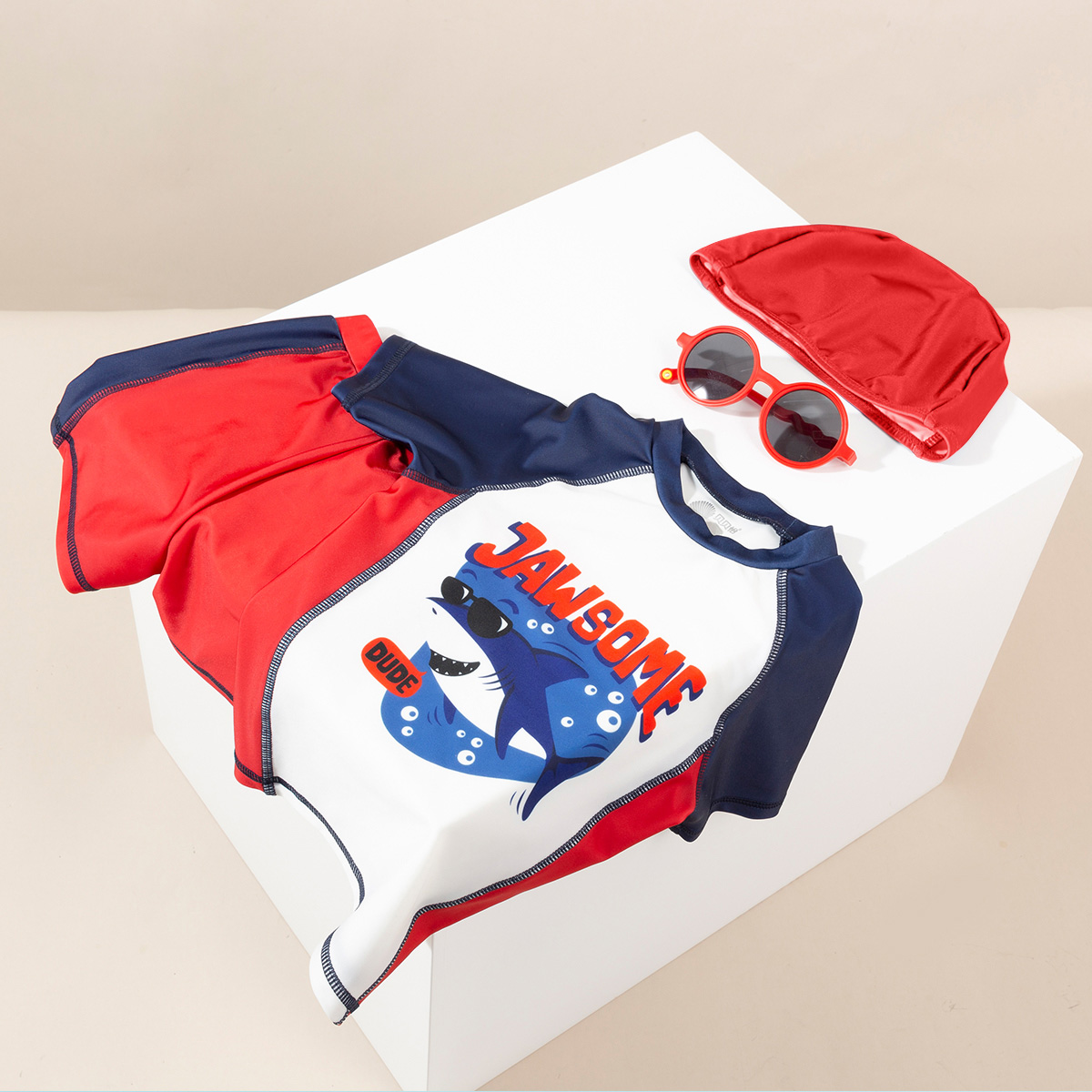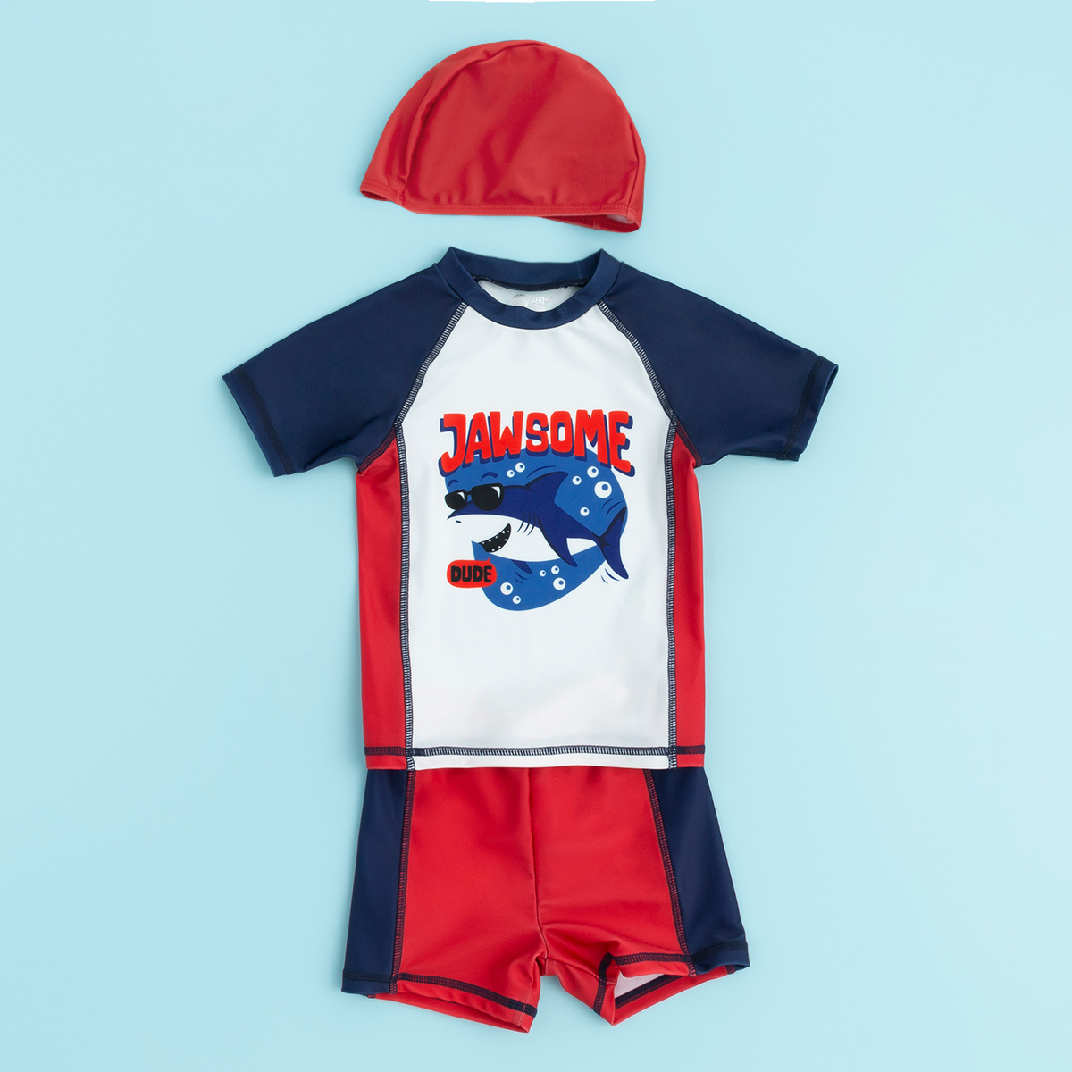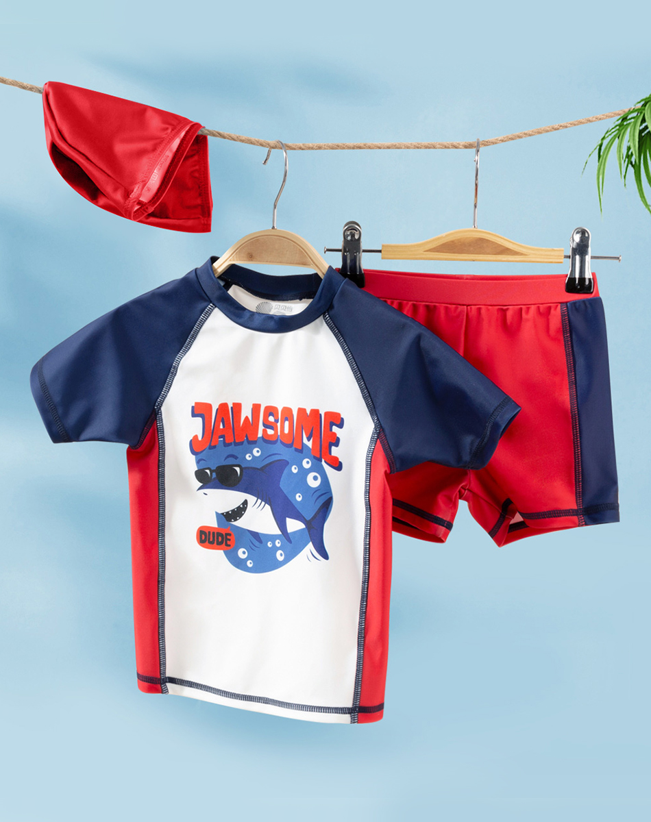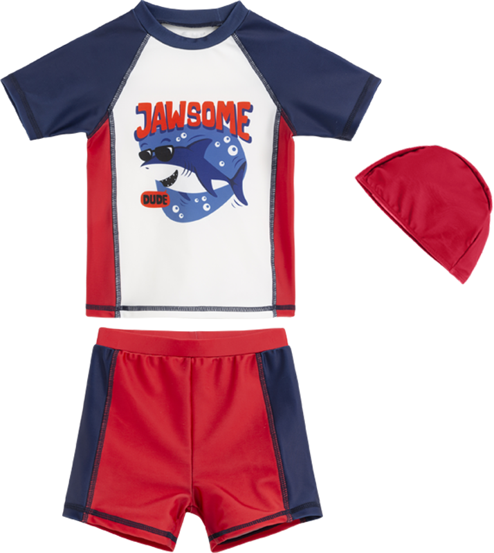 贝贝怡夏儿童泳衣套装男童速干泳衣短裤泳帽3件套222P2449