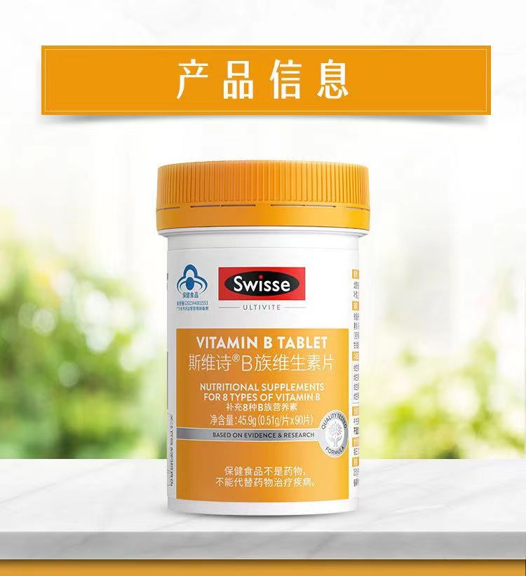 Swisse斯维诗B族维生素片90片补充8种B族维生素成人营养