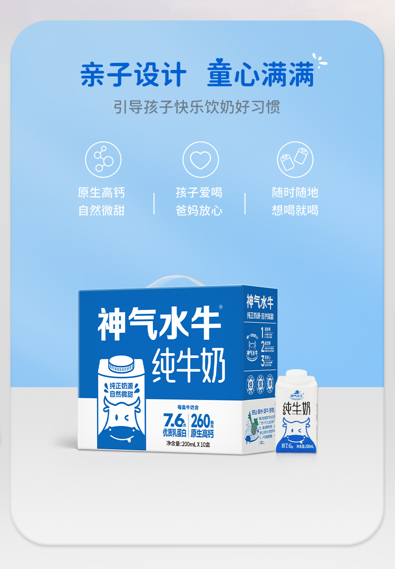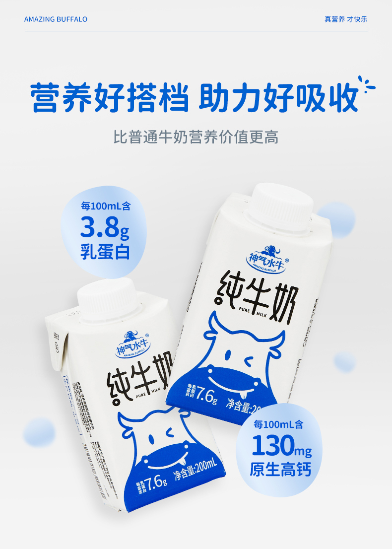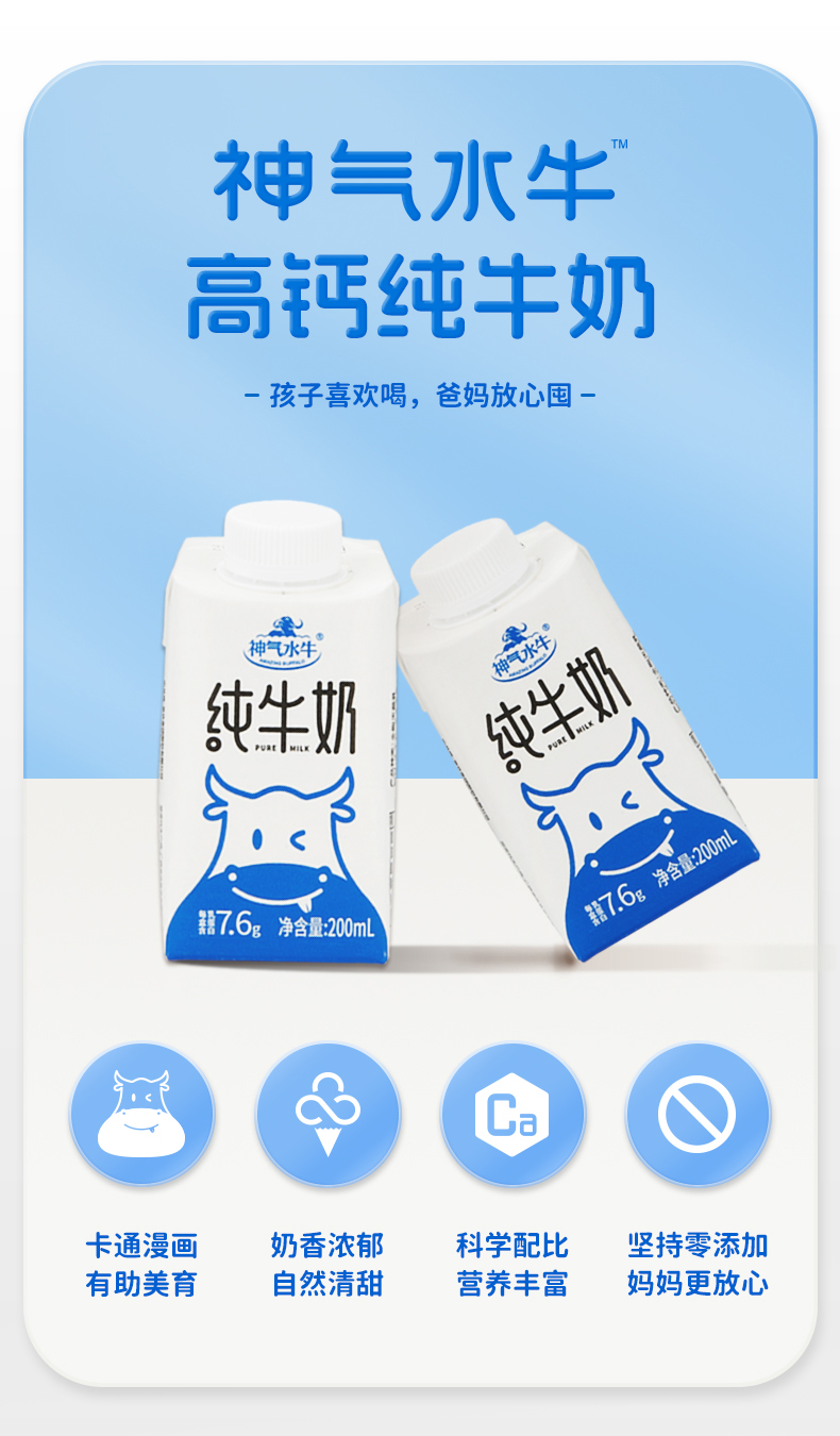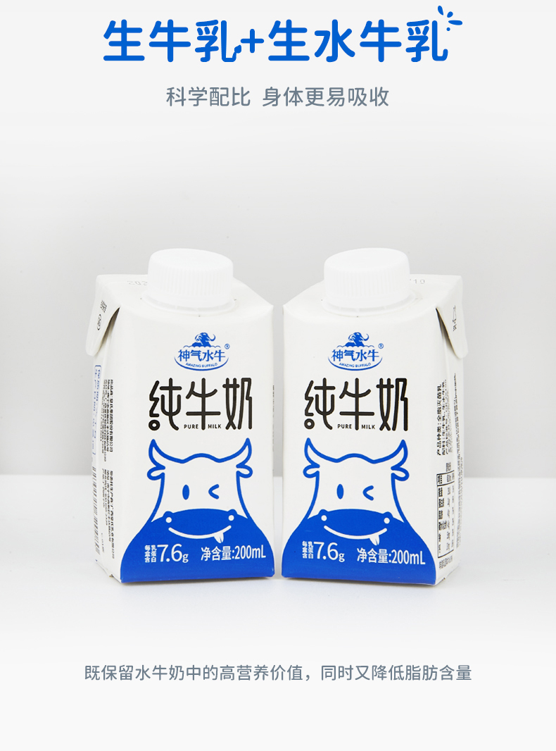 神气水牛 纯牛奶水牛奶旋盖装200ml*10盒*2箱