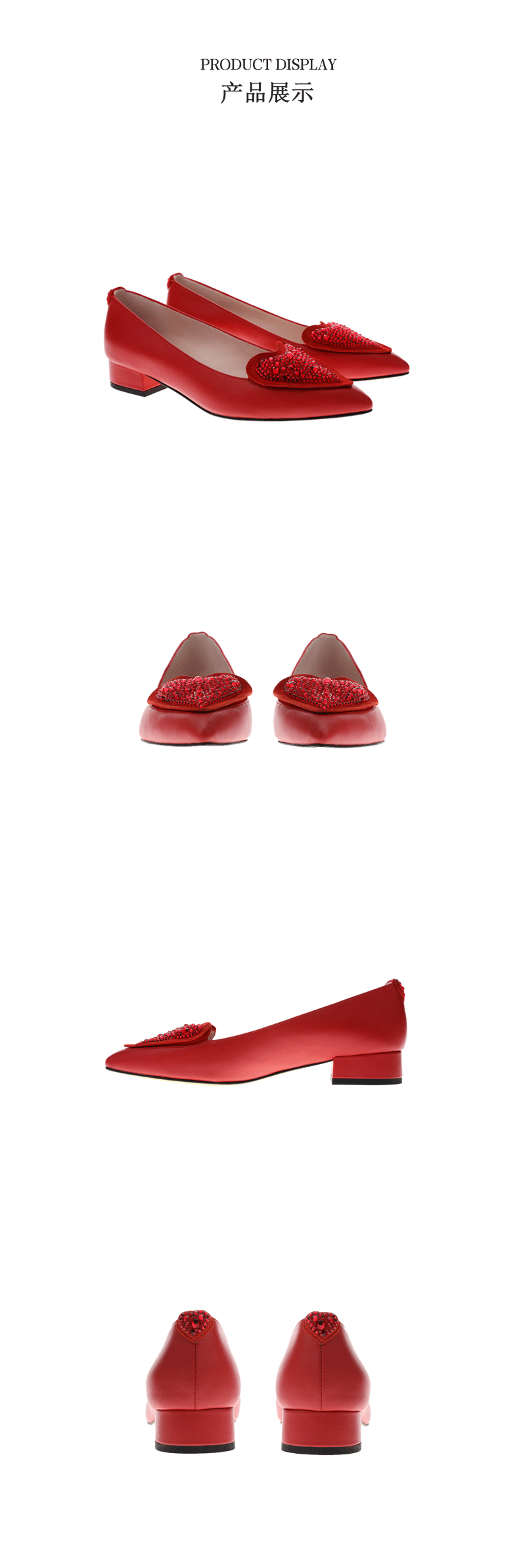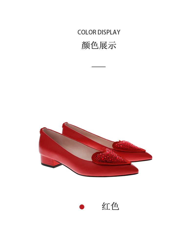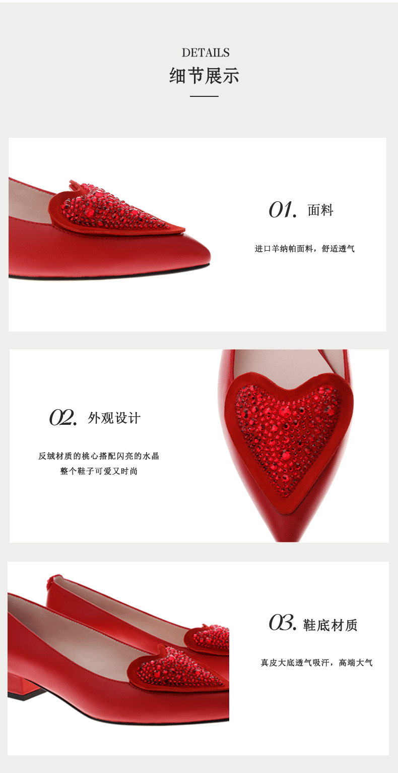 sheme真皮女鞋尖头桃心烫钻低跟单鞋婚鞋可爱时尚可定制