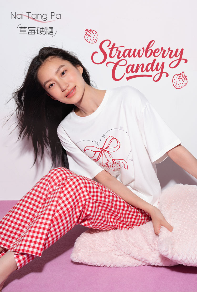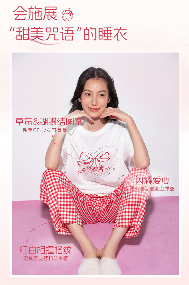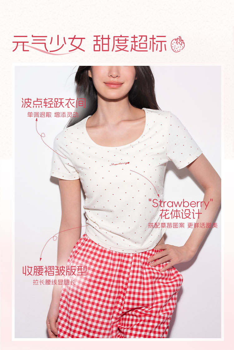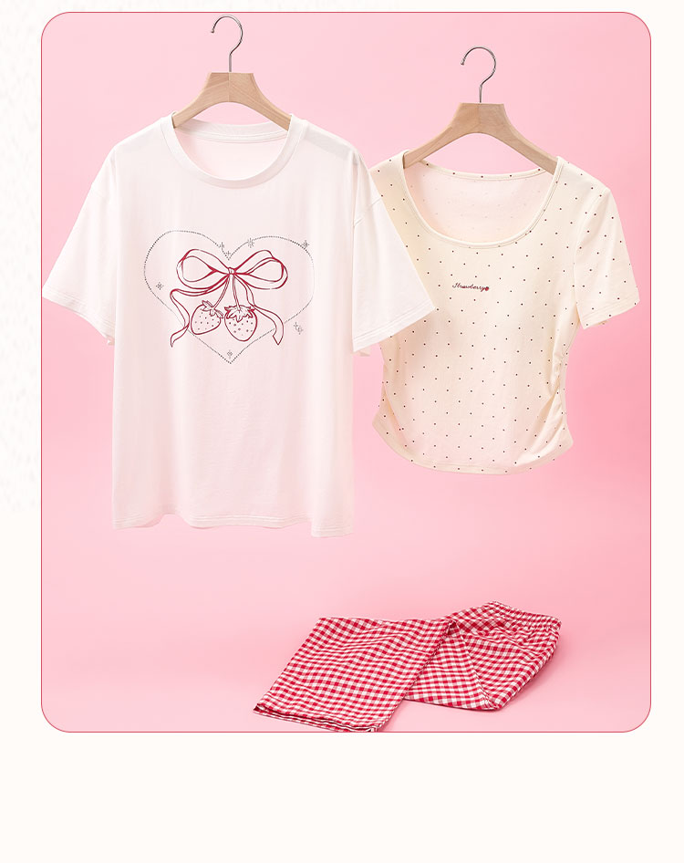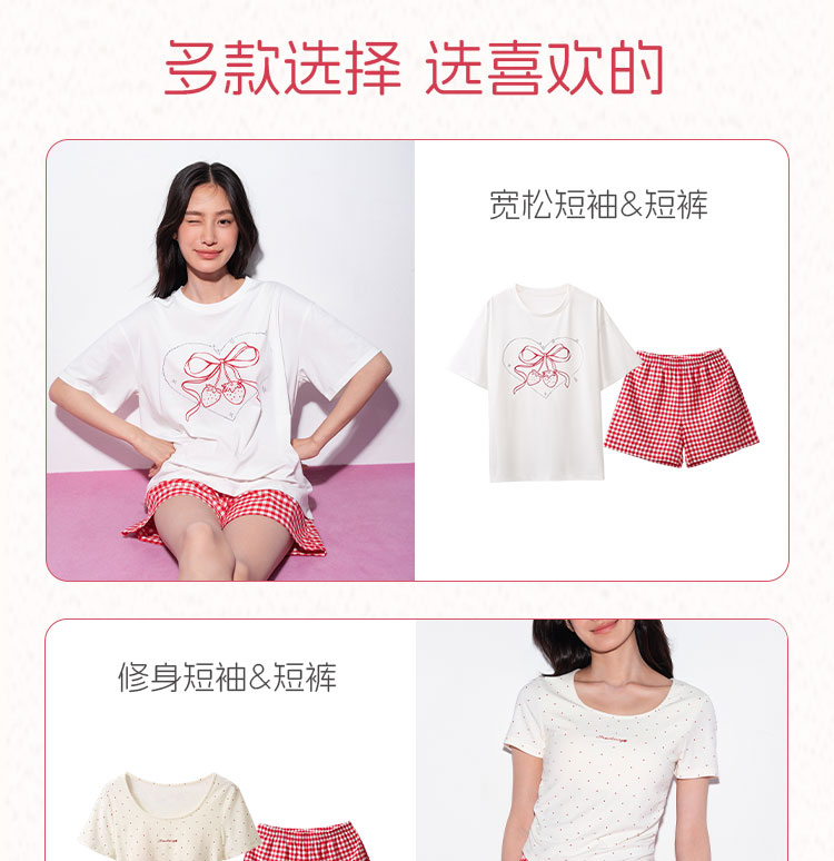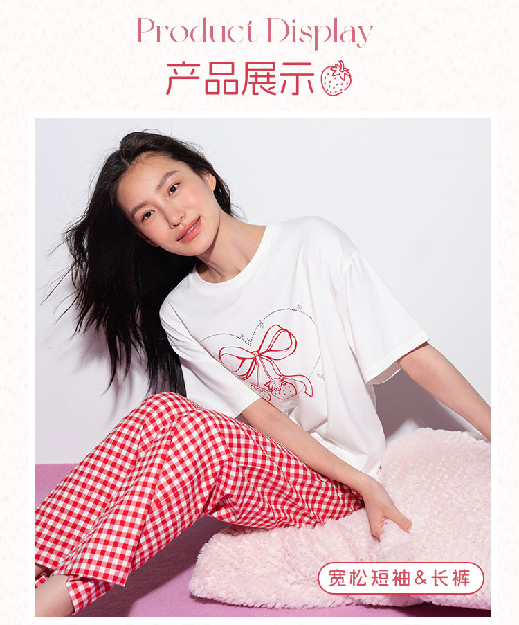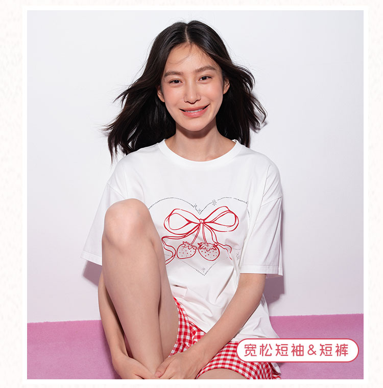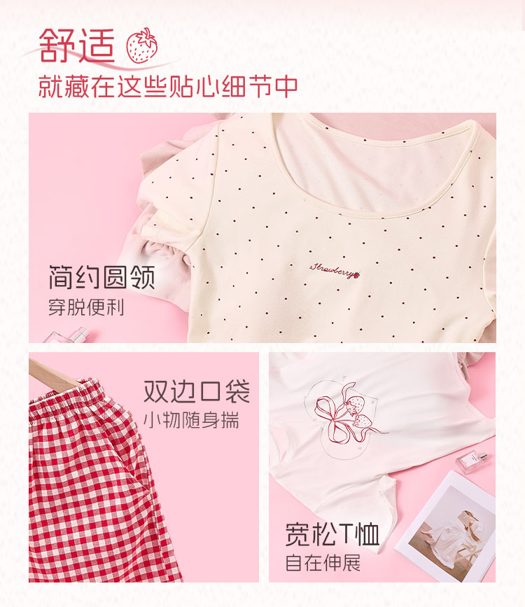 [草莓硬糖家居服]春夏睡衣甜美圆领显瘦可外穿休闲宽松套装