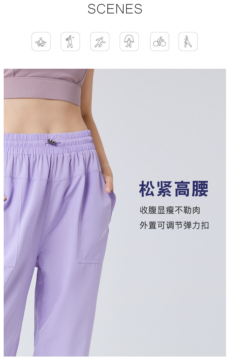 跃牌【明丽逸动】系列 新款速干运动裤女宽松高腰健身长裤梭织直筒收脚哈伦休闲卫裤AL8039
