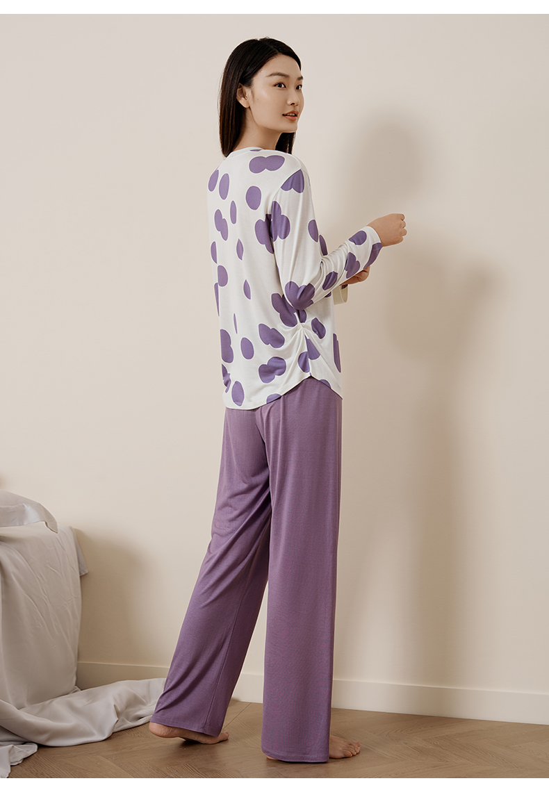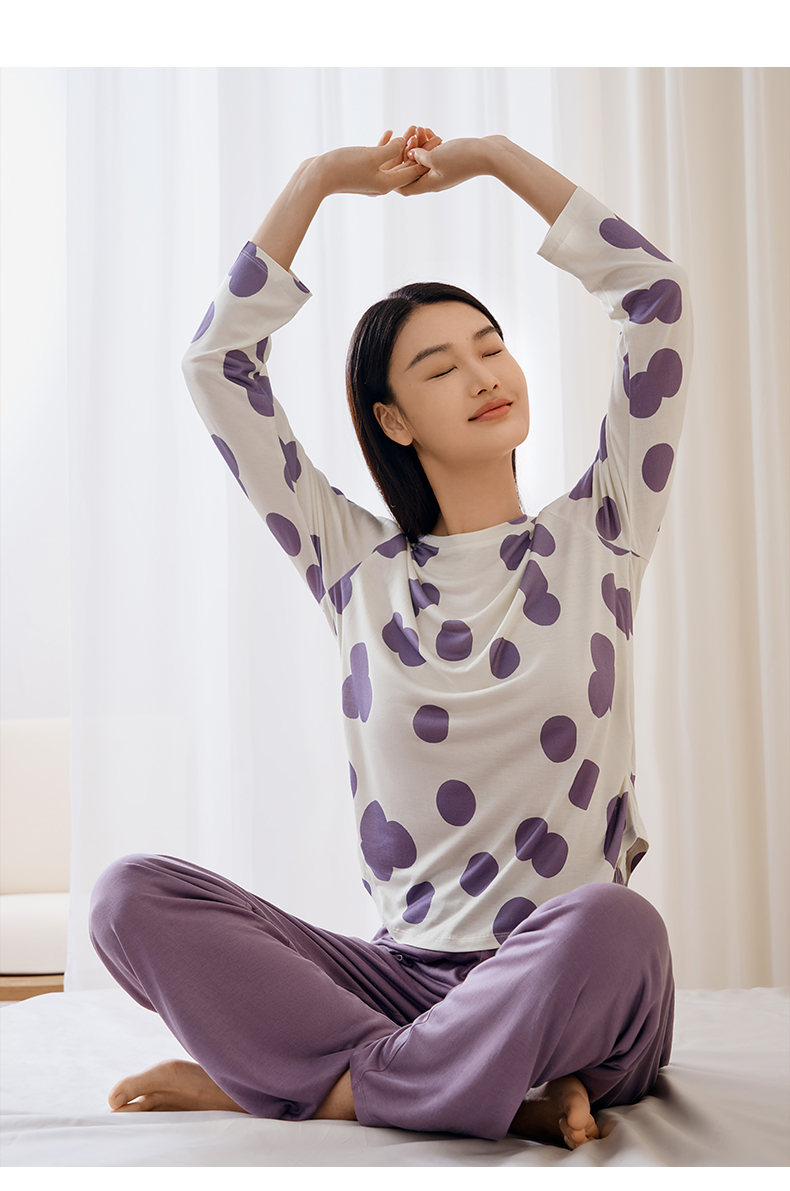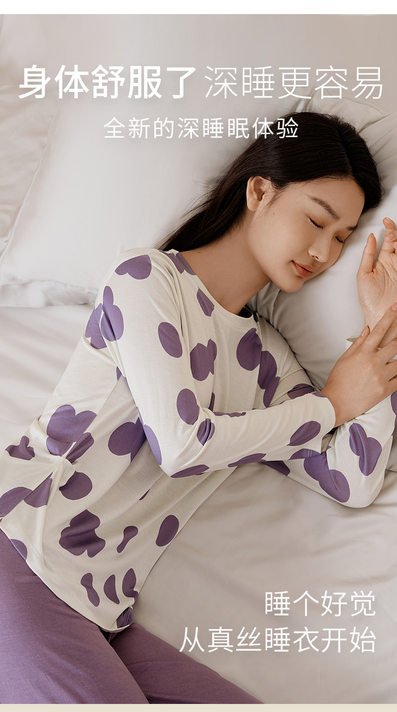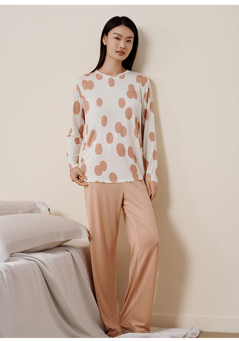 金三塔真丝睡衣女100%桑蚕丝圆点印花休闲外穿宽松家居服 YZFFC702+YZFFC902