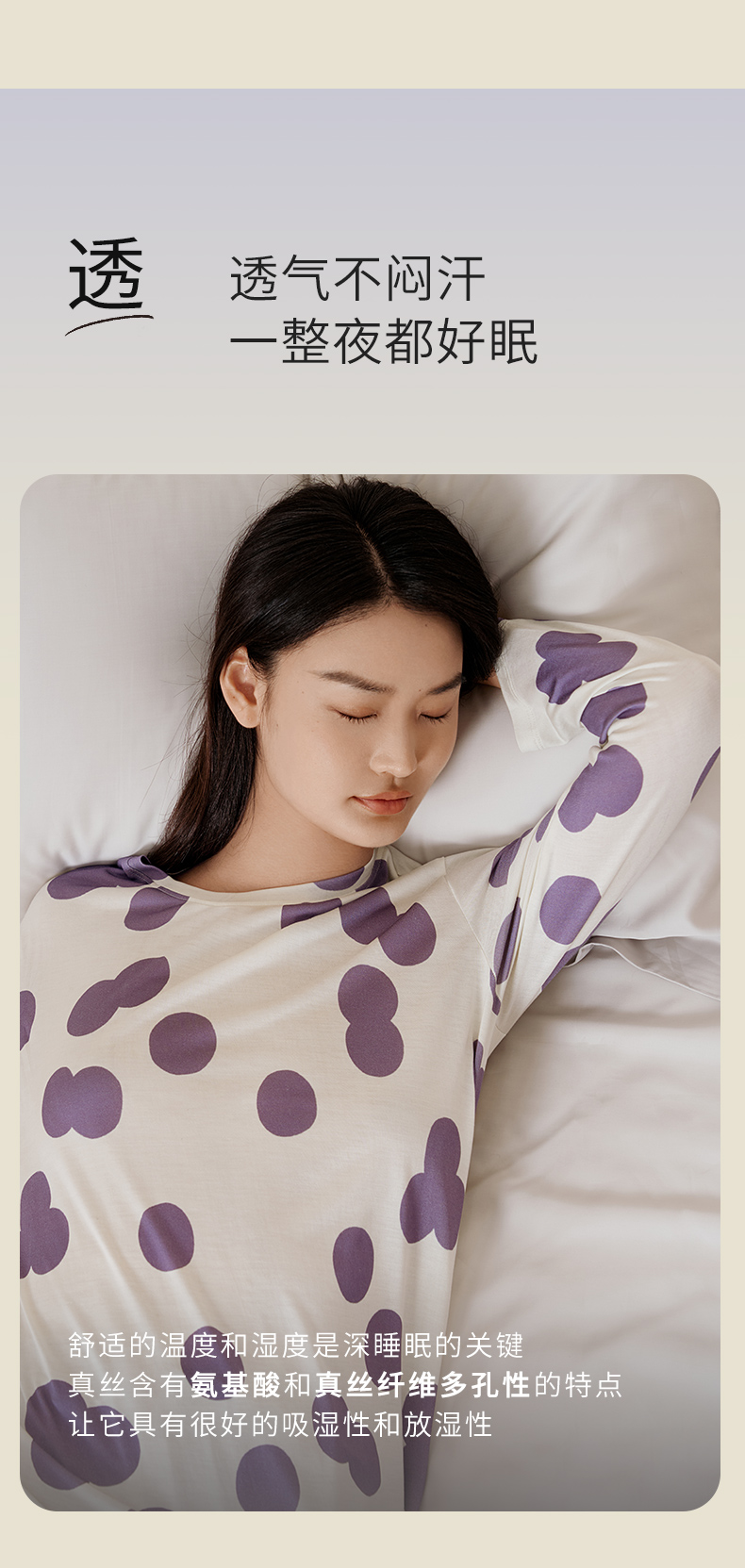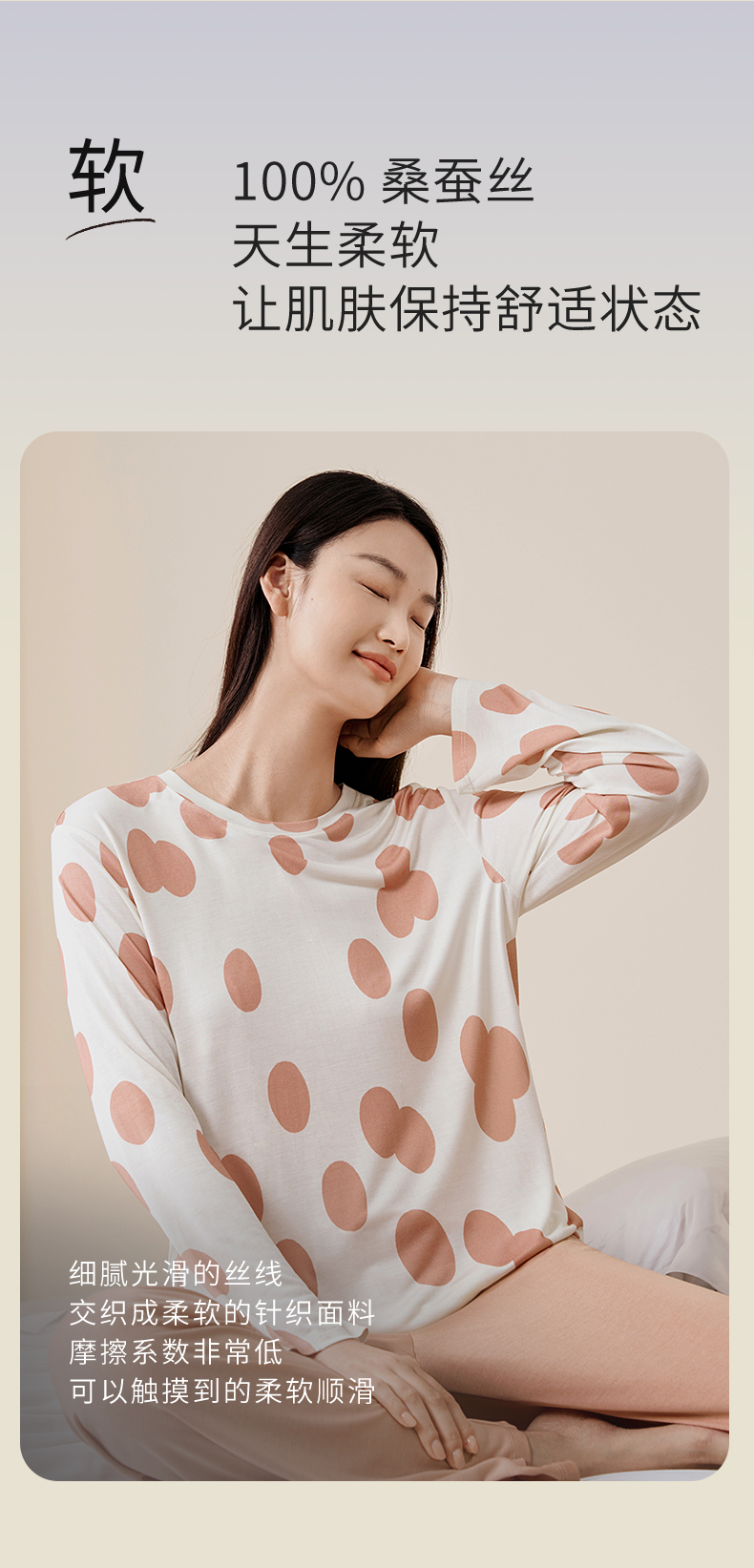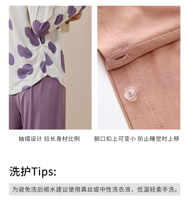 金三塔真丝睡衣女100%桑蚕丝圆点印花休闲外穿宽松家居服 YZFFC702+YZFFC902