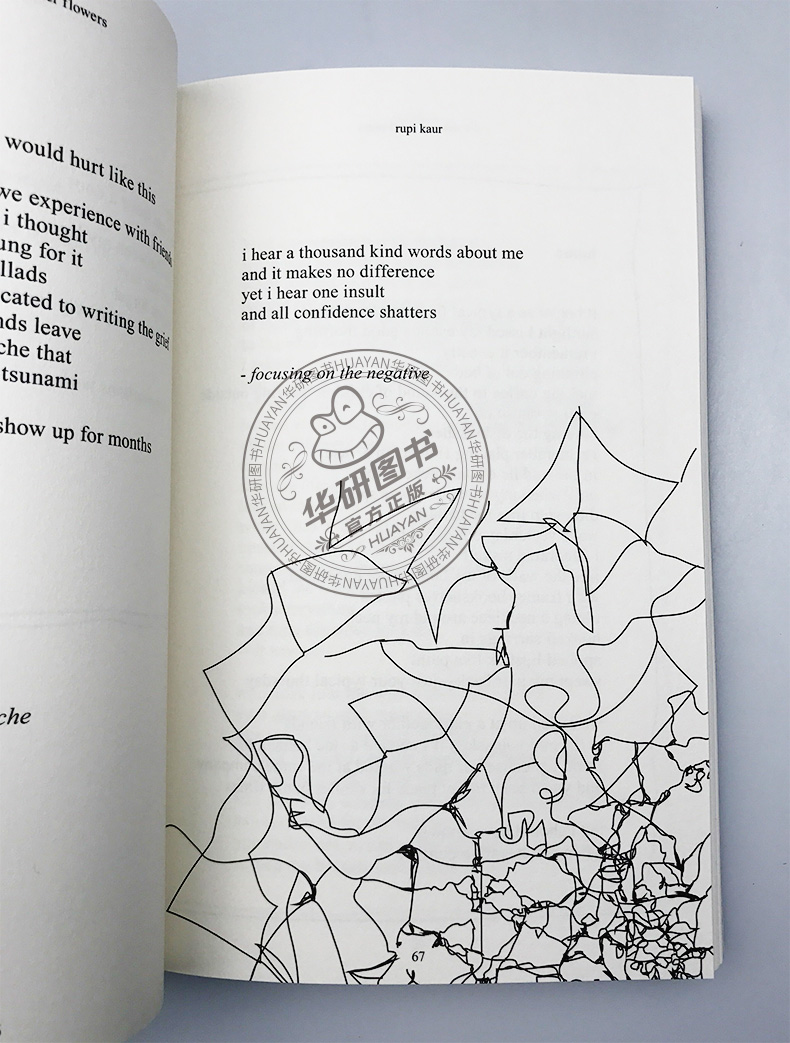 这本诗集是一段关于成长和治愈的美妙旅程,也是一段关于枯萎、掉落、扎根、生长和开花的旅程。全书分为5个章节,插图也是考尔亲手所画。
