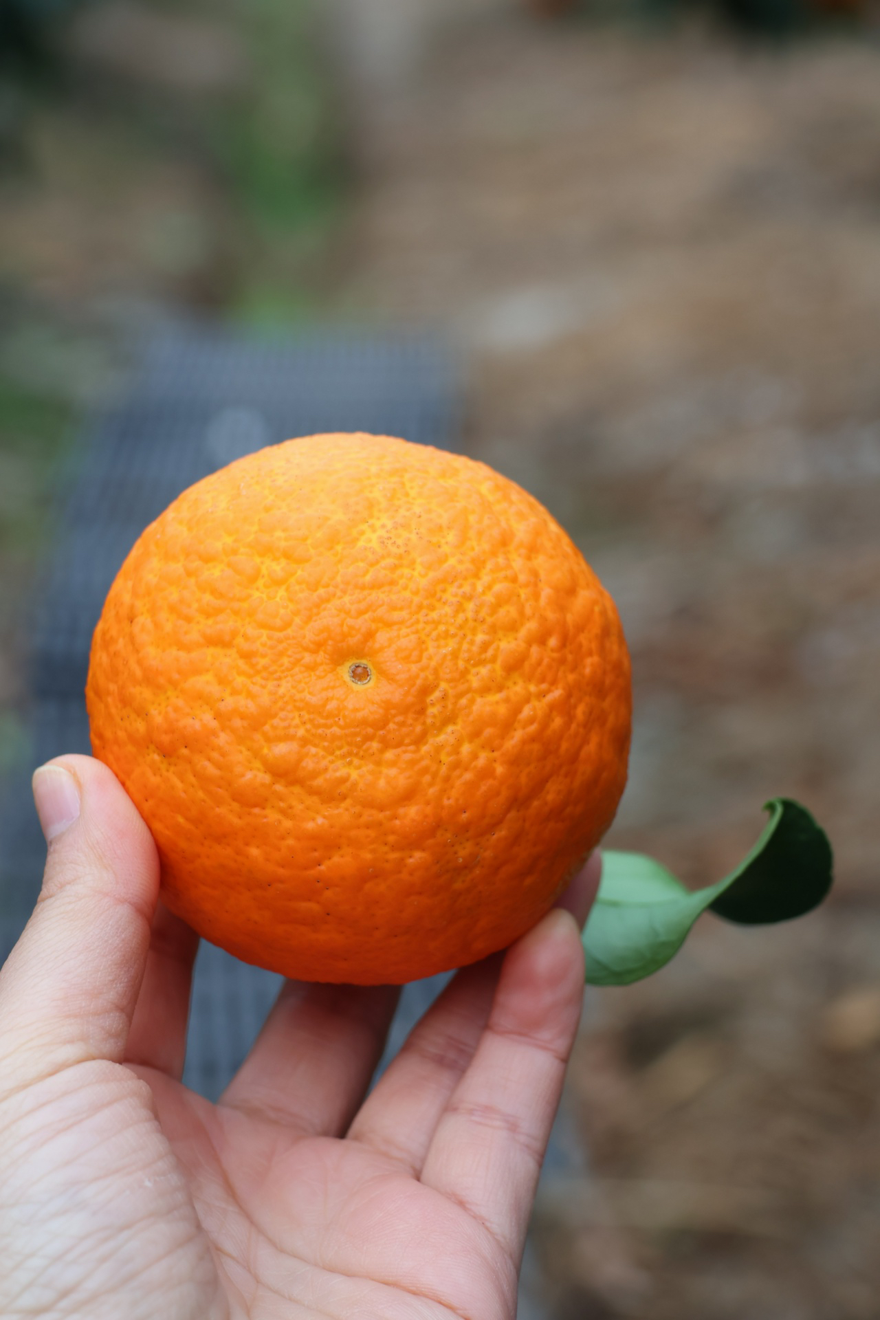 红美人即是爱媛28号,由日本爱媛县引进,成功在晓塘镇月楼村扎根。它是取糖度高的南香为母本,囊衣薄、肉质嫩的天草为父本,杂交而成,同时拥有橘、橙、柚的三种血统。也就是说,红美人同时拥有橙子的多汁、柚子的果肉饱满、还拥有橘子鲜艳的颜色,真·混血公主。