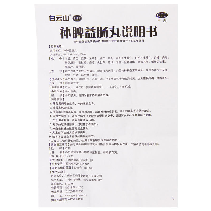 白云山 陈李济 补脾益肠丸130g/盒 益气脾虚气滞腹胀疼痛肠鸣泄泻