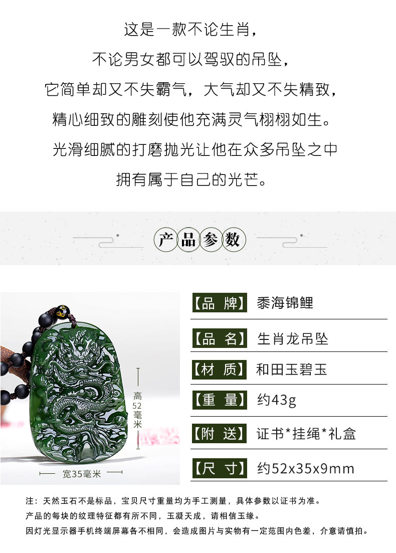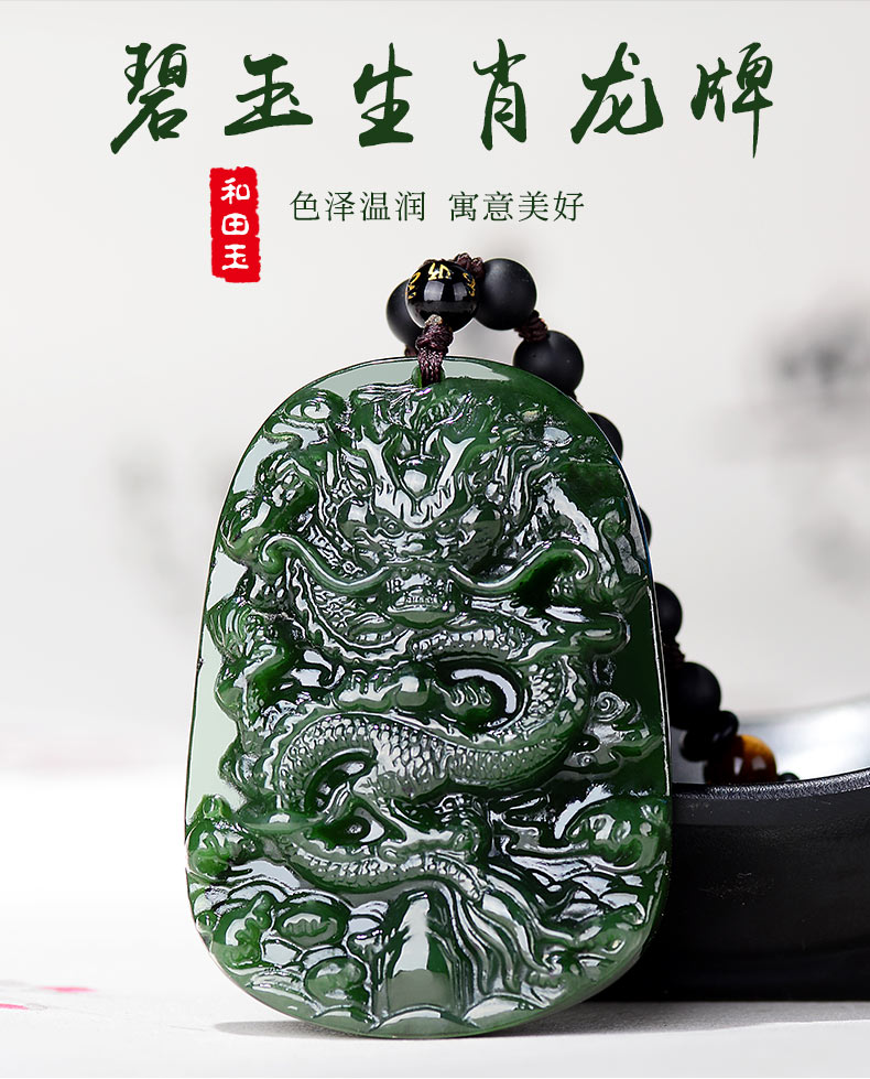 碧玉生肖龙吊坠男款霸气龙牌女玉坠玉牌男士玉佩玉挂件