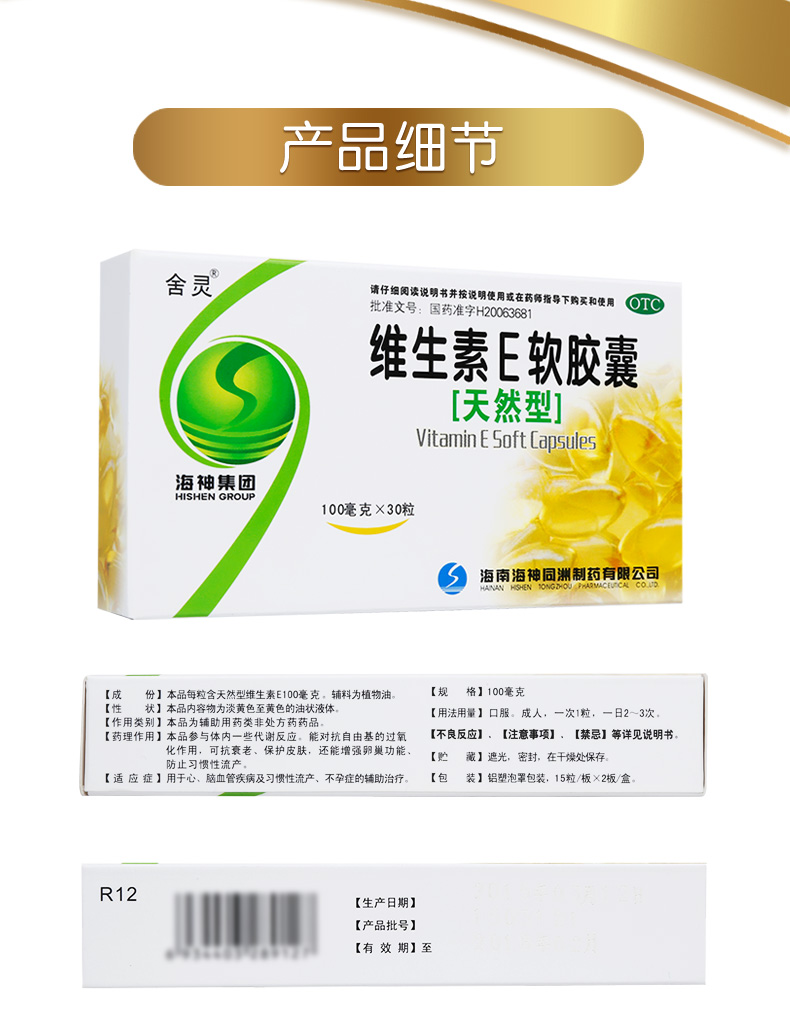 舍灵天然型维生素E软胶囊官方旗舰店正品脸部外用护肤盒装veotc