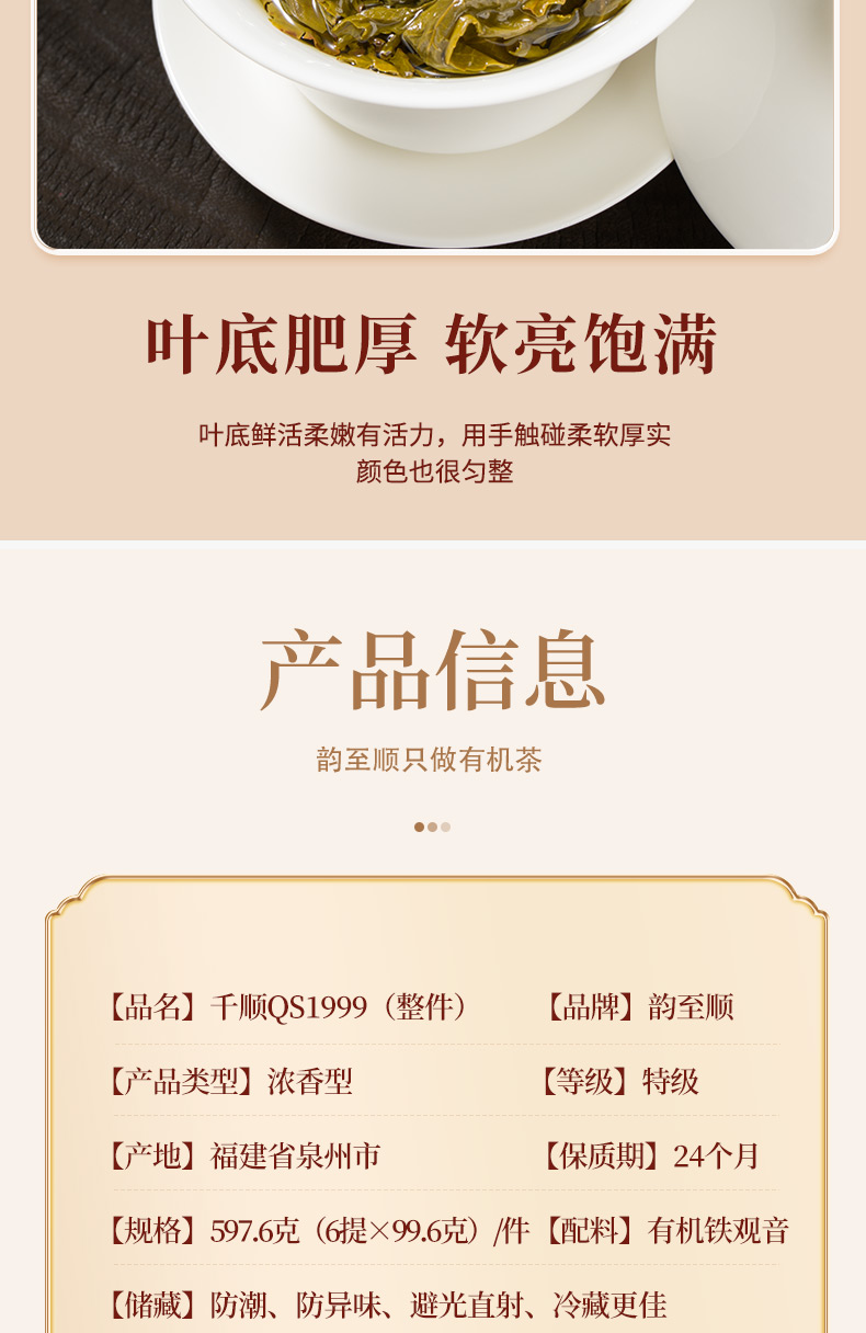 【千顺 QS1999整件】批发 韵至顺 有机乌龙茶 有机铁观音 千顺 597.6克/件( 99.6克/盒*6盒)送手提袋6个