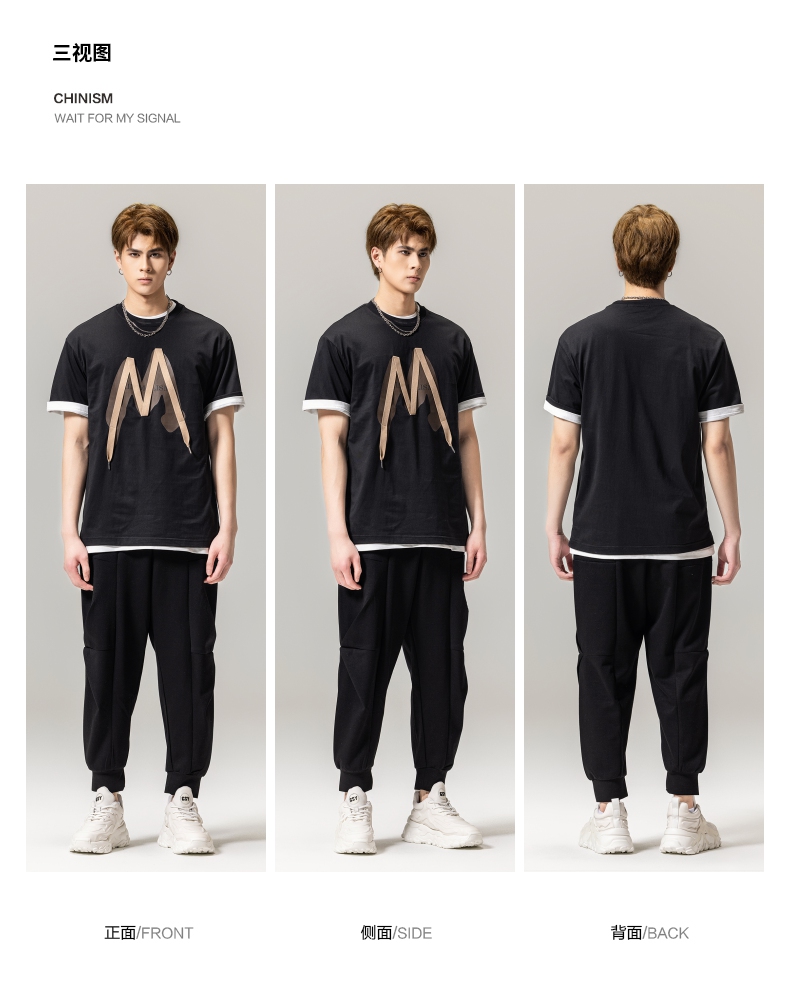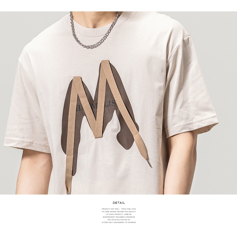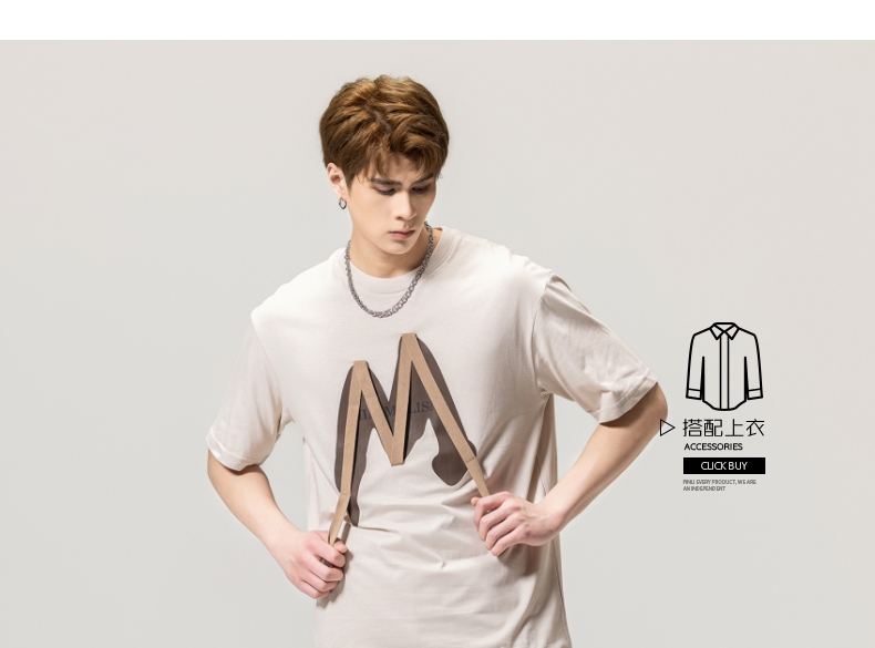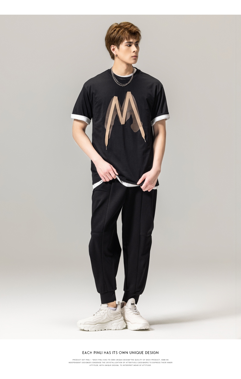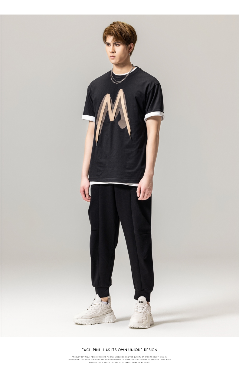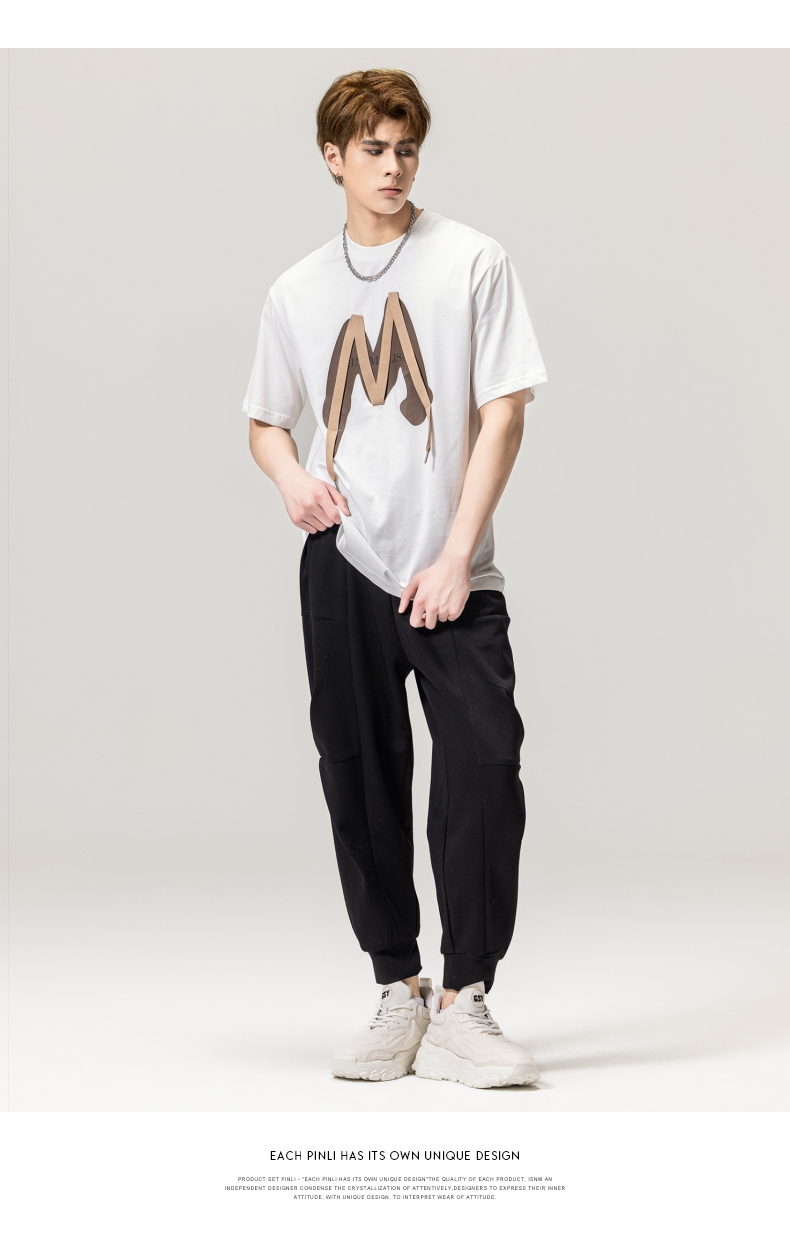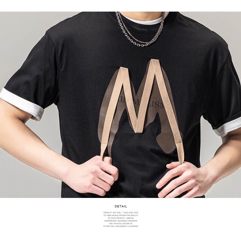 PINLI品立春季新款贴布印花T恤男士圆领短袖体恤BG231111042