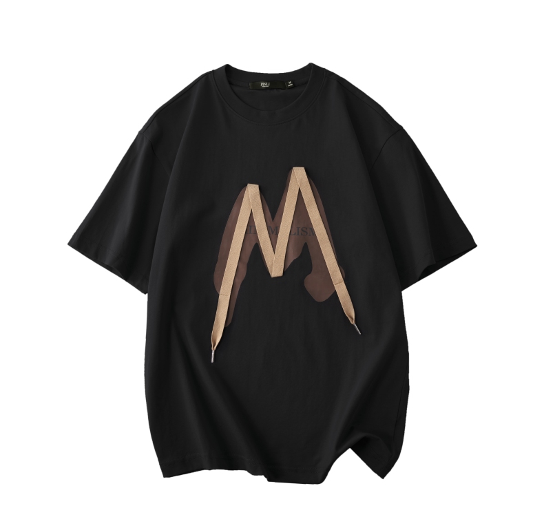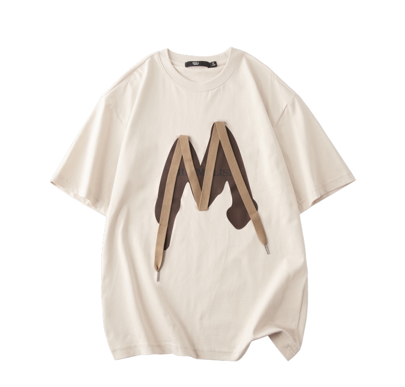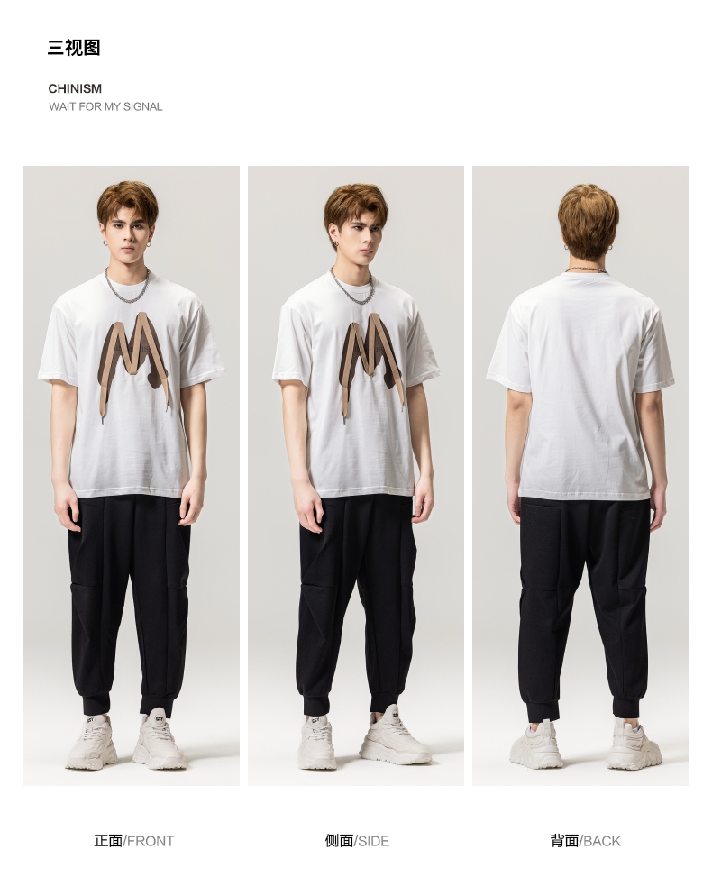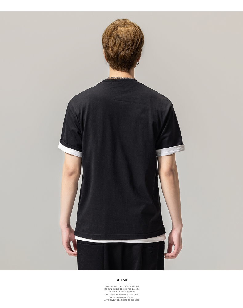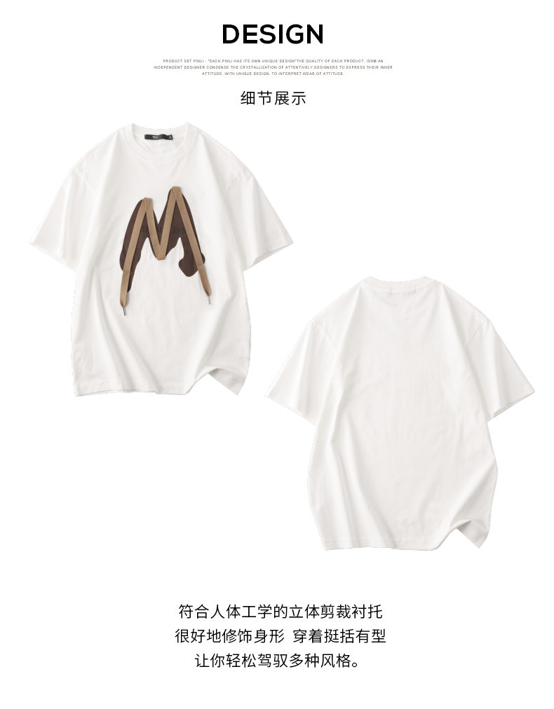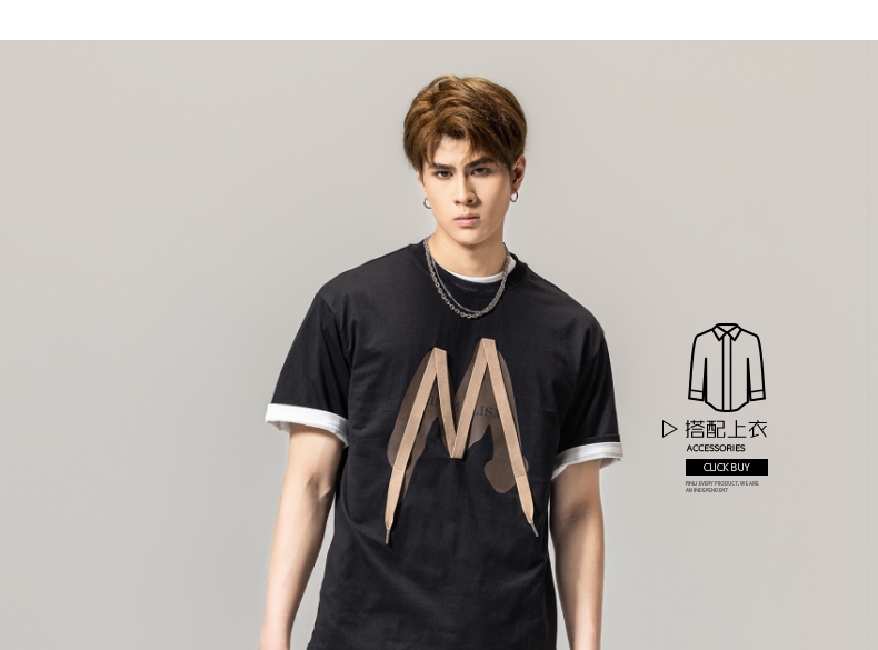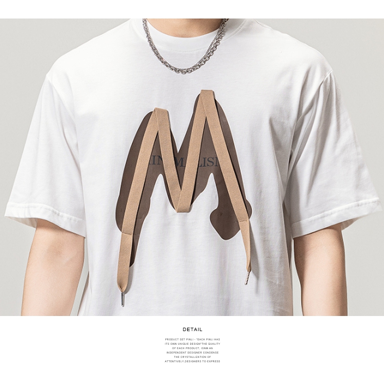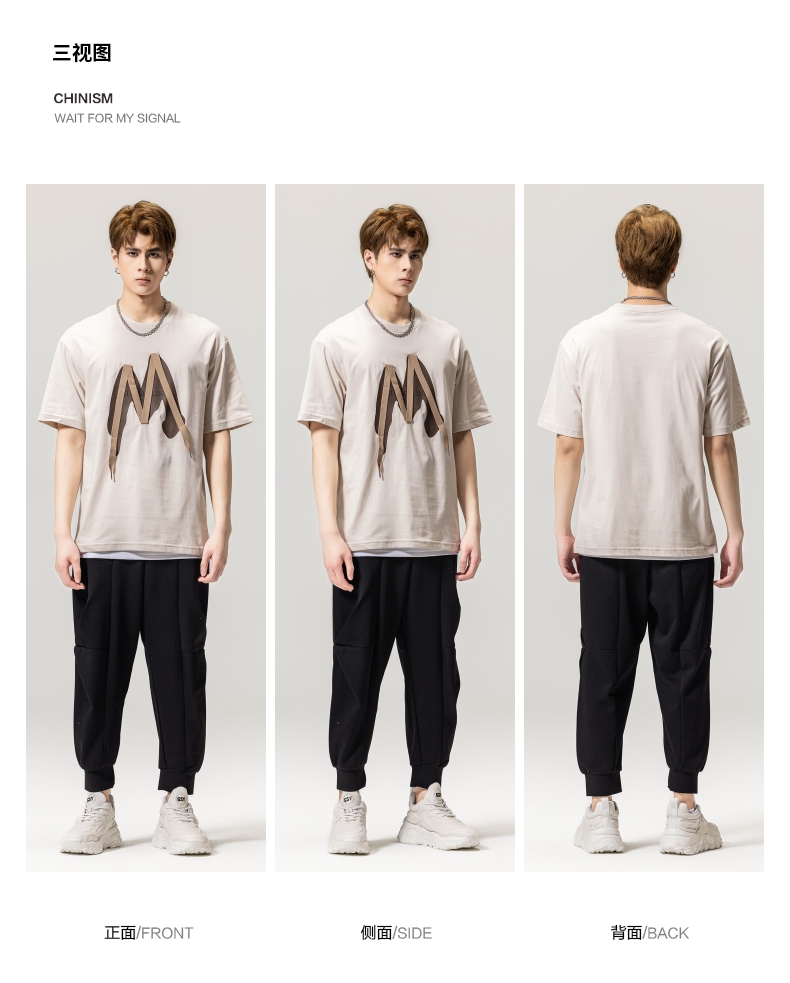 PINLI品立春季新款贴布印花T恤男士圆领短袖体恤BG231111042