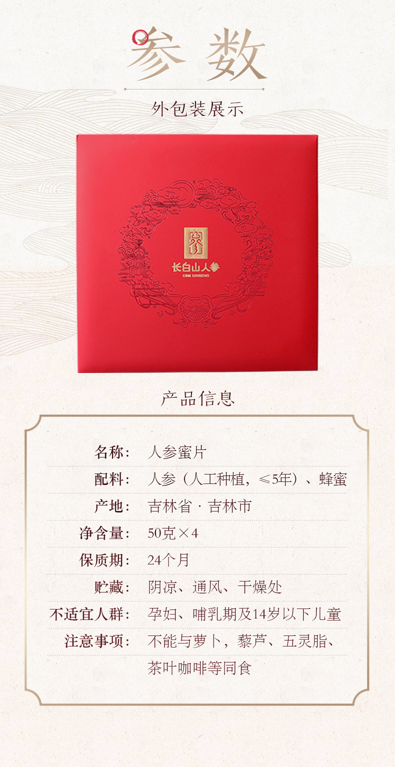 【长白山人参】正品鲜参蜜片蜜饯50g/盒共200g礼盒装【分销渠道】
