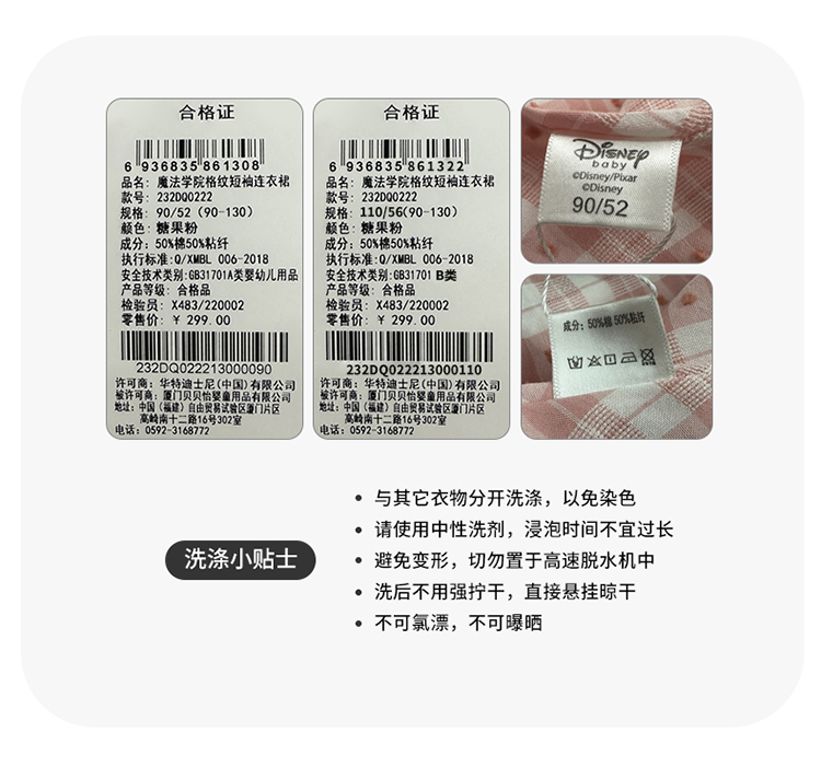【商城同款】迪士尼米妮新款春夏新品甜美风短袖连衣裙232DQ0222