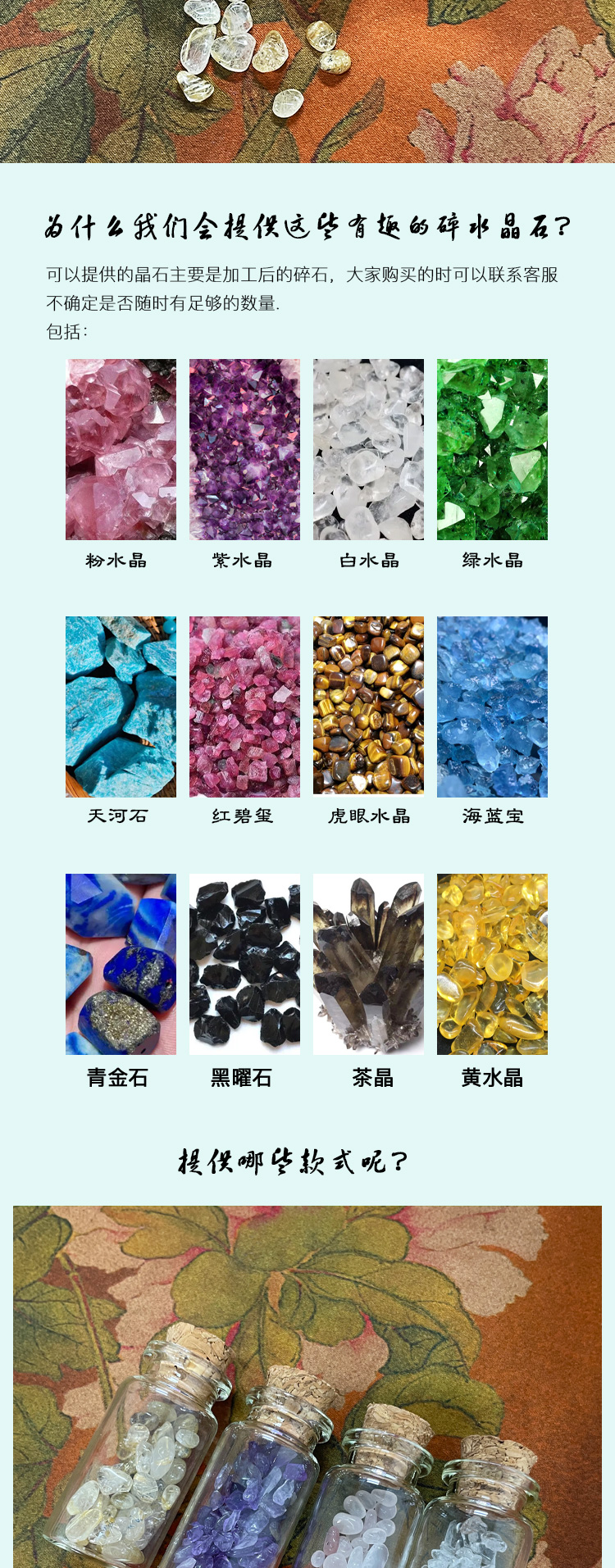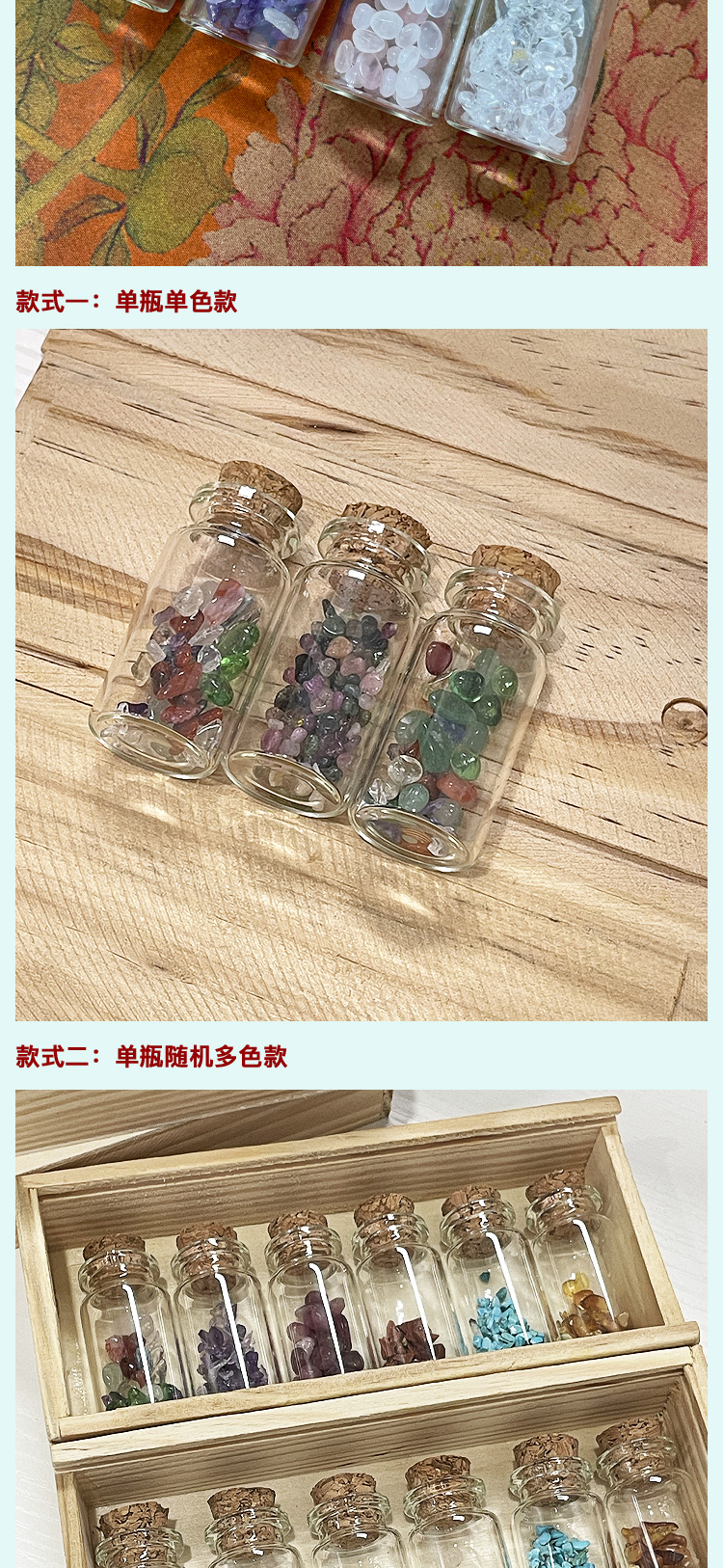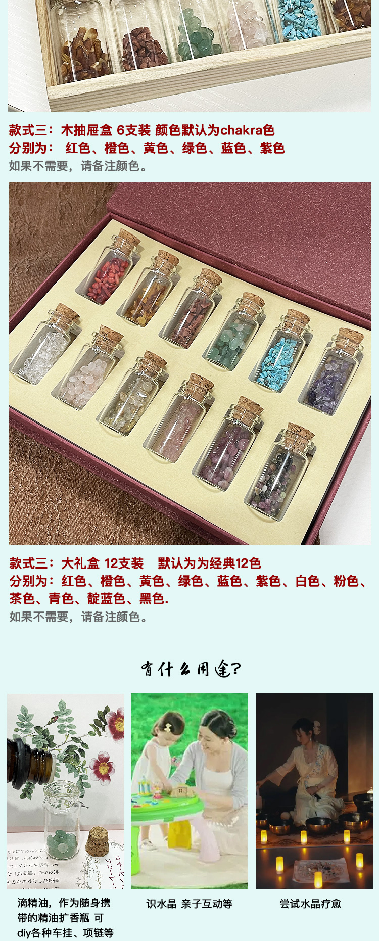 平衡小柅 水晶碎石 多色水晶 精油多用闻香玻璃瓶 扩香精油 芳疗专用 粉水晶/紫水晶/天河石/海蓝宝/礼盒 不含精油 需自己添加