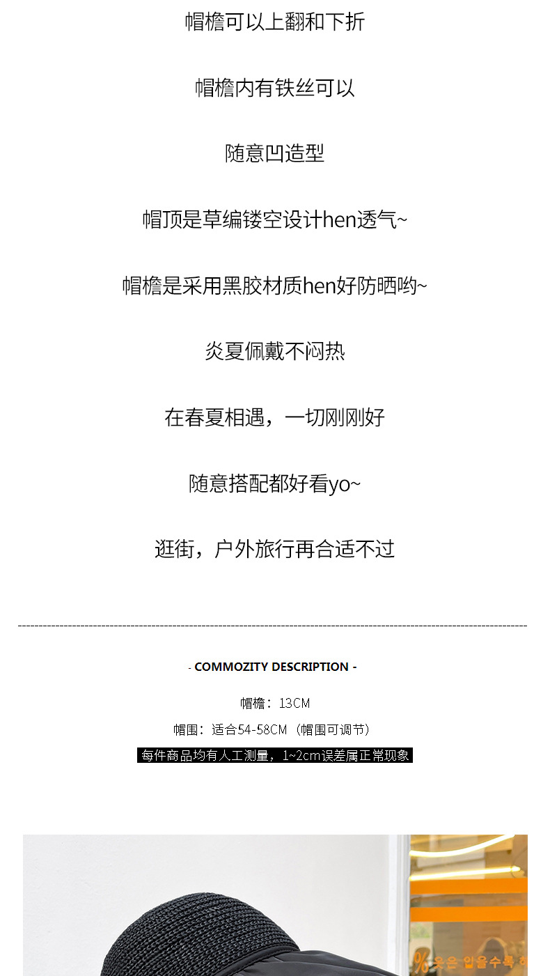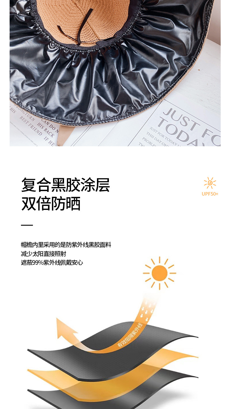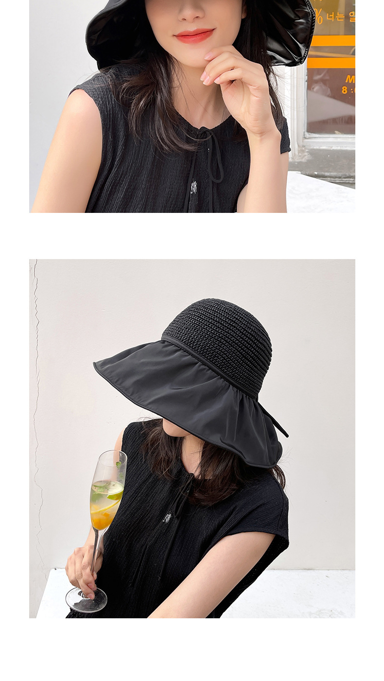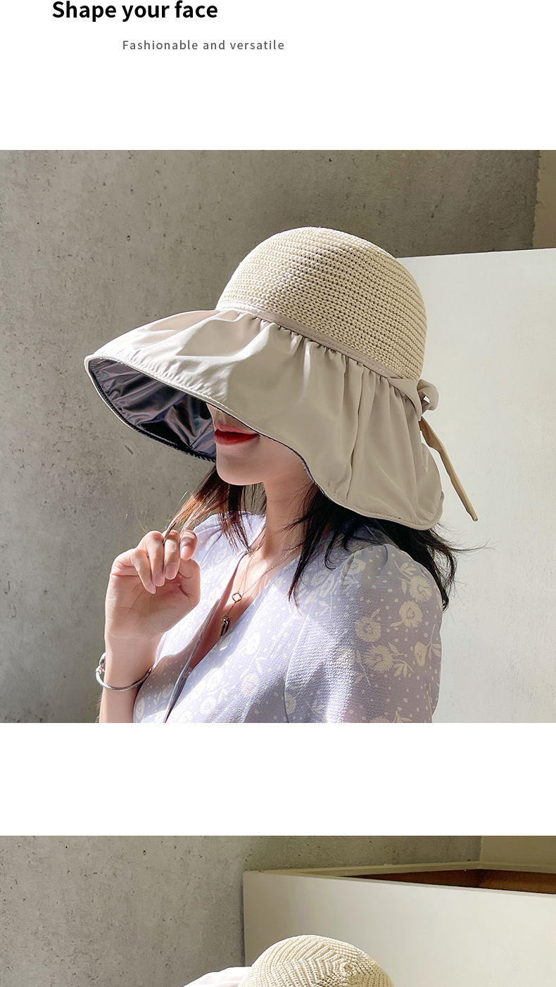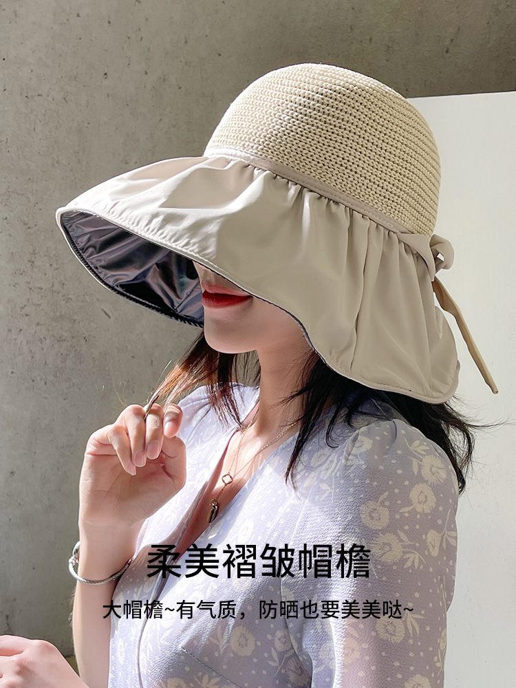 【百搭利器!双倍防晒显脸小】黑胶蝴蝶结遮阳帽女夏季镂空草帽紫外线大檐遮脸防晒太阳渔夫 帽子