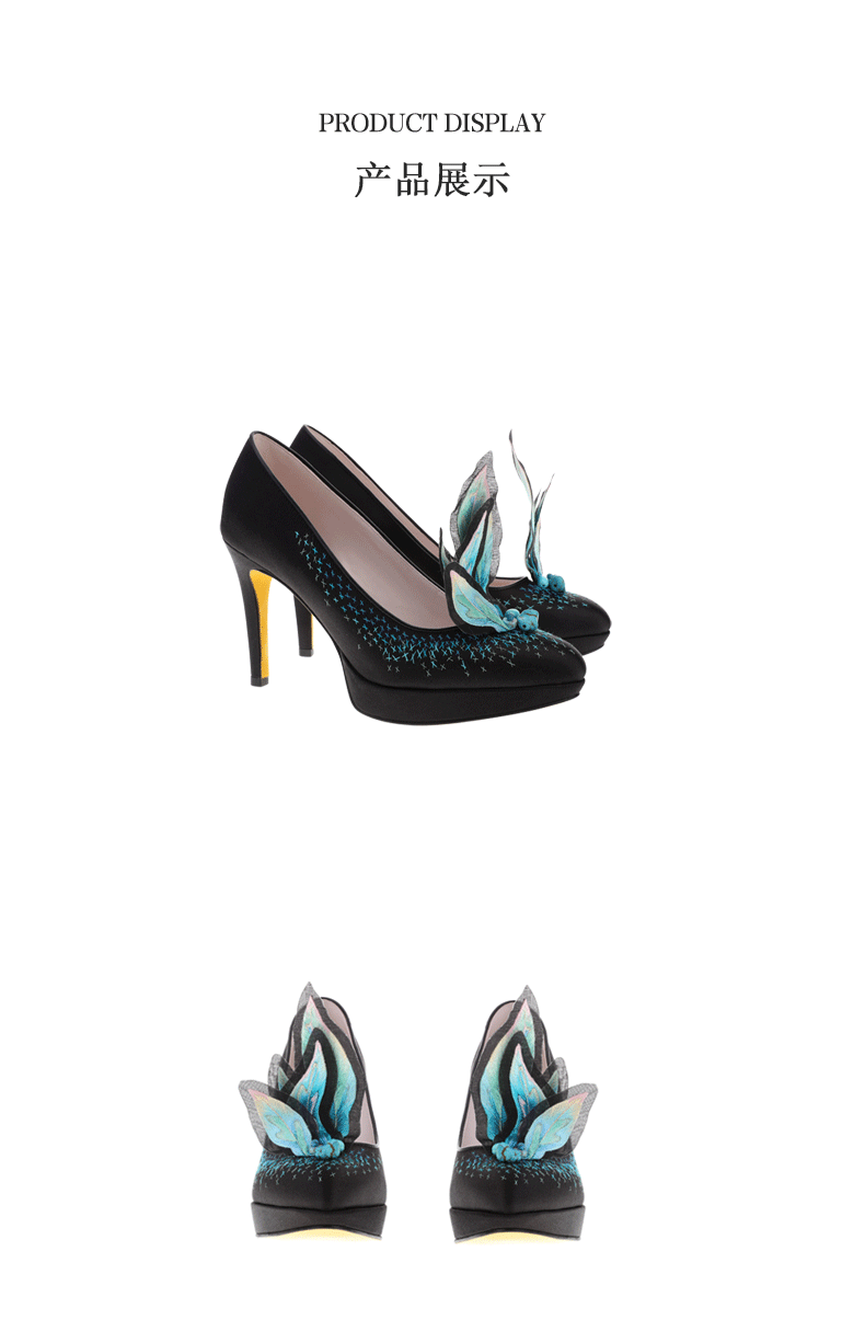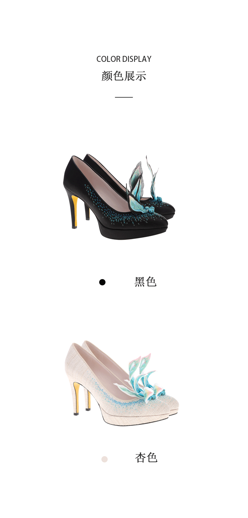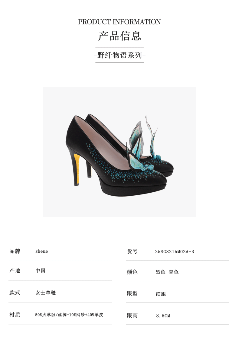 sheme野纤物语系列环保火草绒刺绣点缀女士高跟鞋优雅时尚可定制